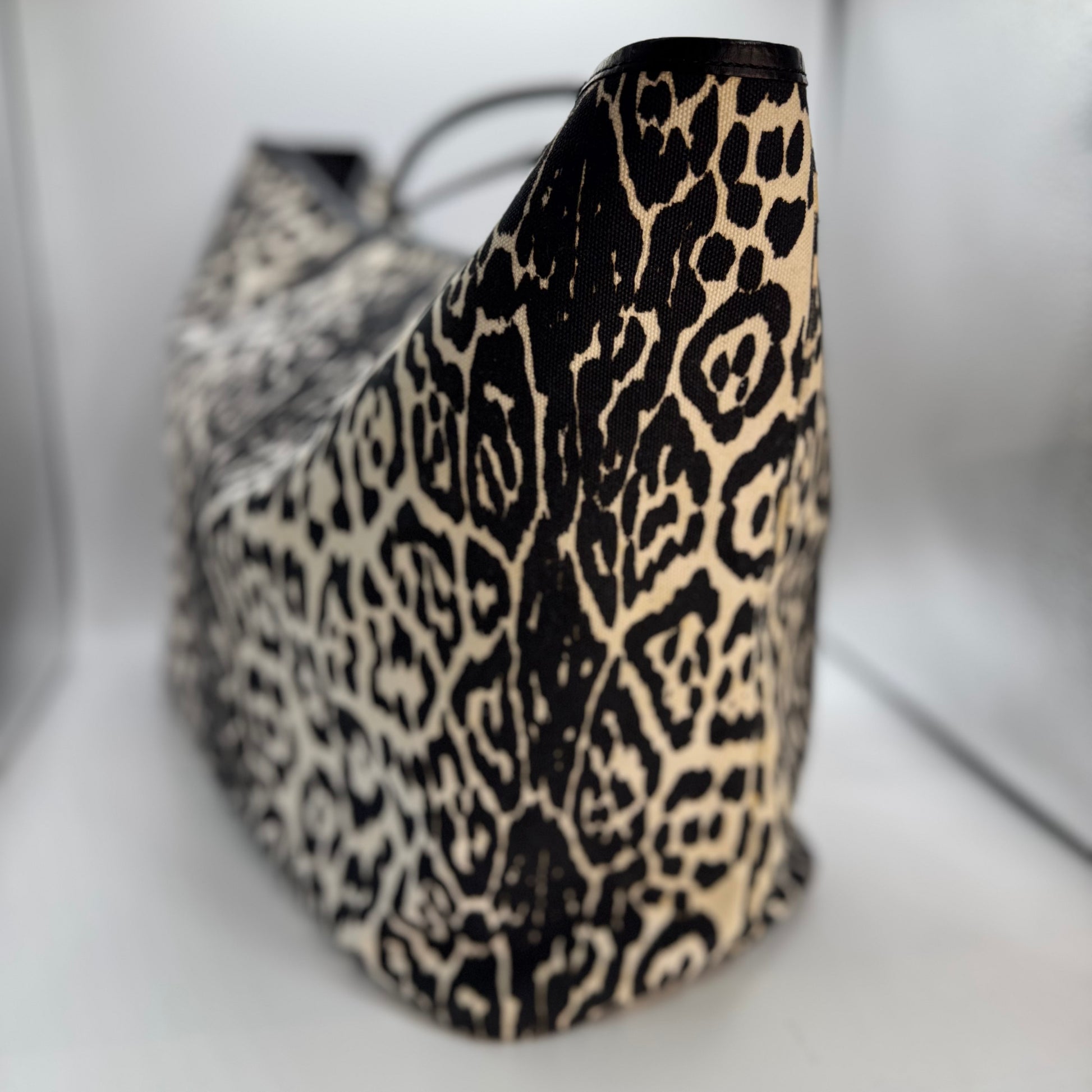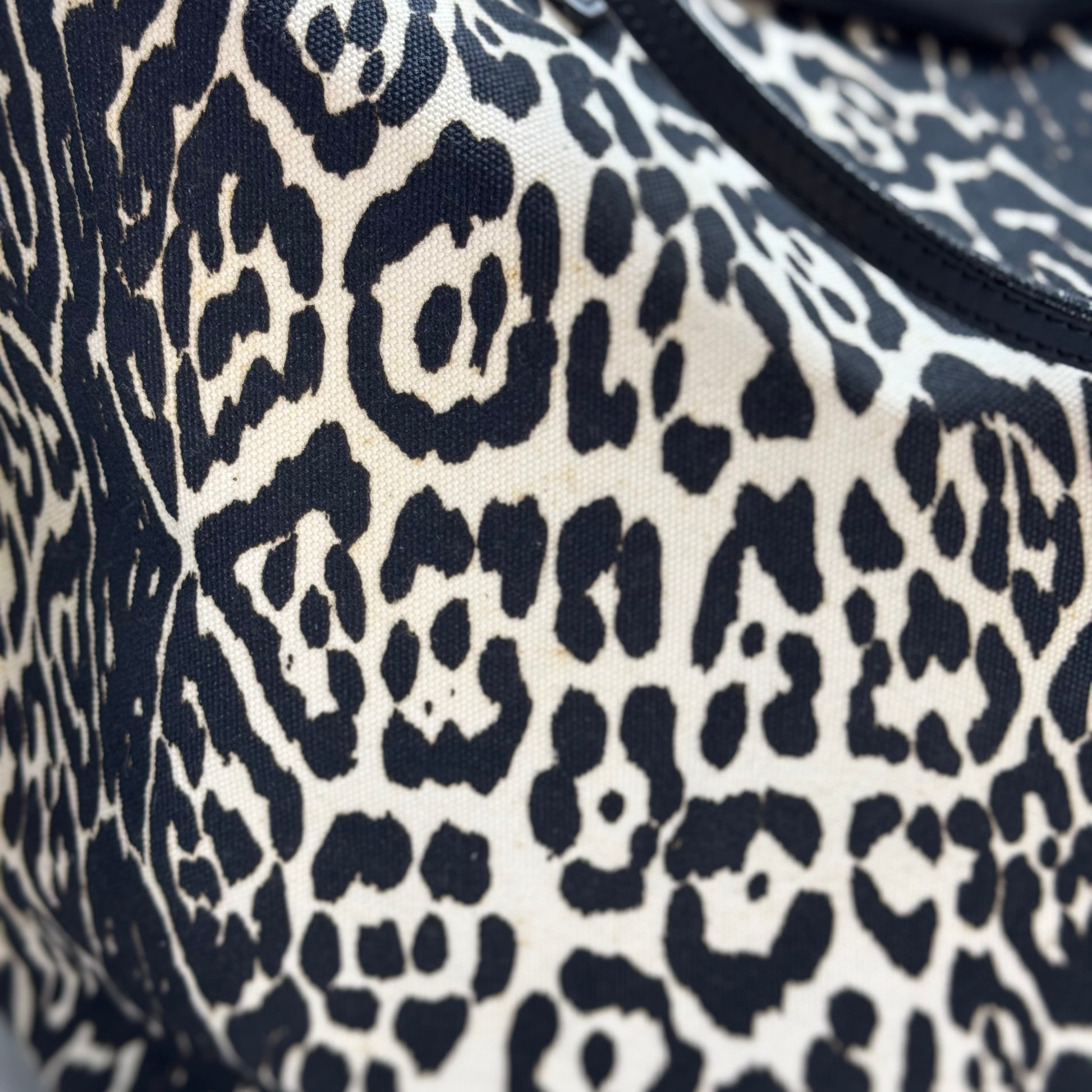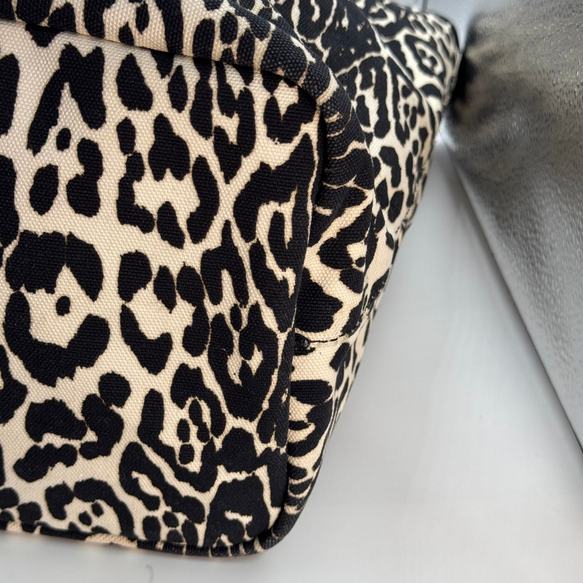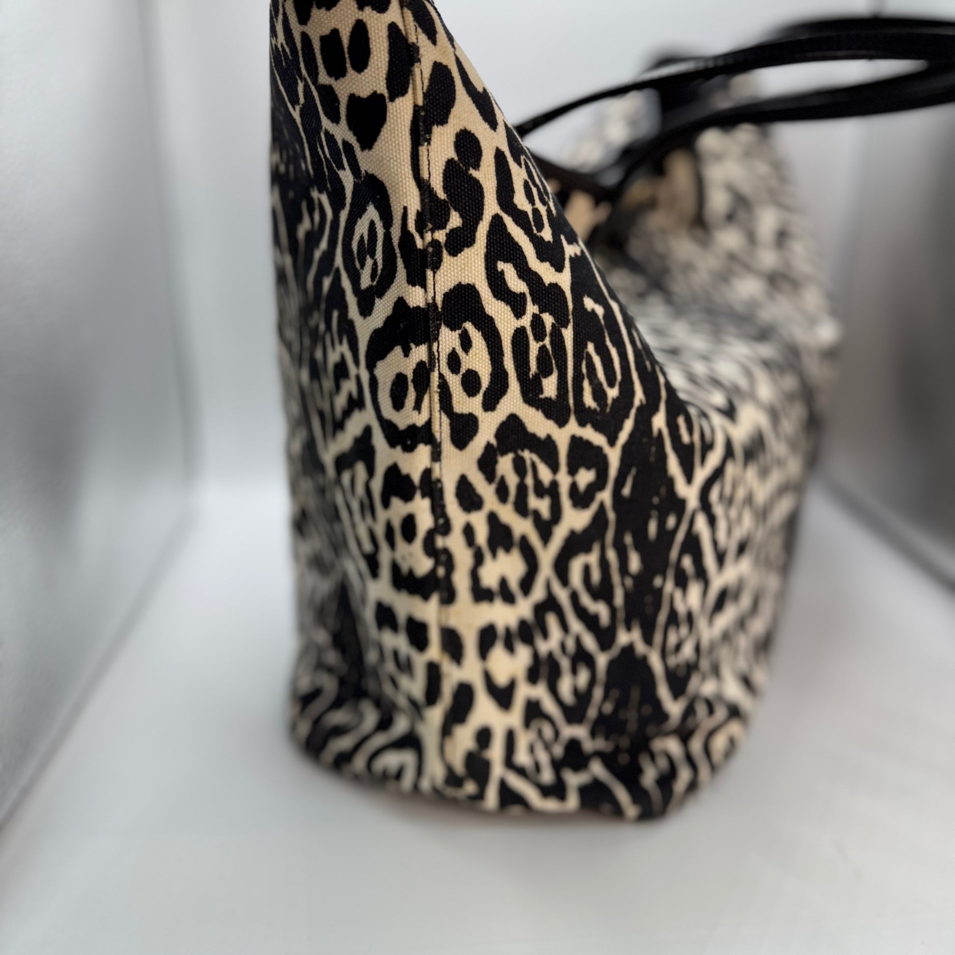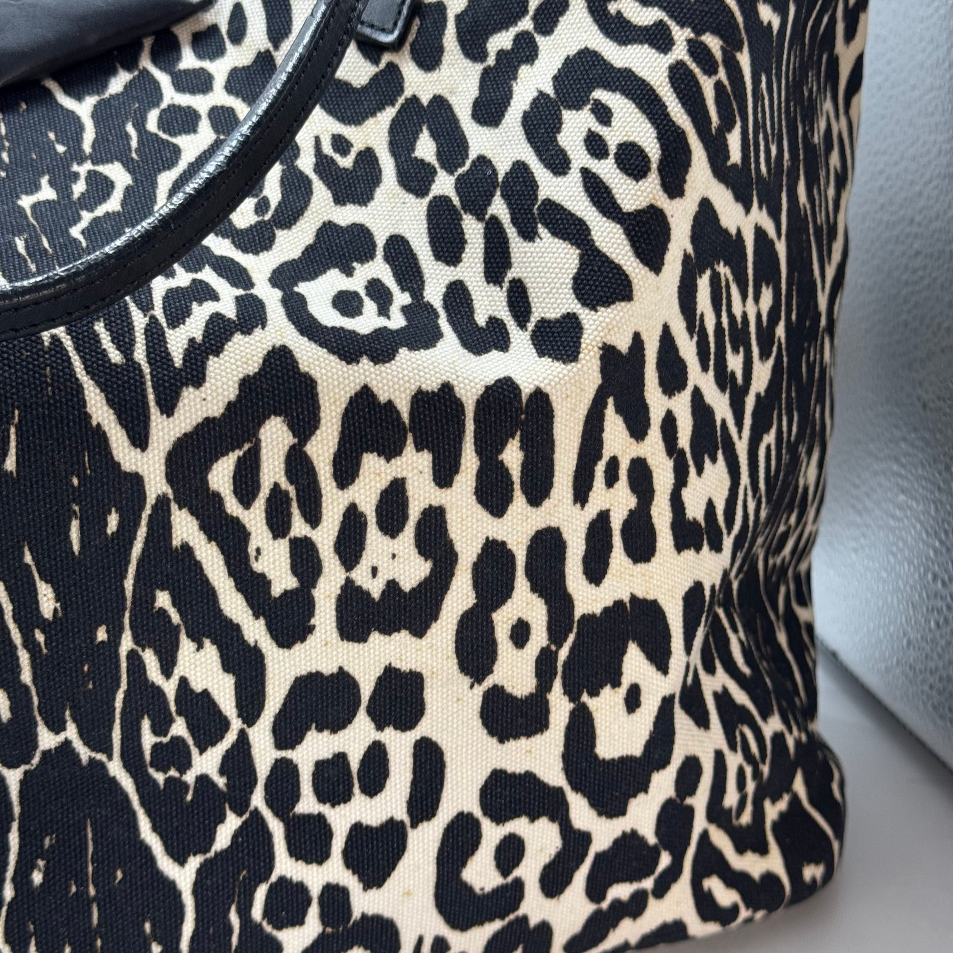 Sac shopping Givenchy, en toile imprimé léopard et finition en cuir noir. Le logo Givenchy embossé en métal doré. Il se porte à la main.