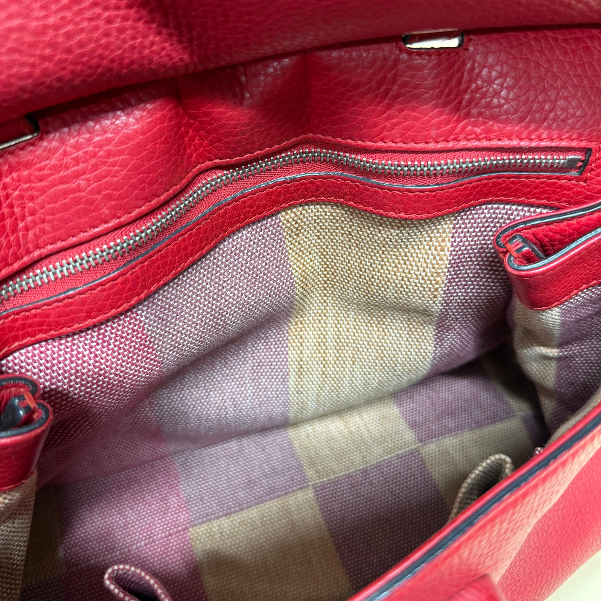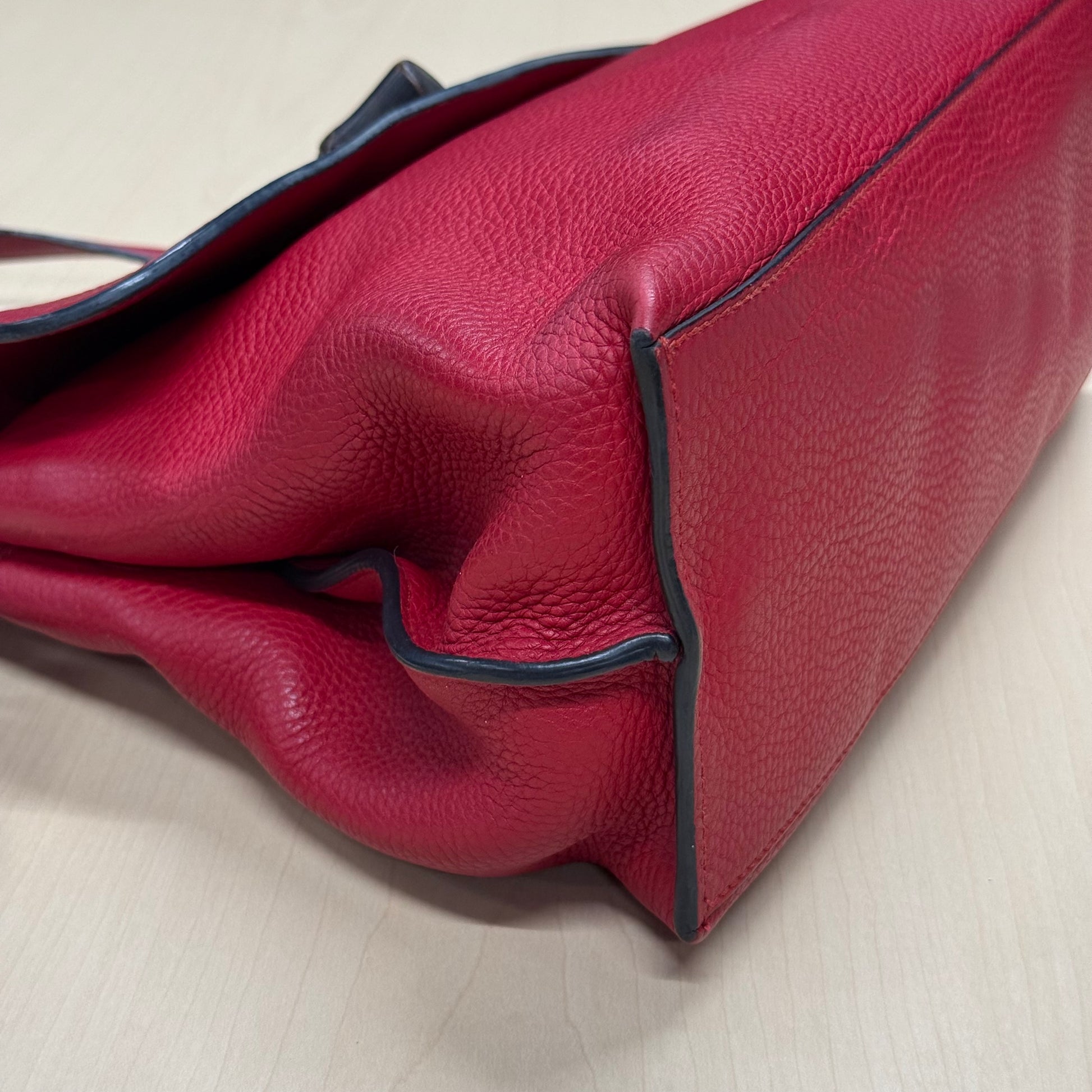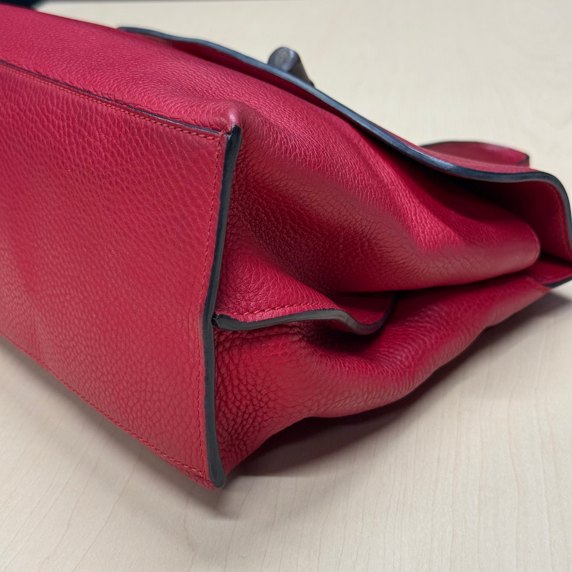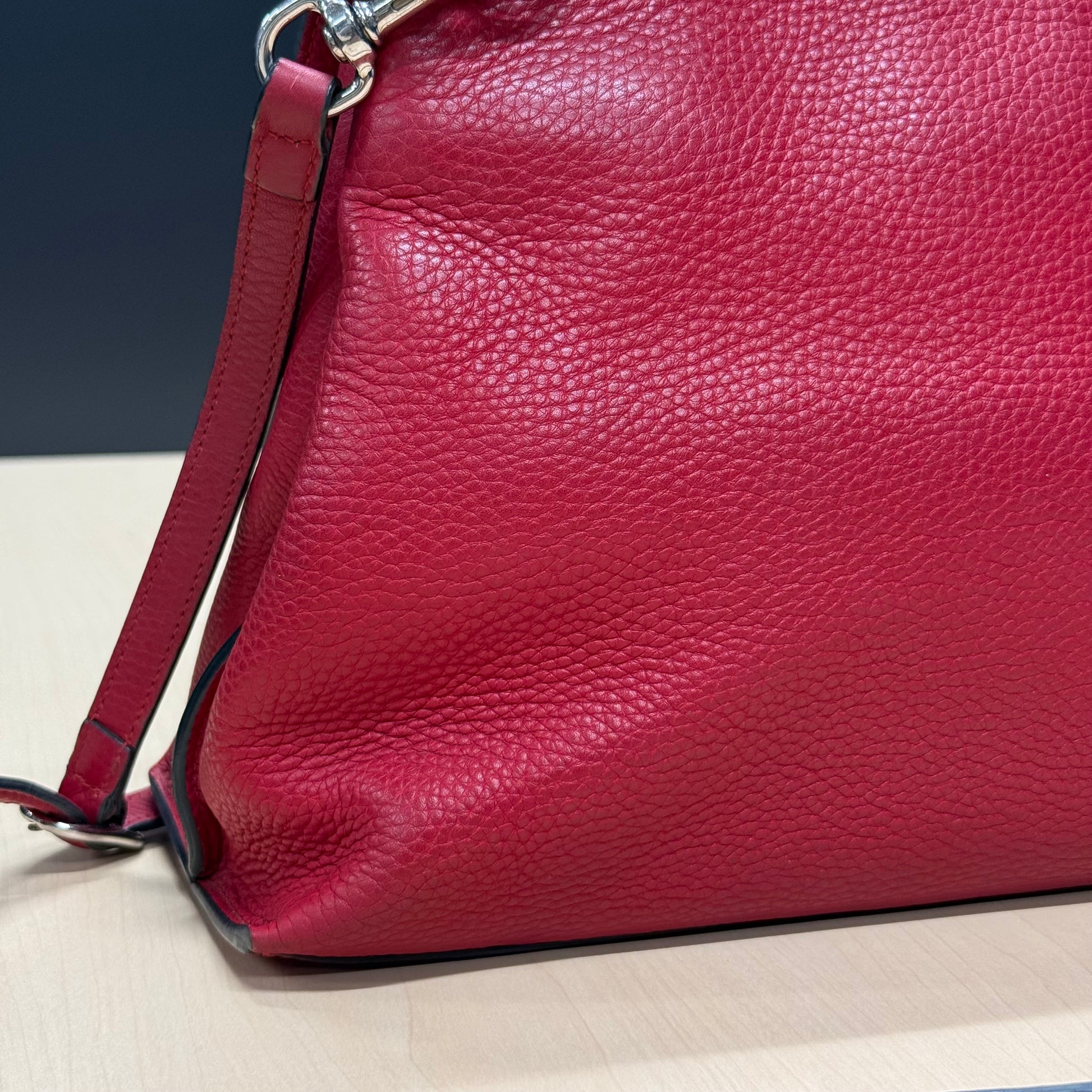 Sac Gucci en cuir de veau grainé rouge et fermoir bamboo.
