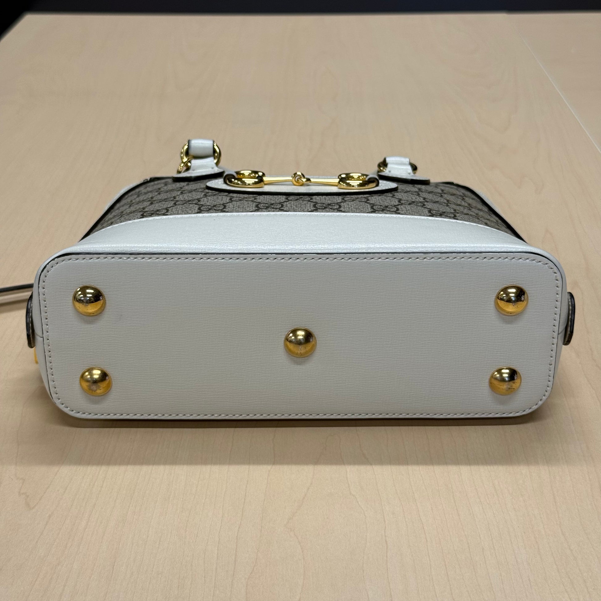 Sac bandoulière Horsebit 1955 en toile enduite GG en cuir de veau beige , porte bandoulière