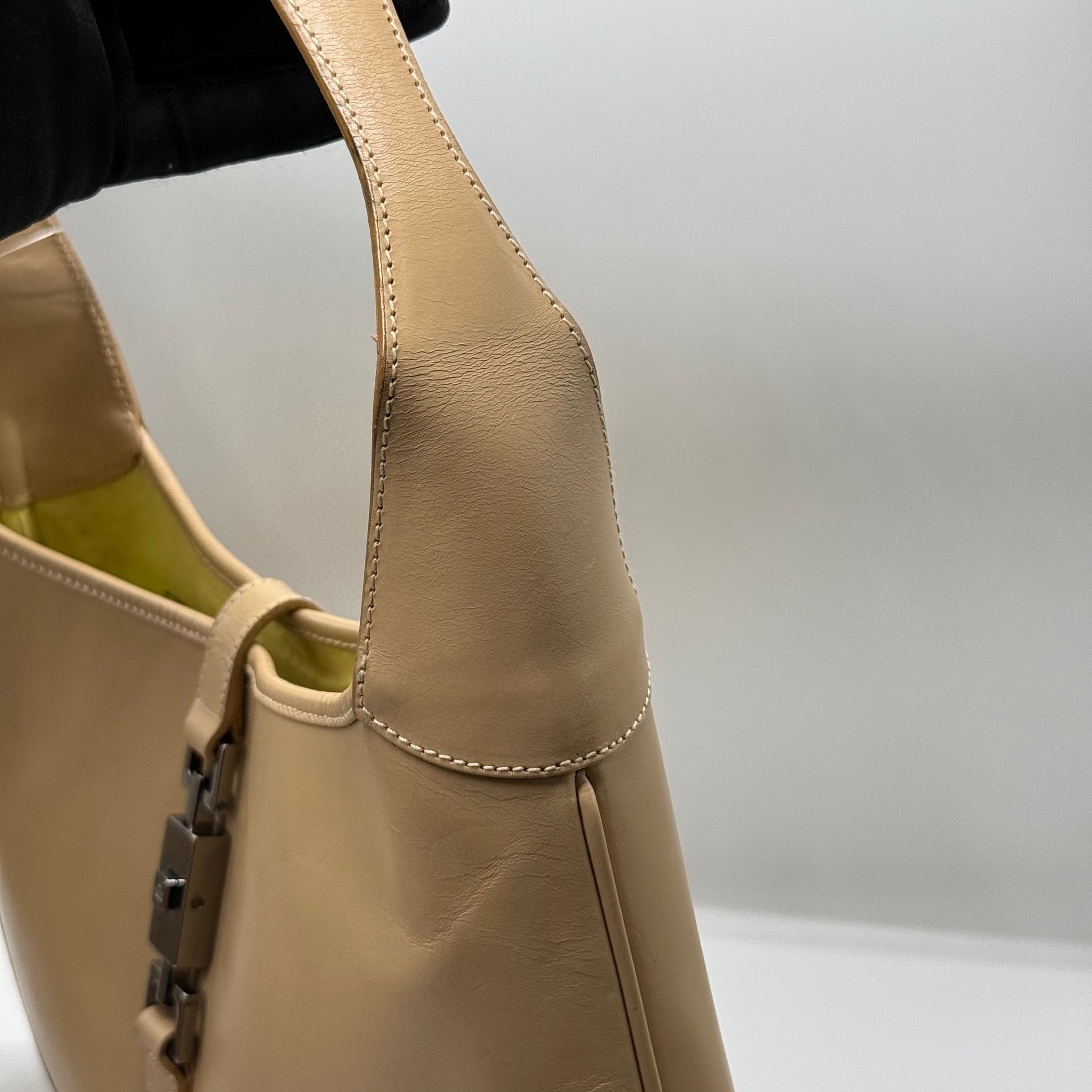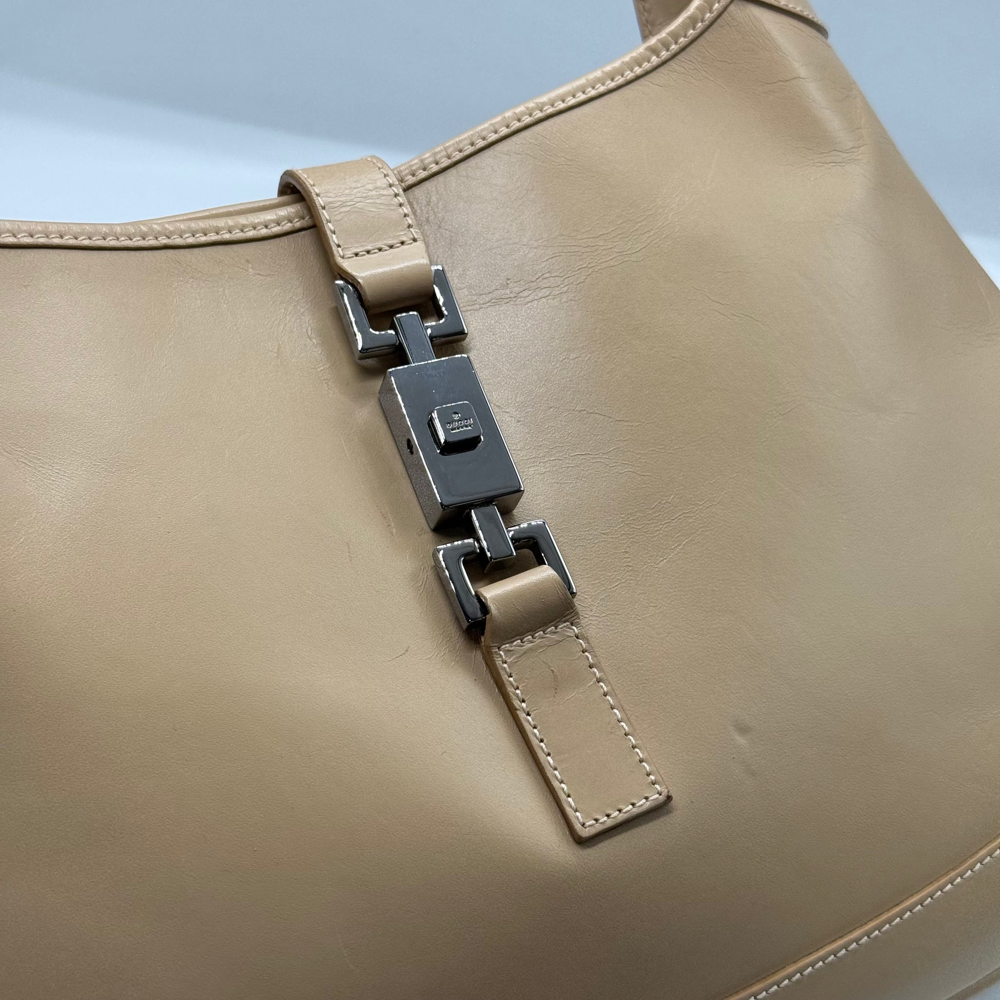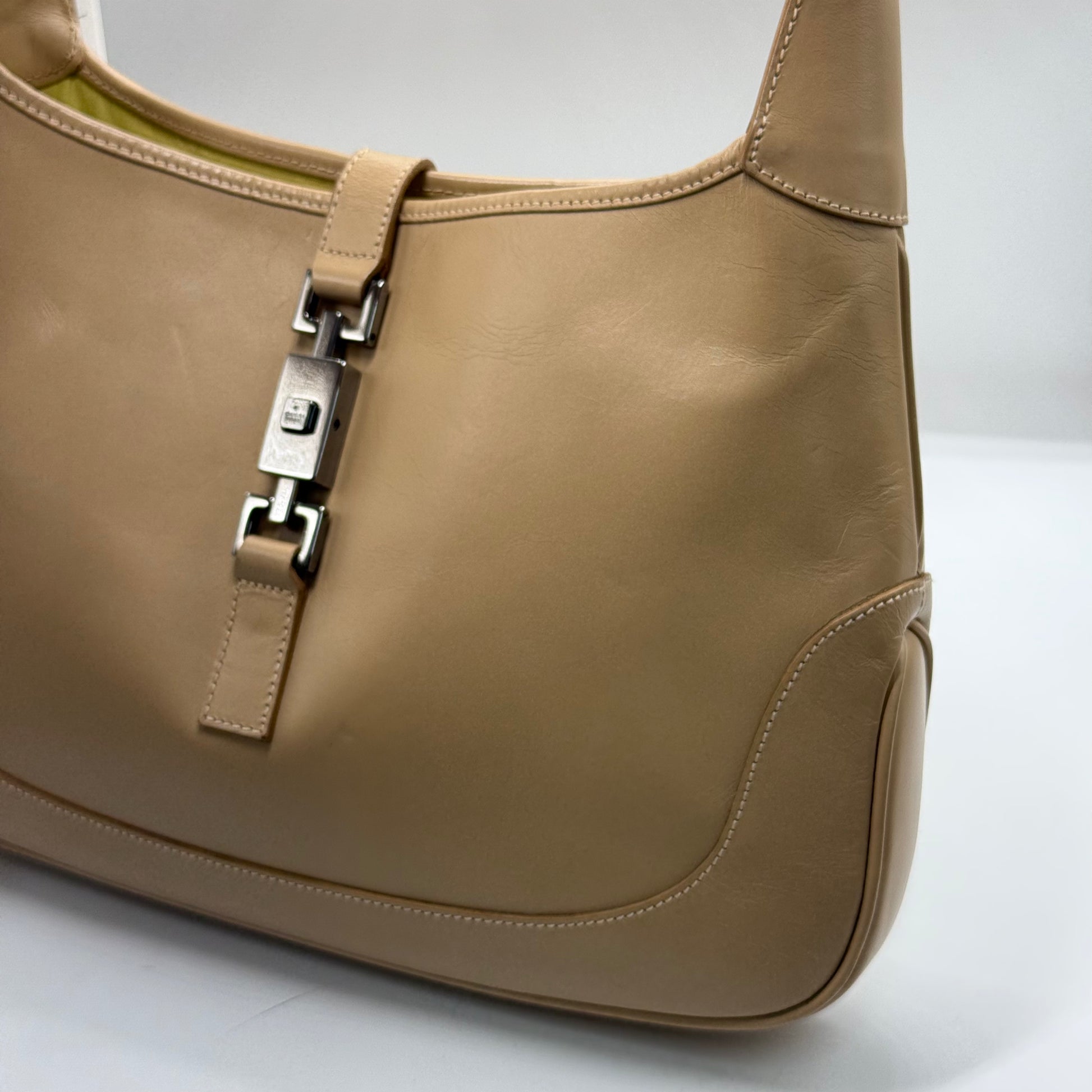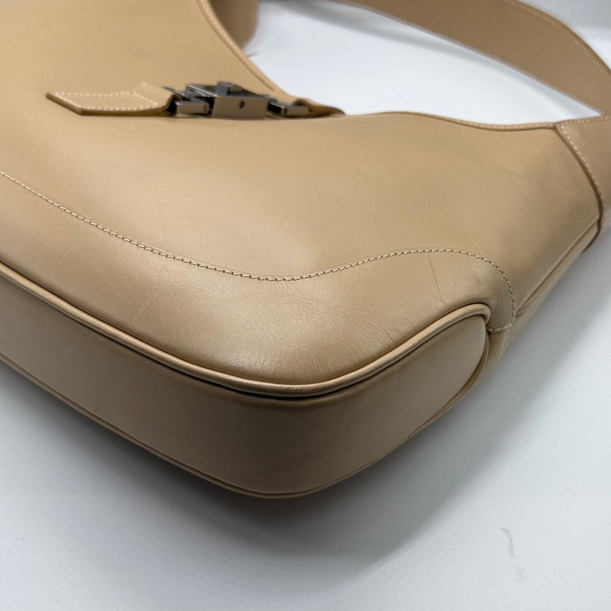 Sac Gucci Jackie en cuir de veau beige. Ce modèle se porte à l'épaule.