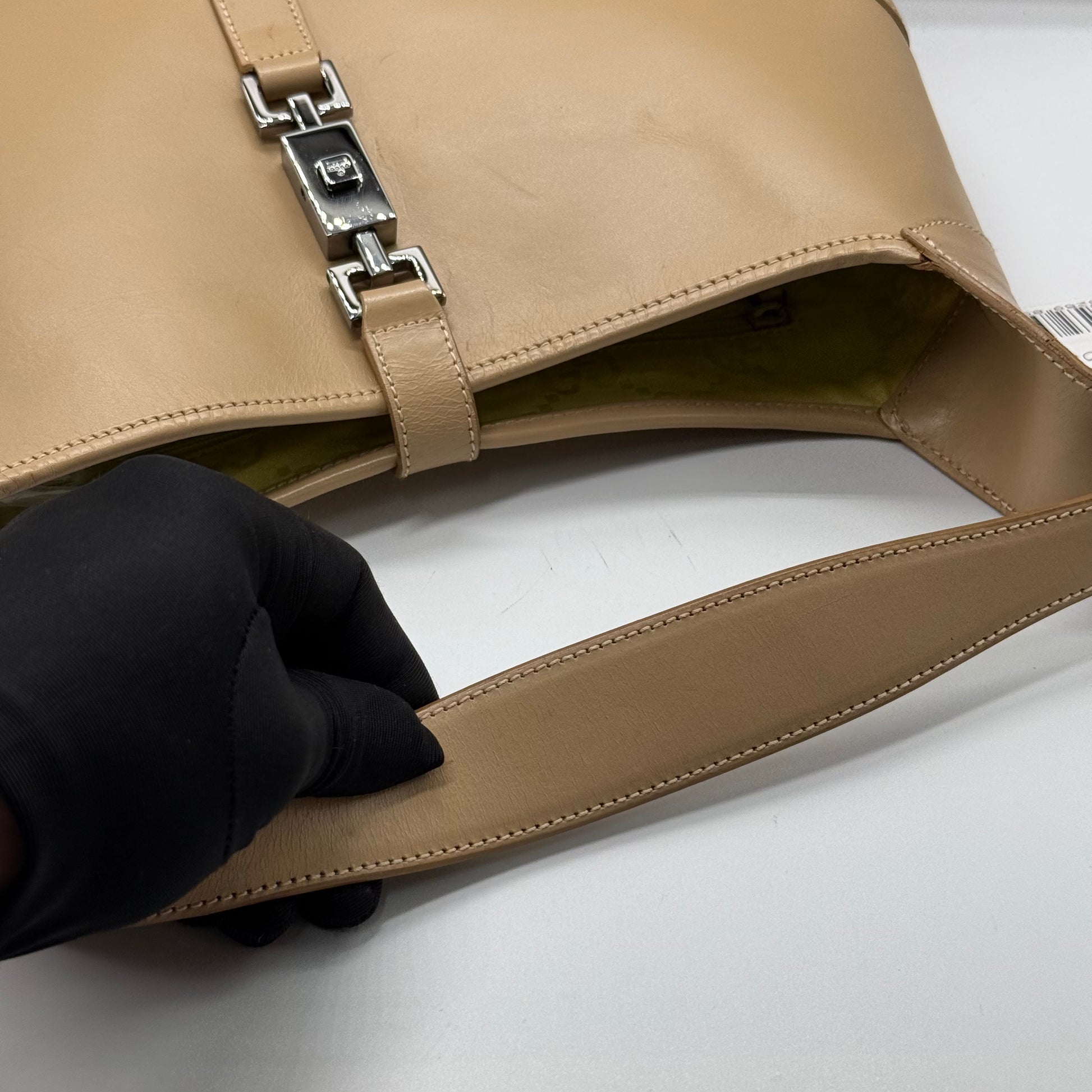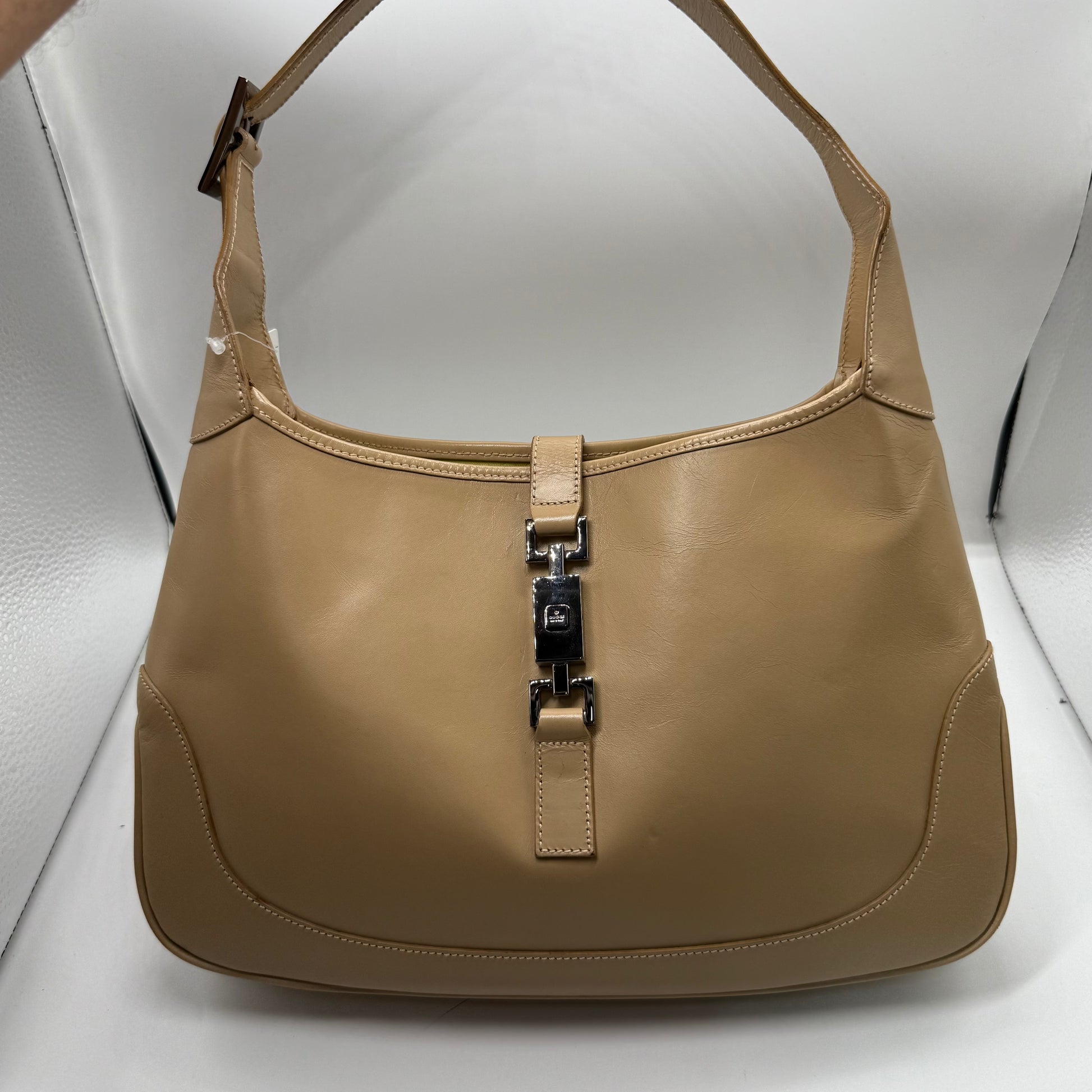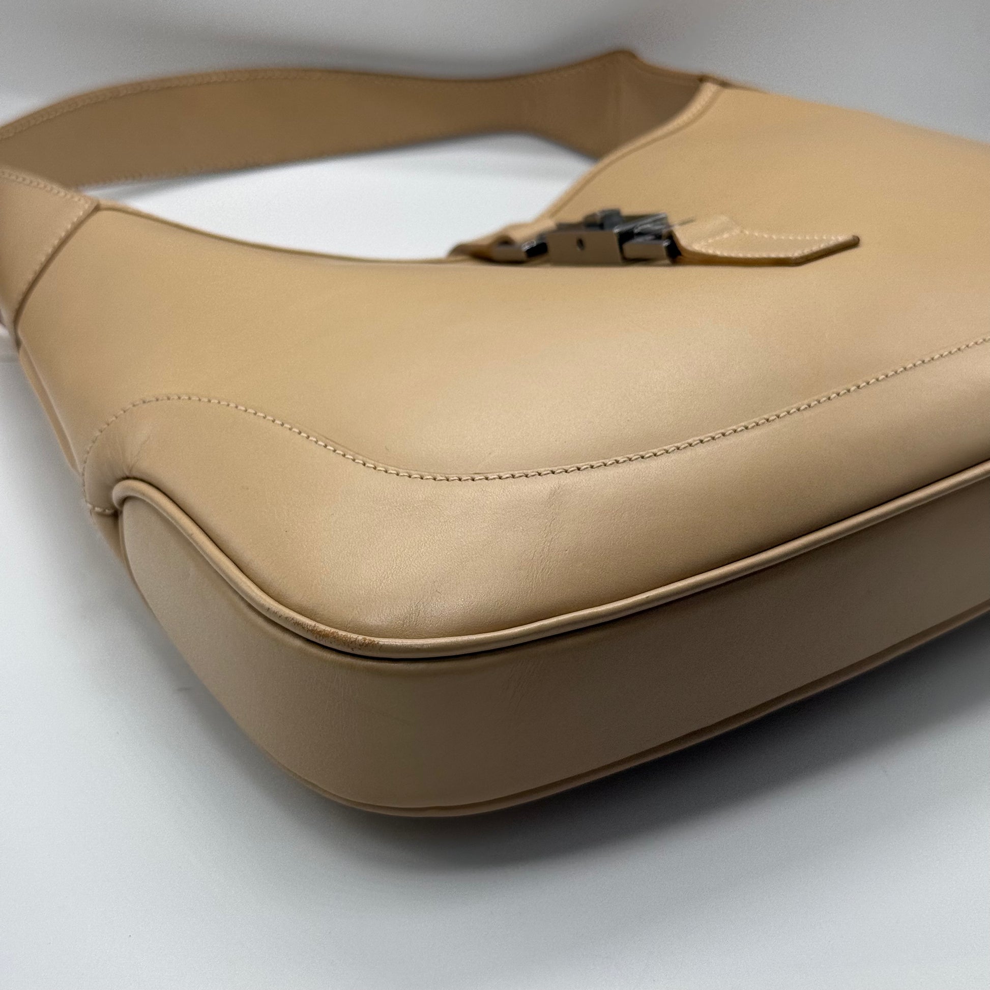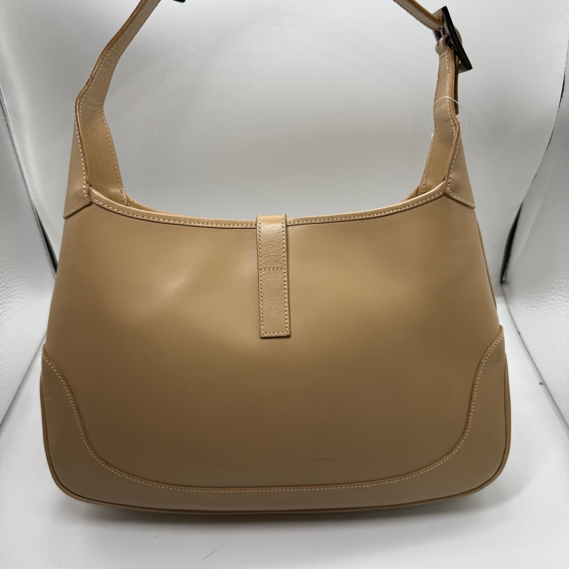 Sac Gucci Jackie en cuir de veau beige. Ce modèle se porte à l'épaule.