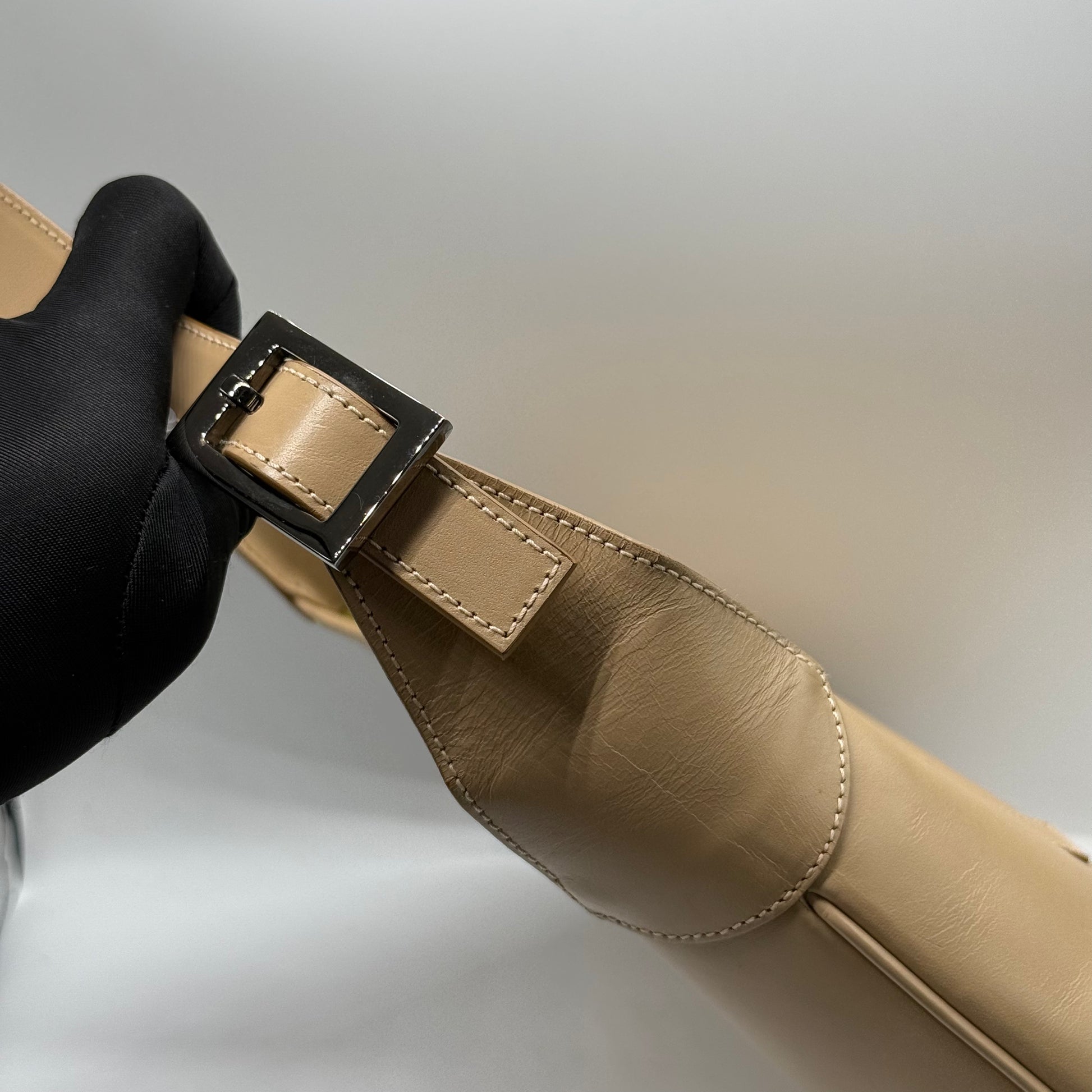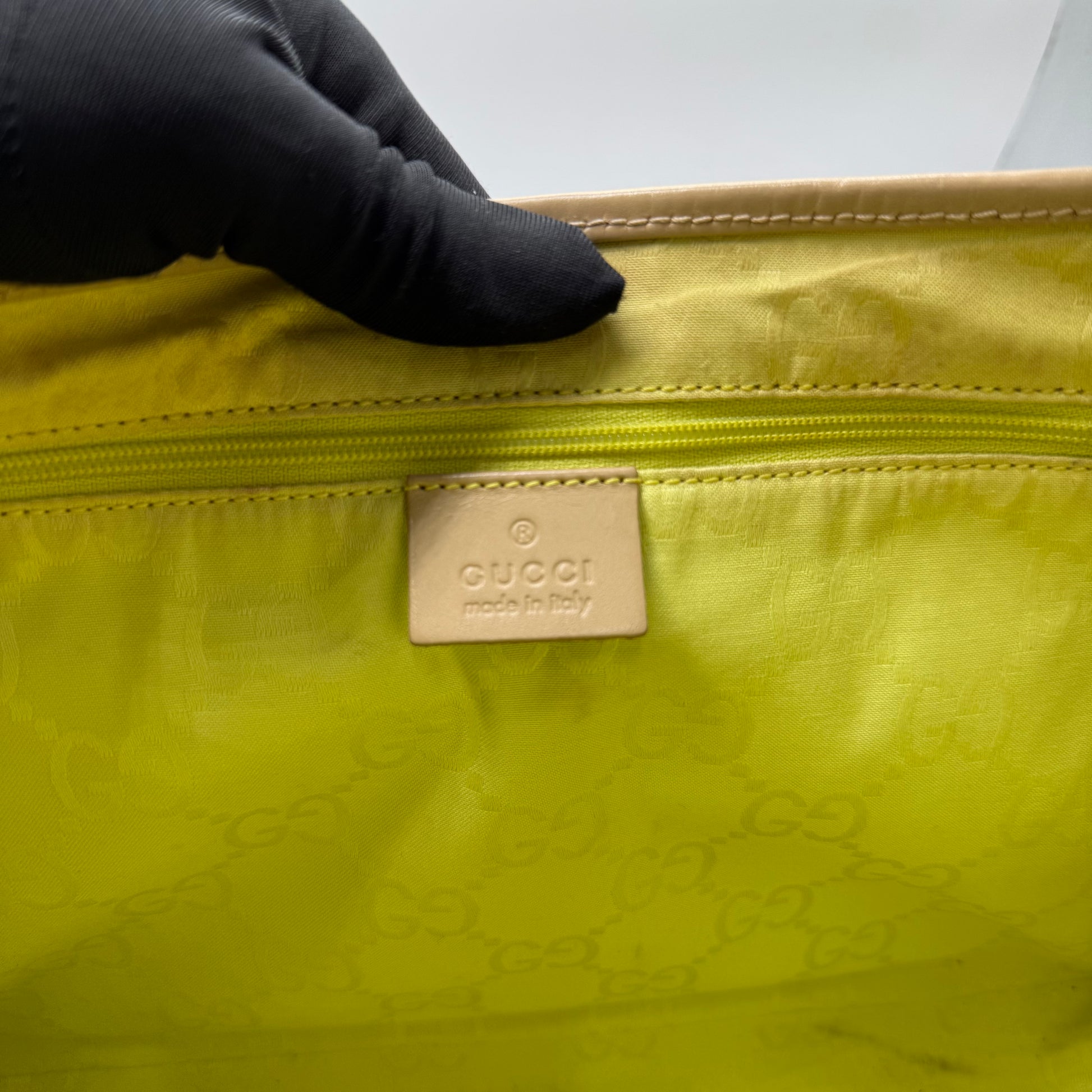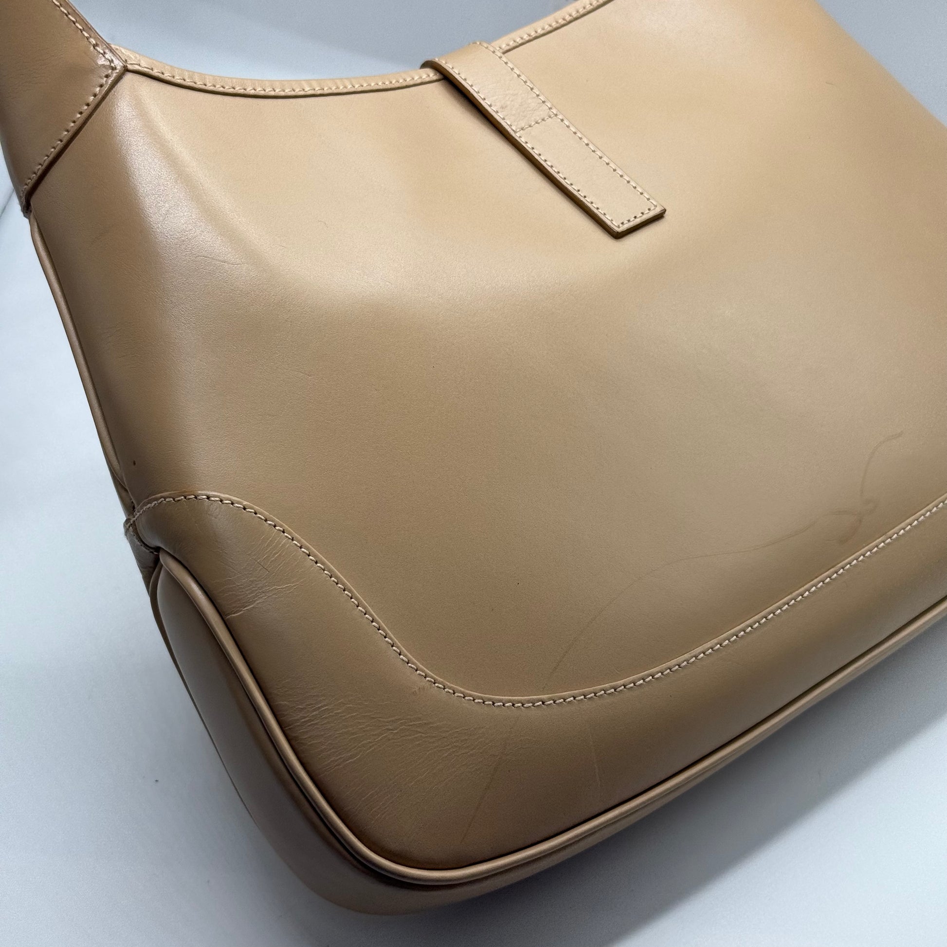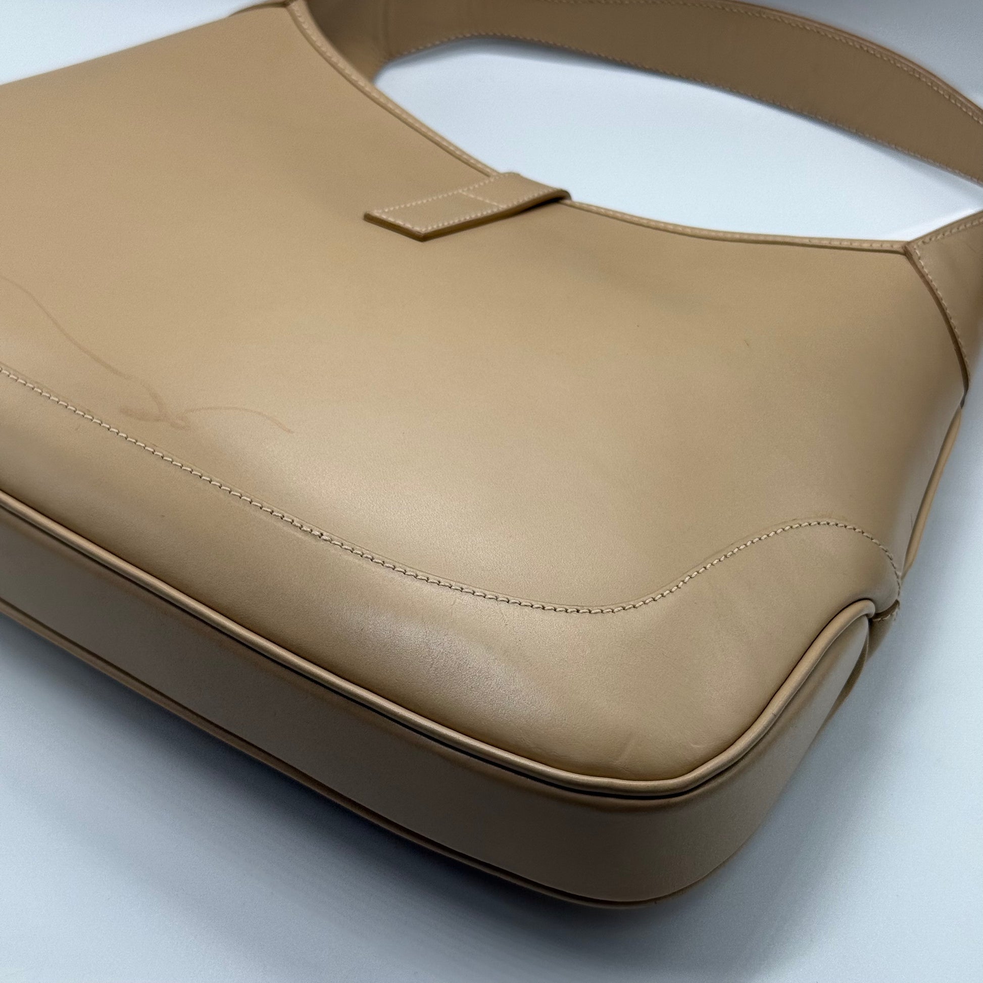 Sac Gucci Jackie en cuir de veau beige. Ce modèle se porte à l'épaule.