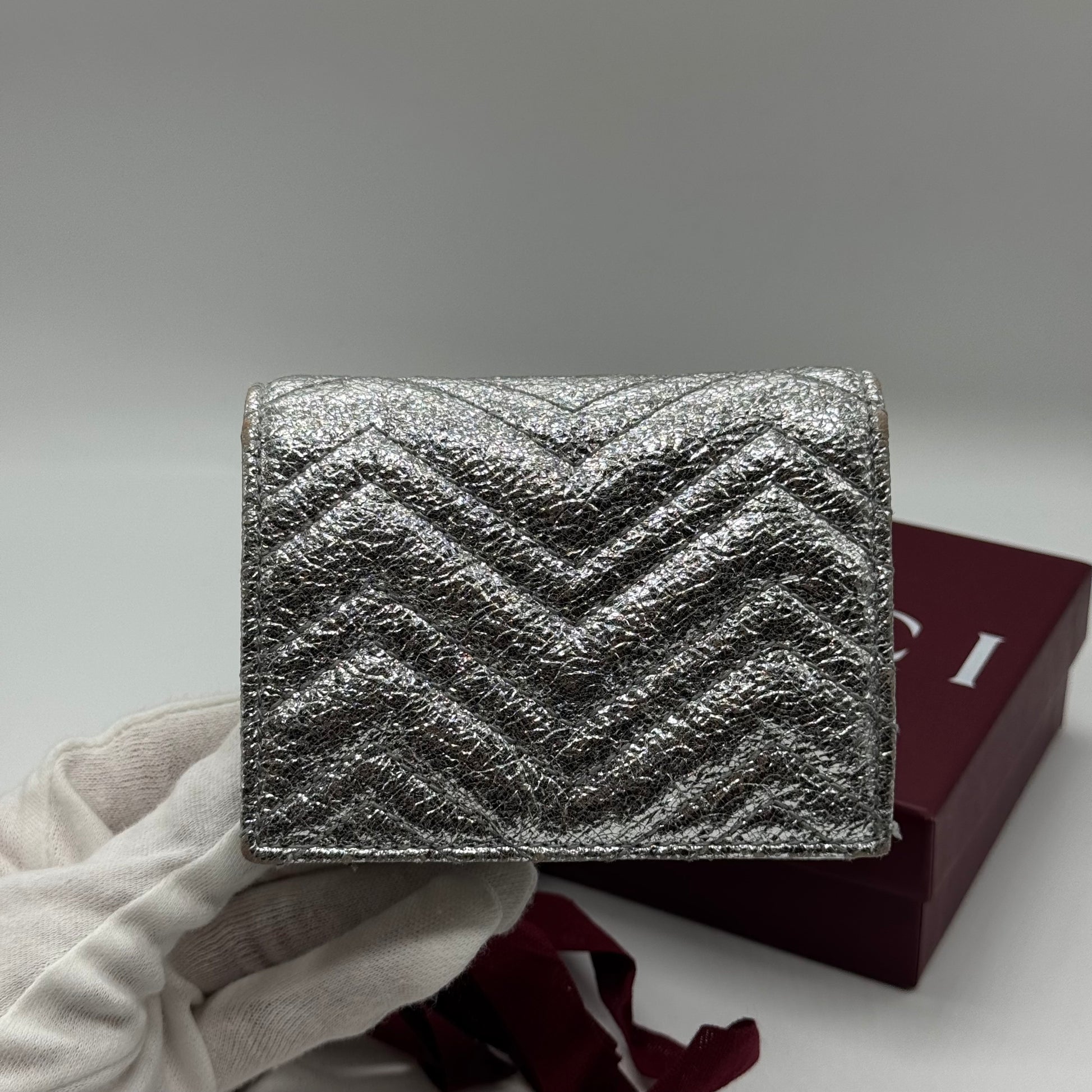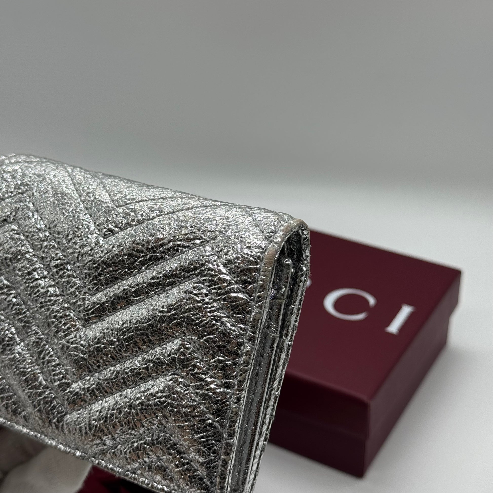 Portefeuille compact Gucci en cuir de veau vieilli Silver