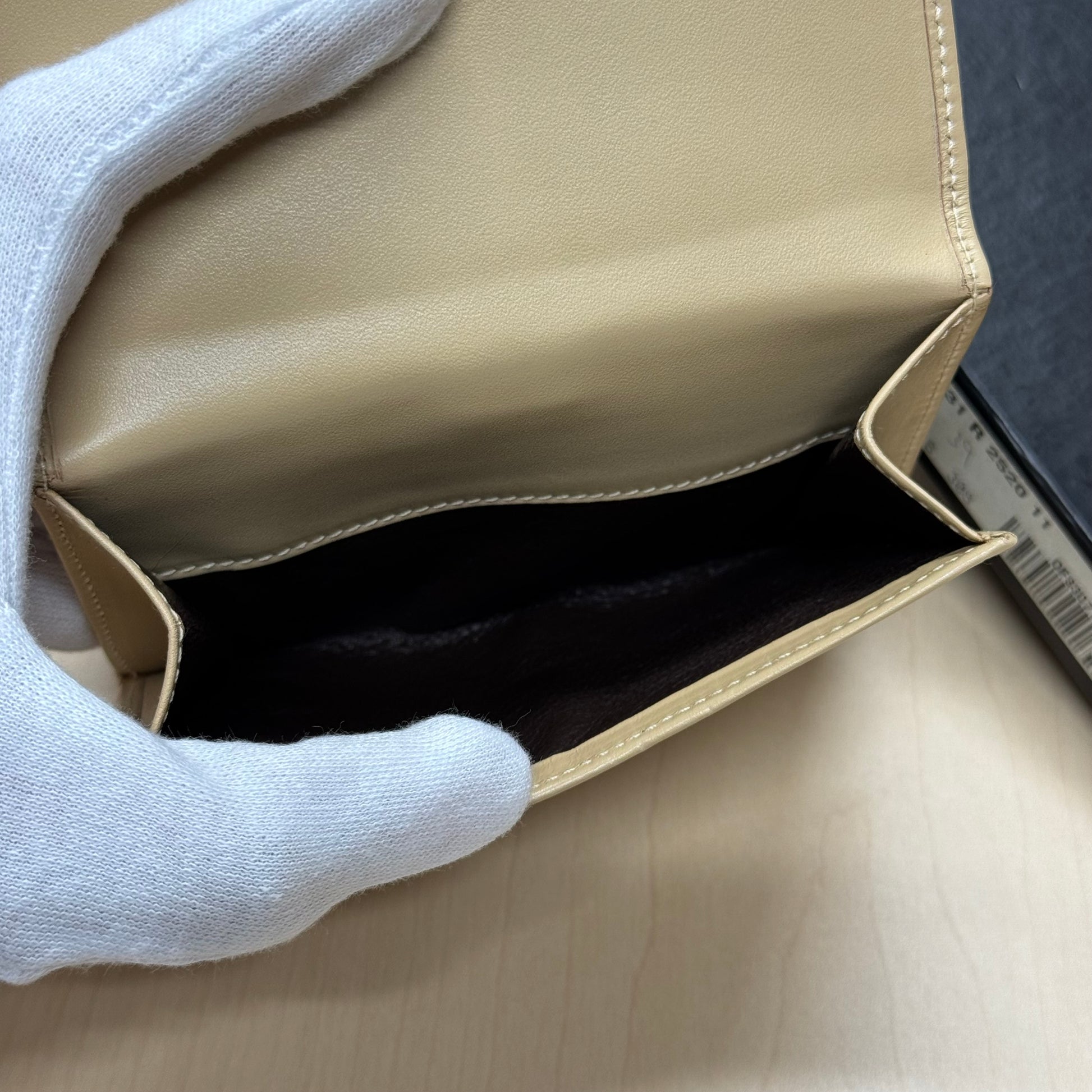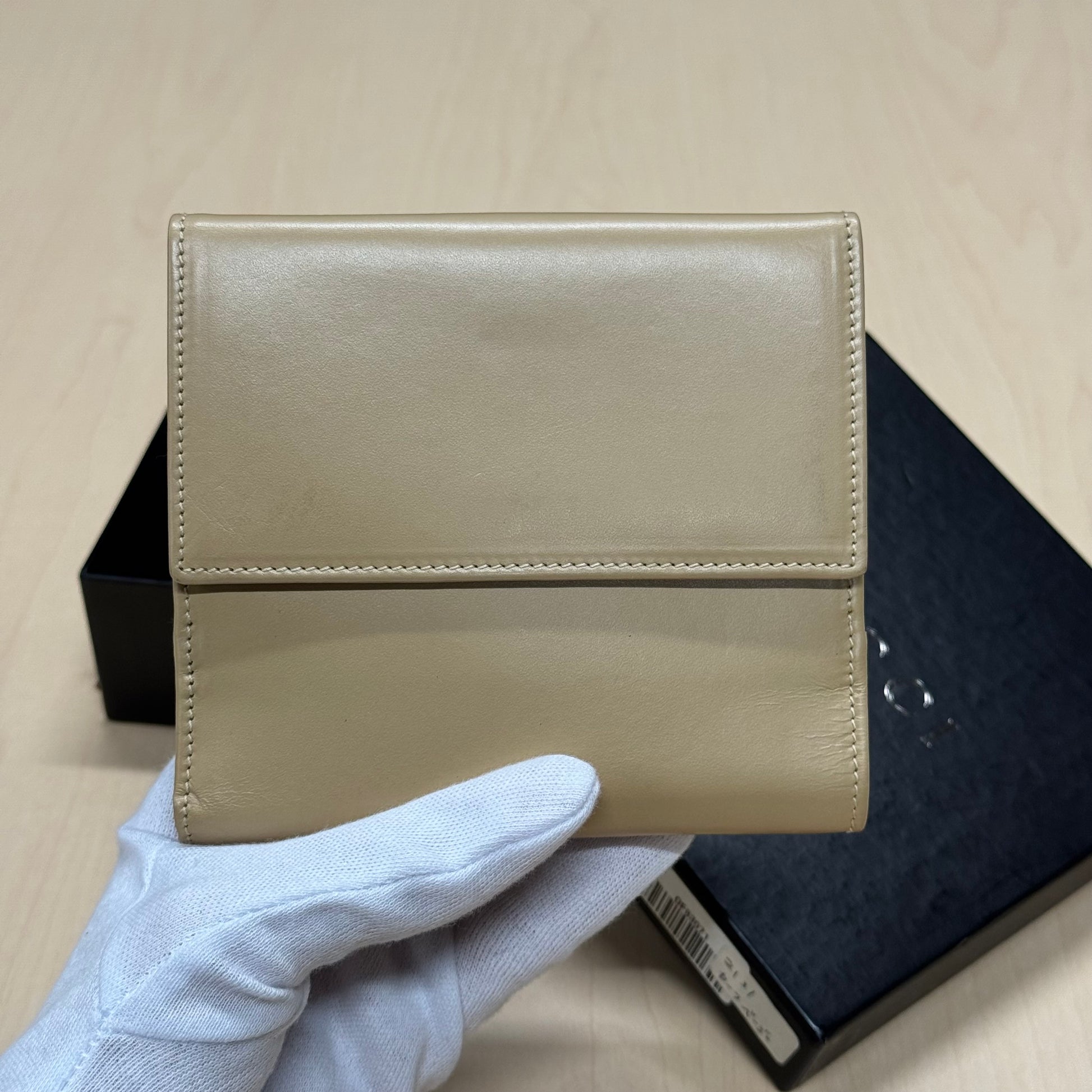 Portefeuille compact Gucci en cuir de veau beige et bijouterie argent.