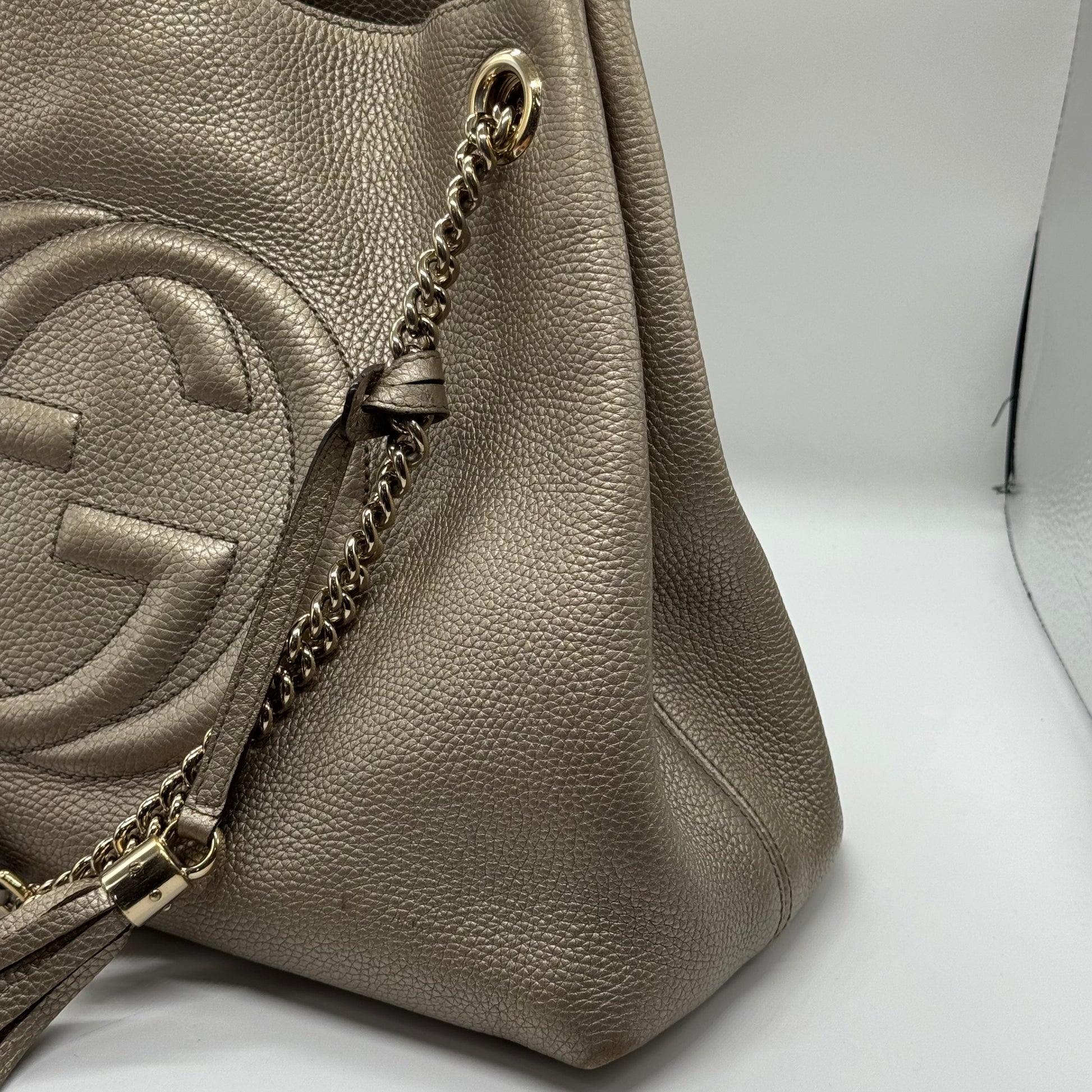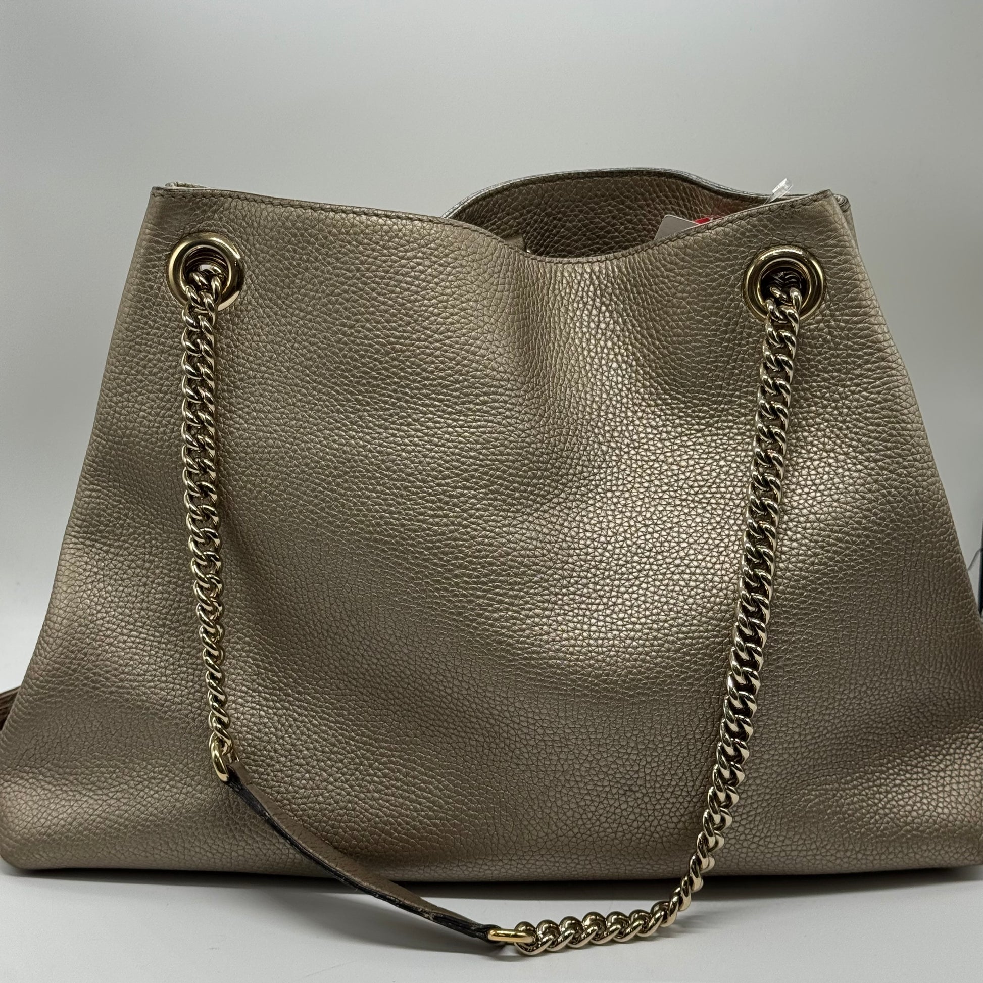 Sac shopping Gucci en cuir de veau grainé mordoré