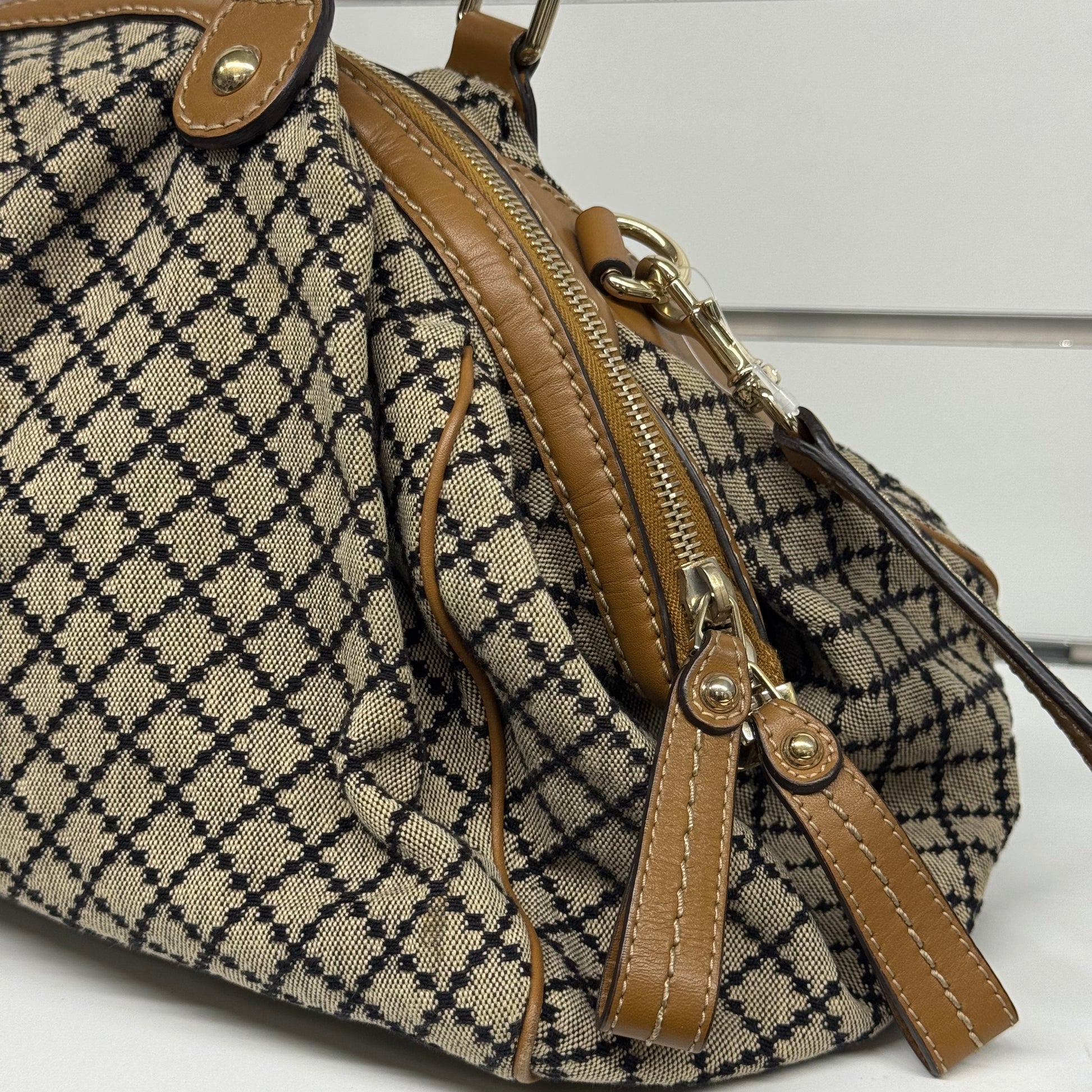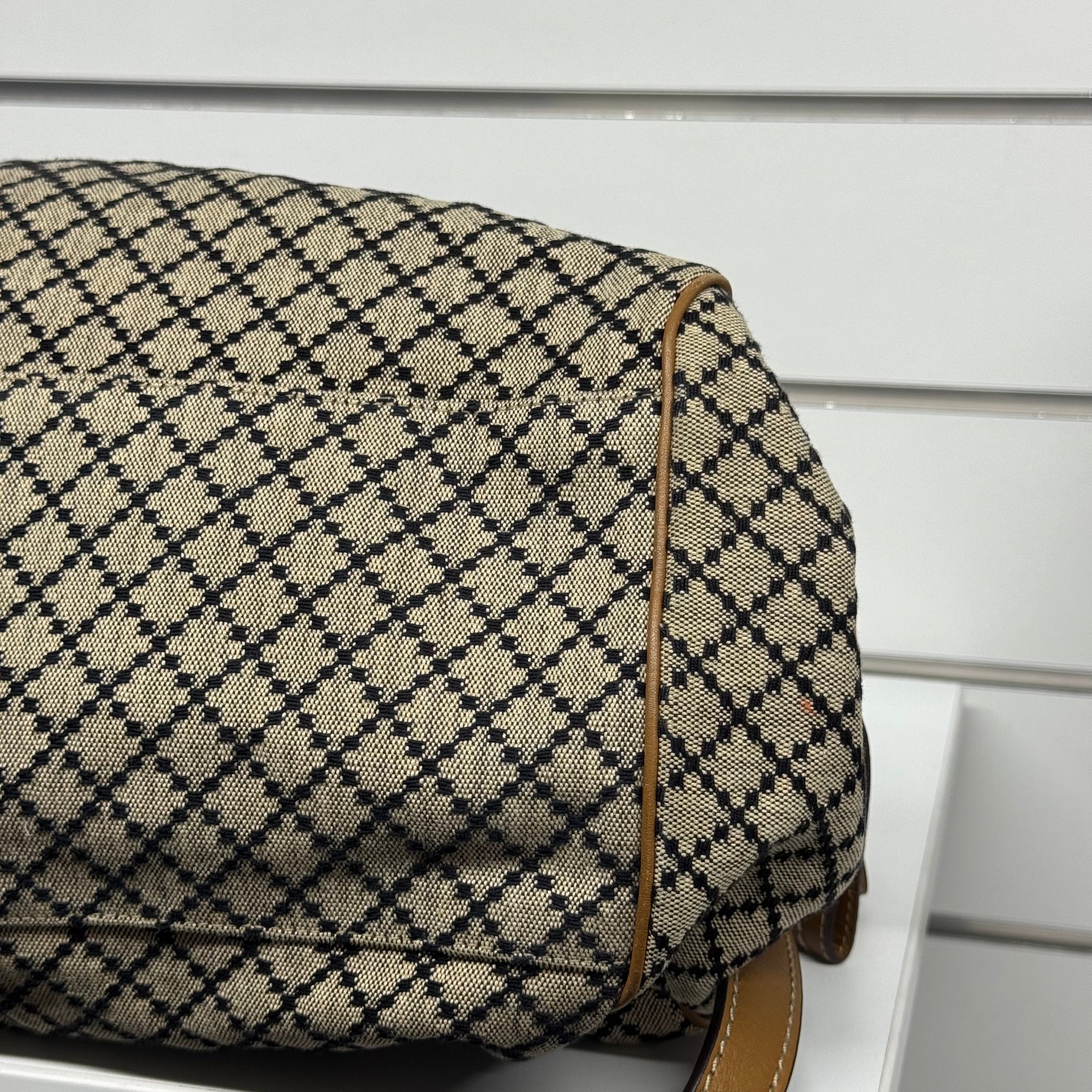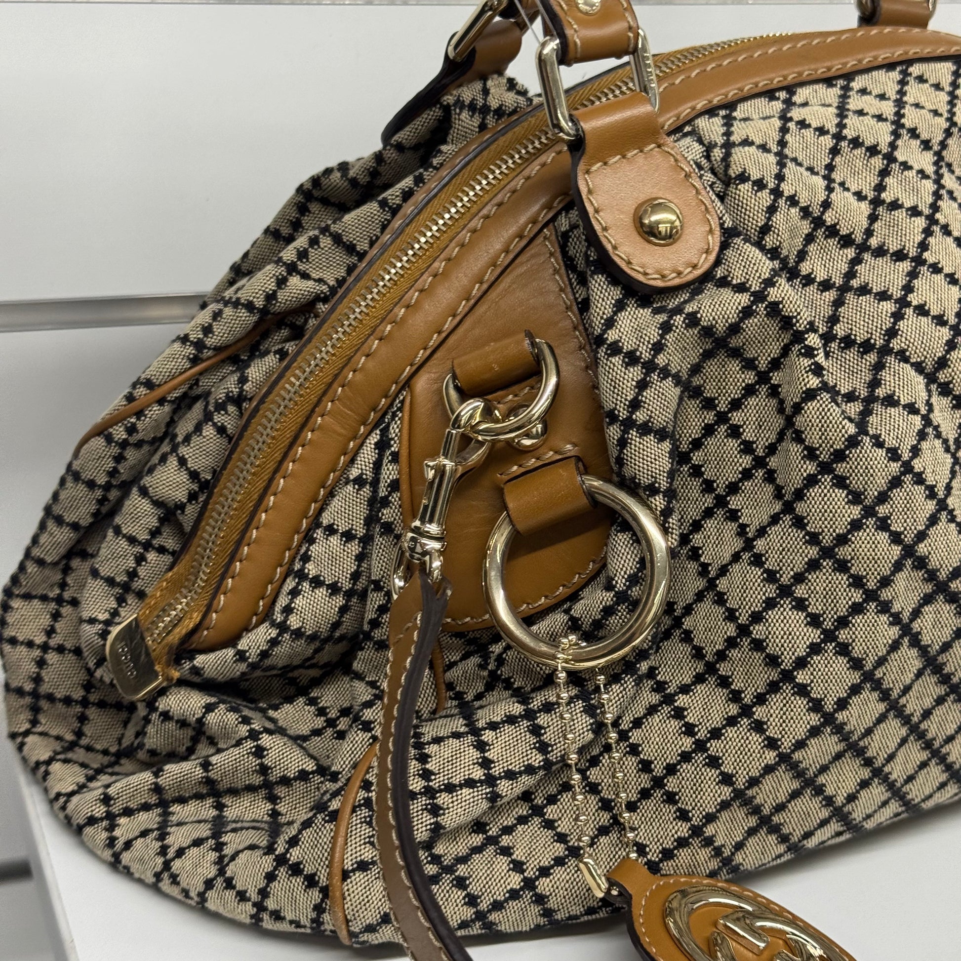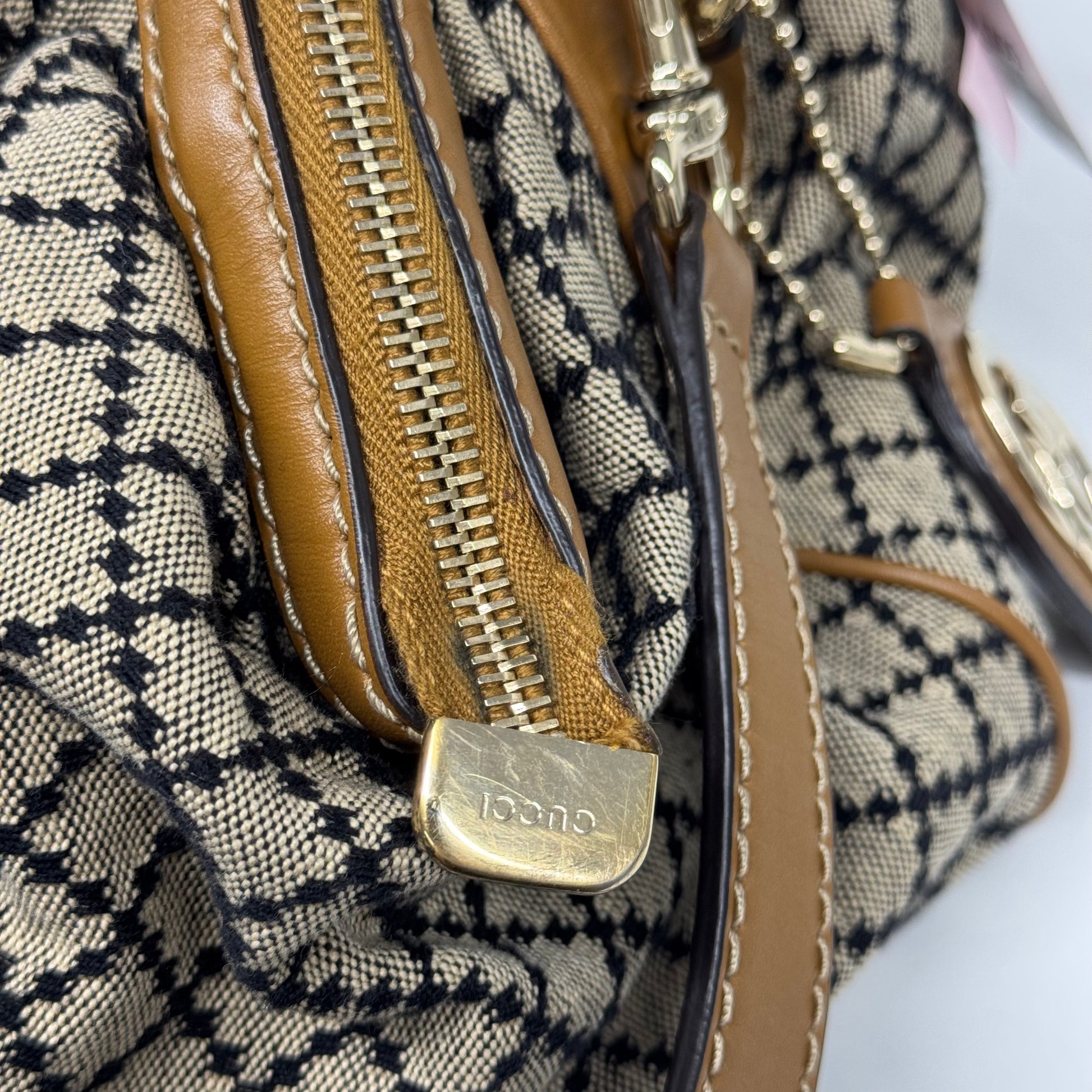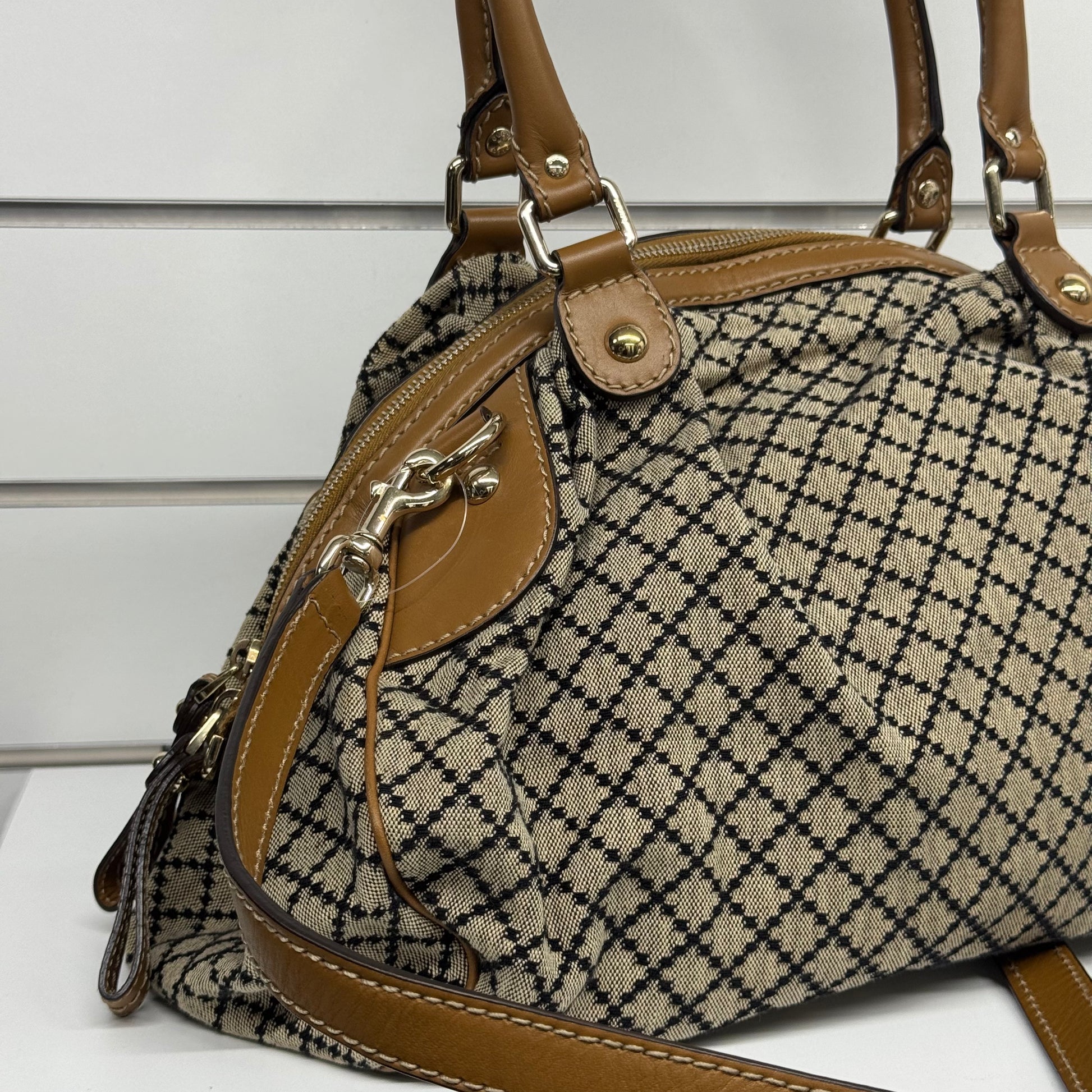 Sac sukey en toile canvas monogram GG et cuir de veau camel, ce modèle se porte main ou bandoulière.