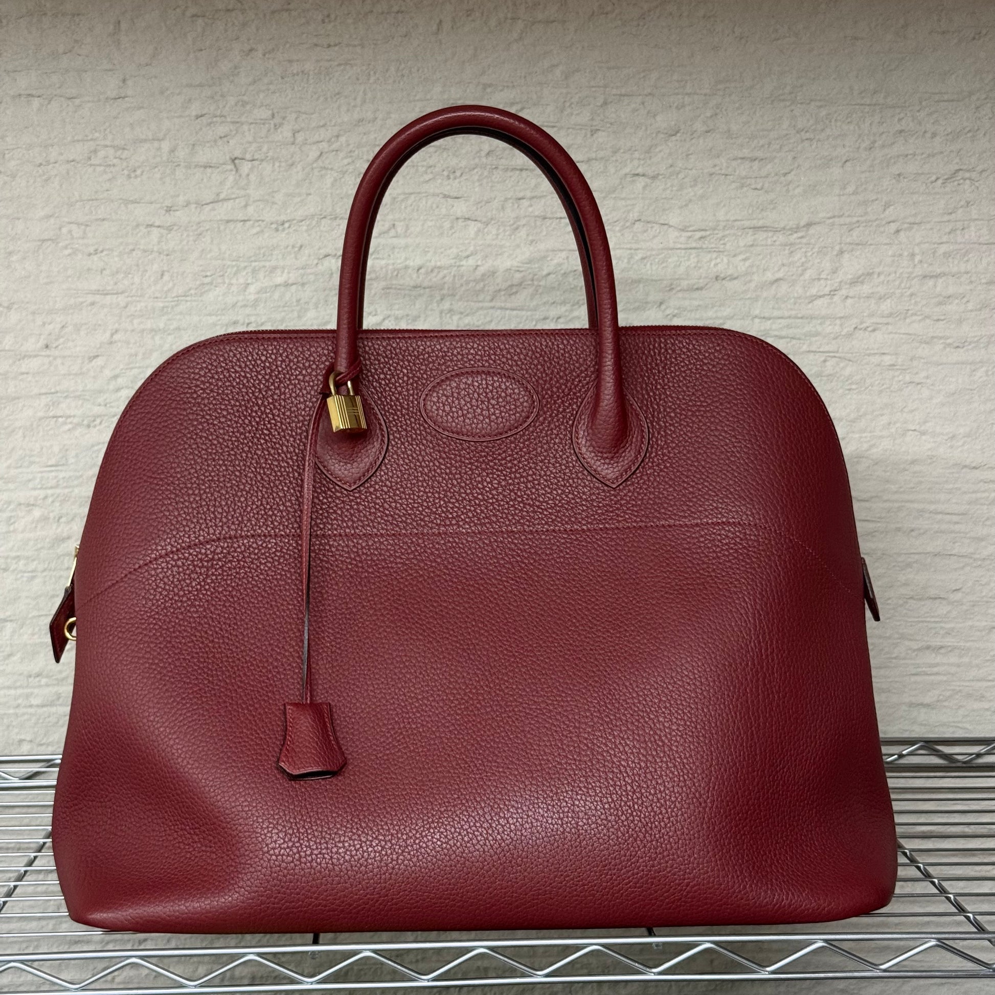 Sac Bolide 45 Hermès en cuir Clémence bordeaux