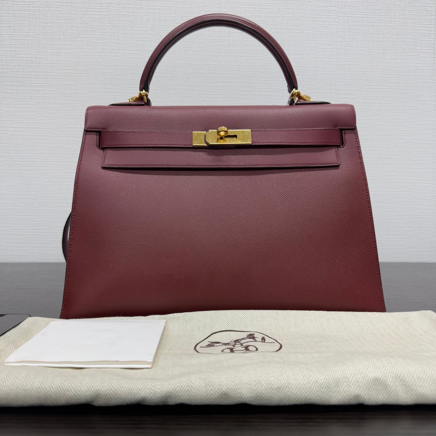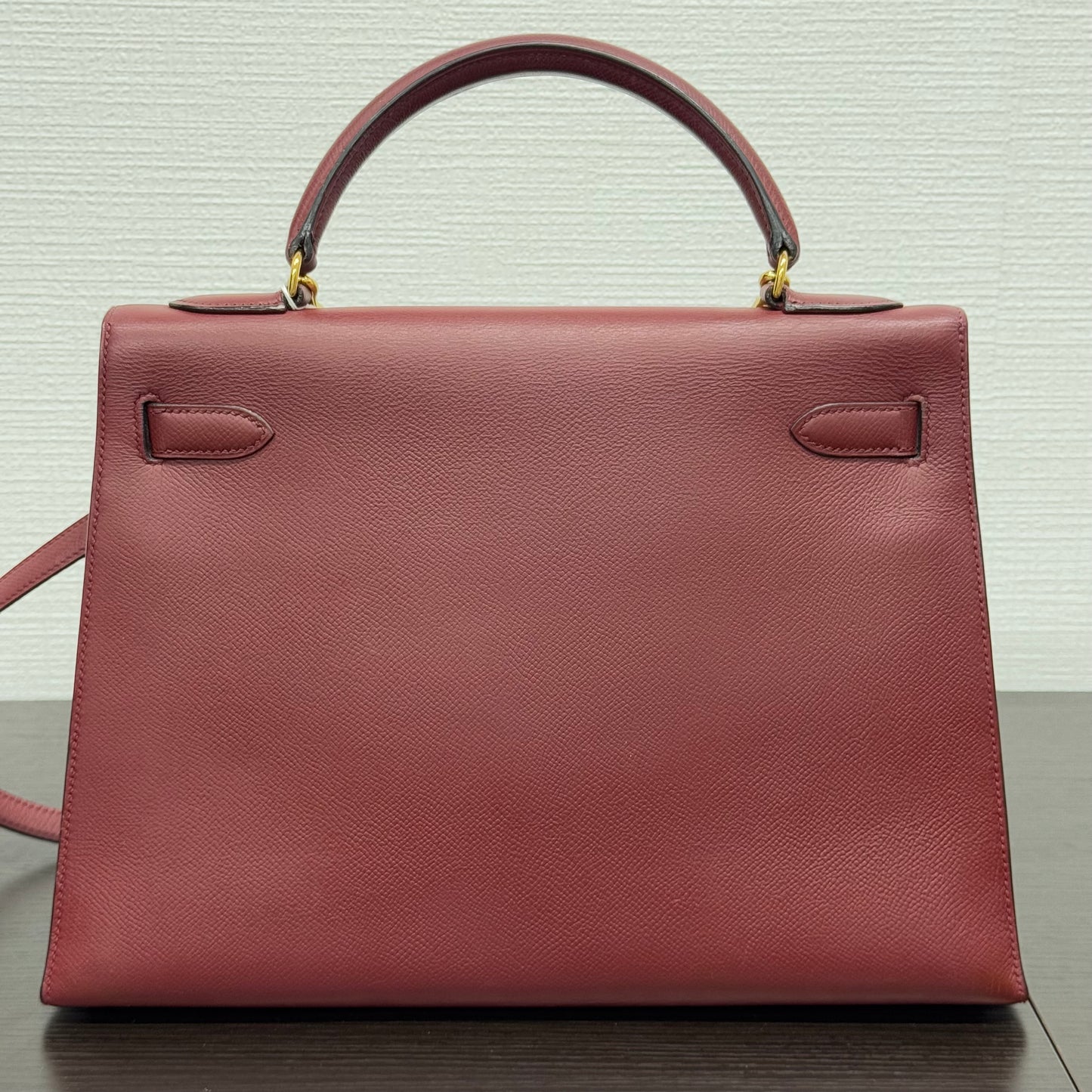 Sac Hermès Kelly en cuir courchevel produit en 1990, taille 32.