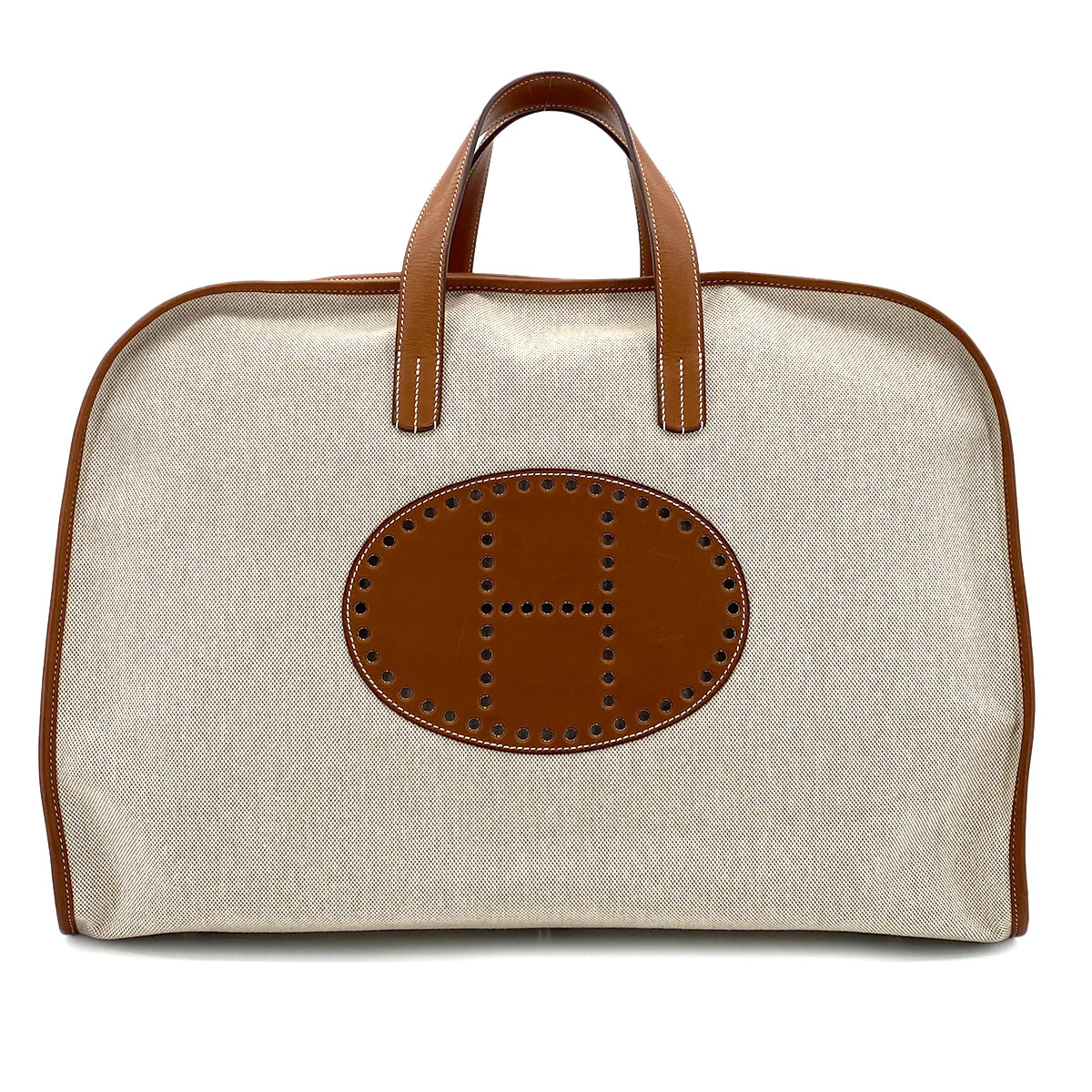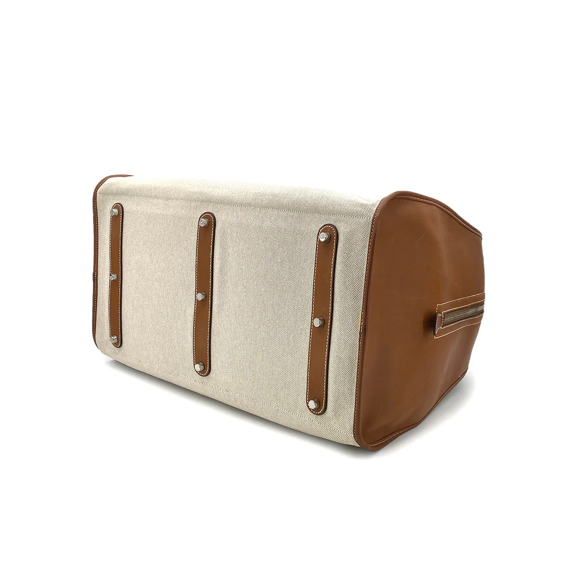 Sac de voyage Feu Dou Hermès en cuir de veau Barenia et toile.