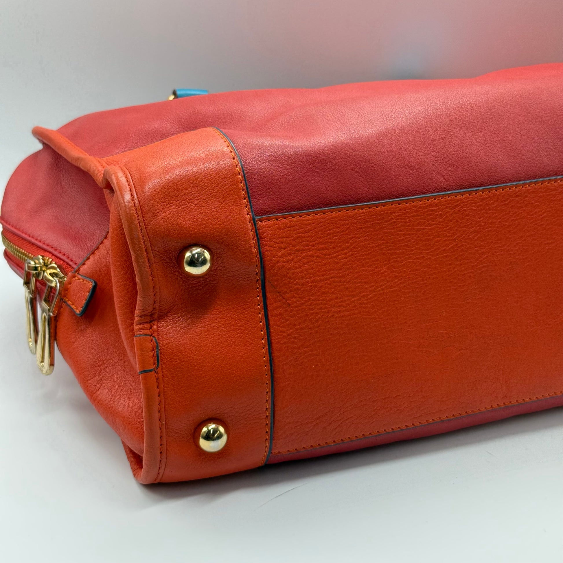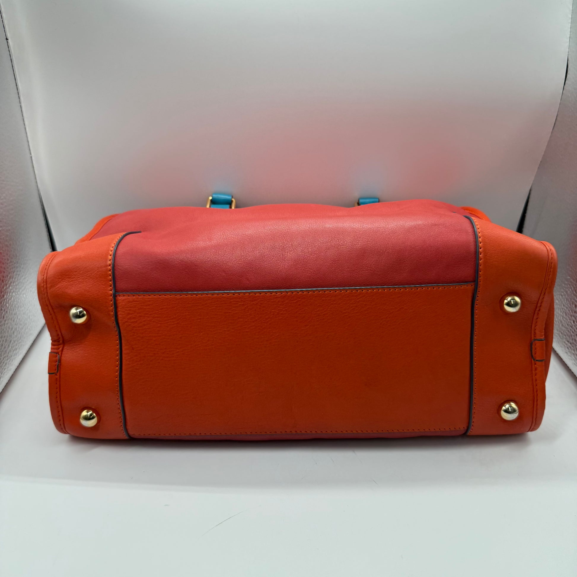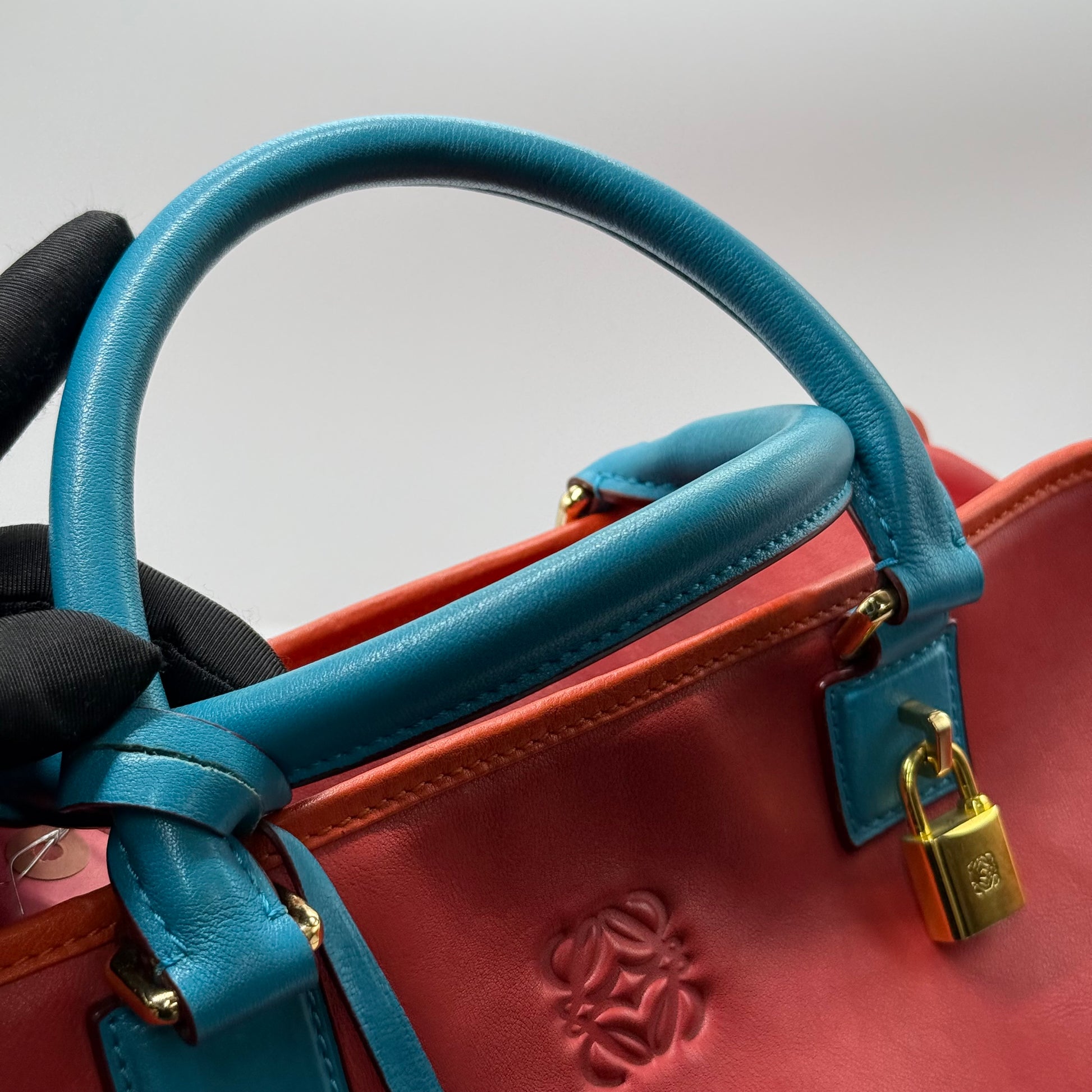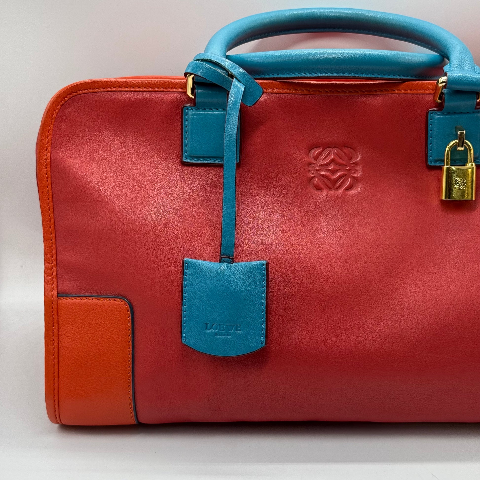 Sac amazona grand modèle en cuir de veau et bijouterie dorée , porté main , avec cadenas.