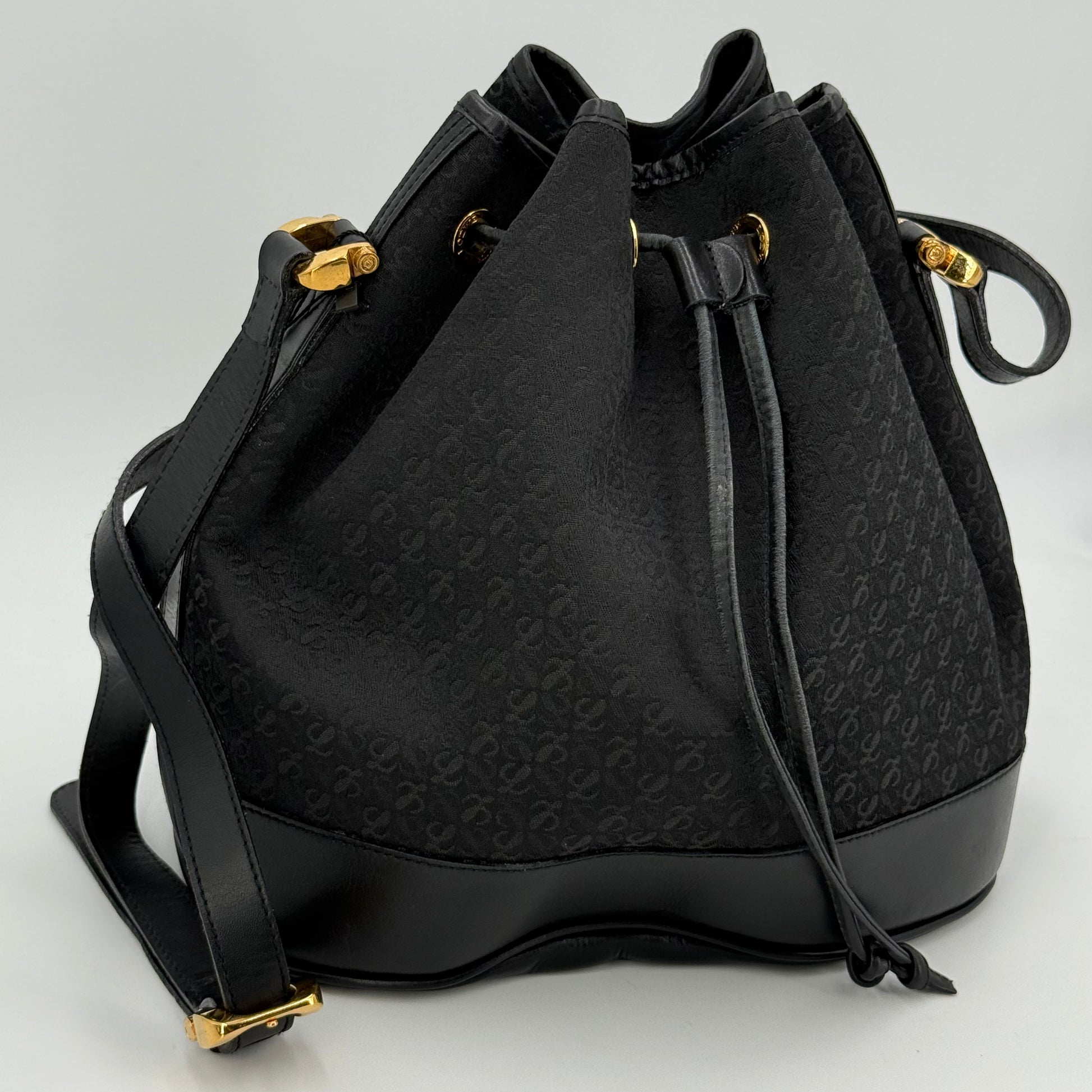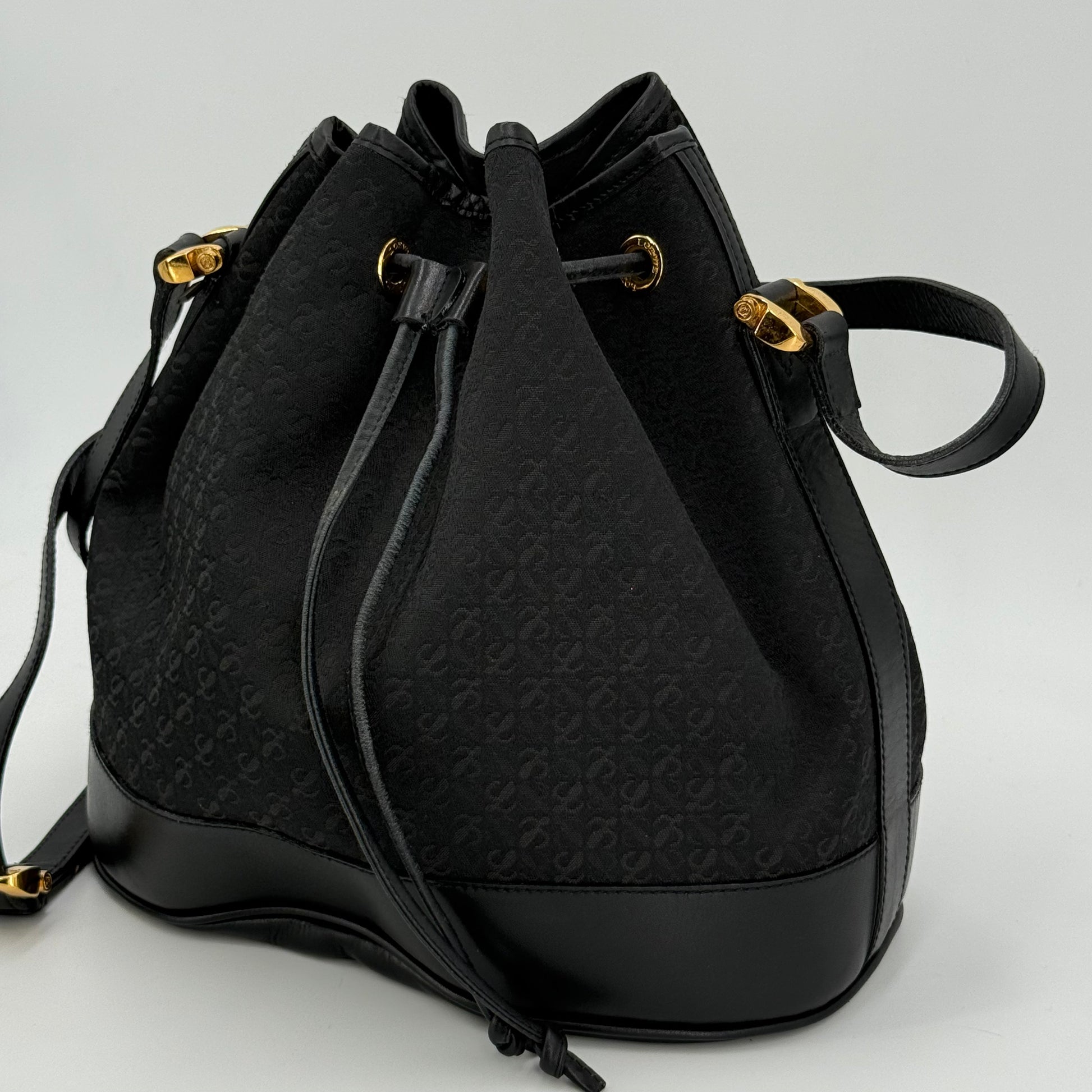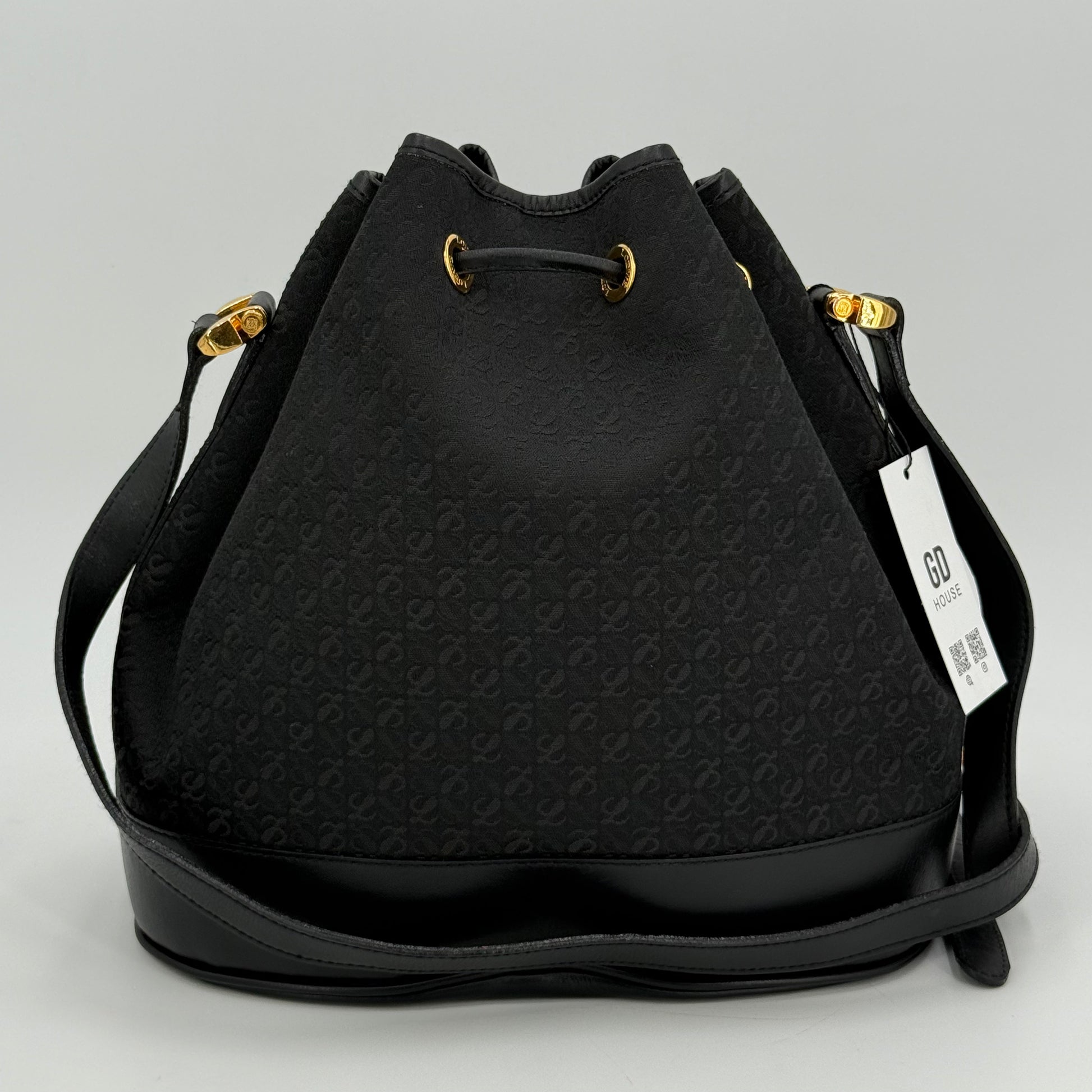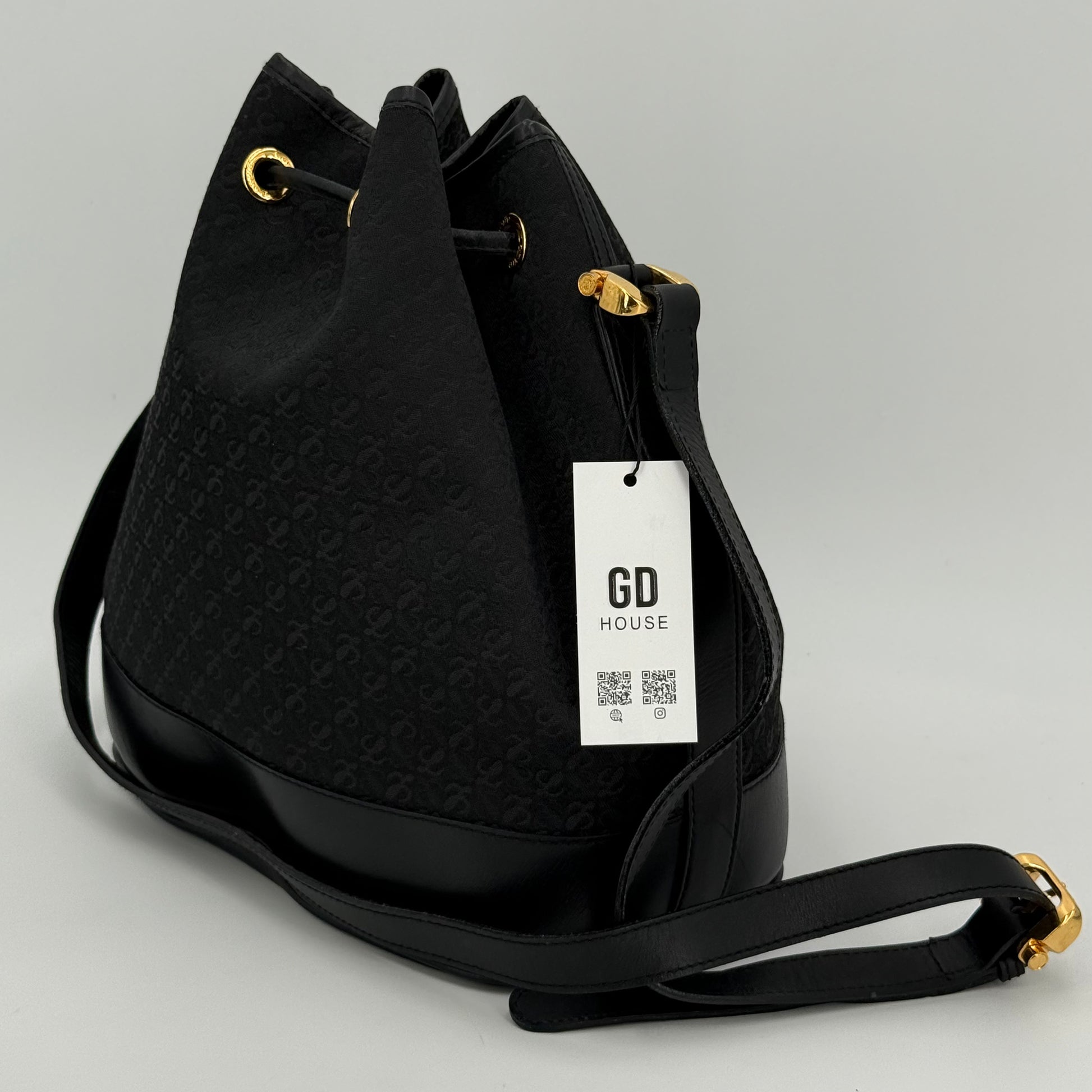 Sac seau en cuir de veau et toile satinée anagramée noire , se porte bandoulière
