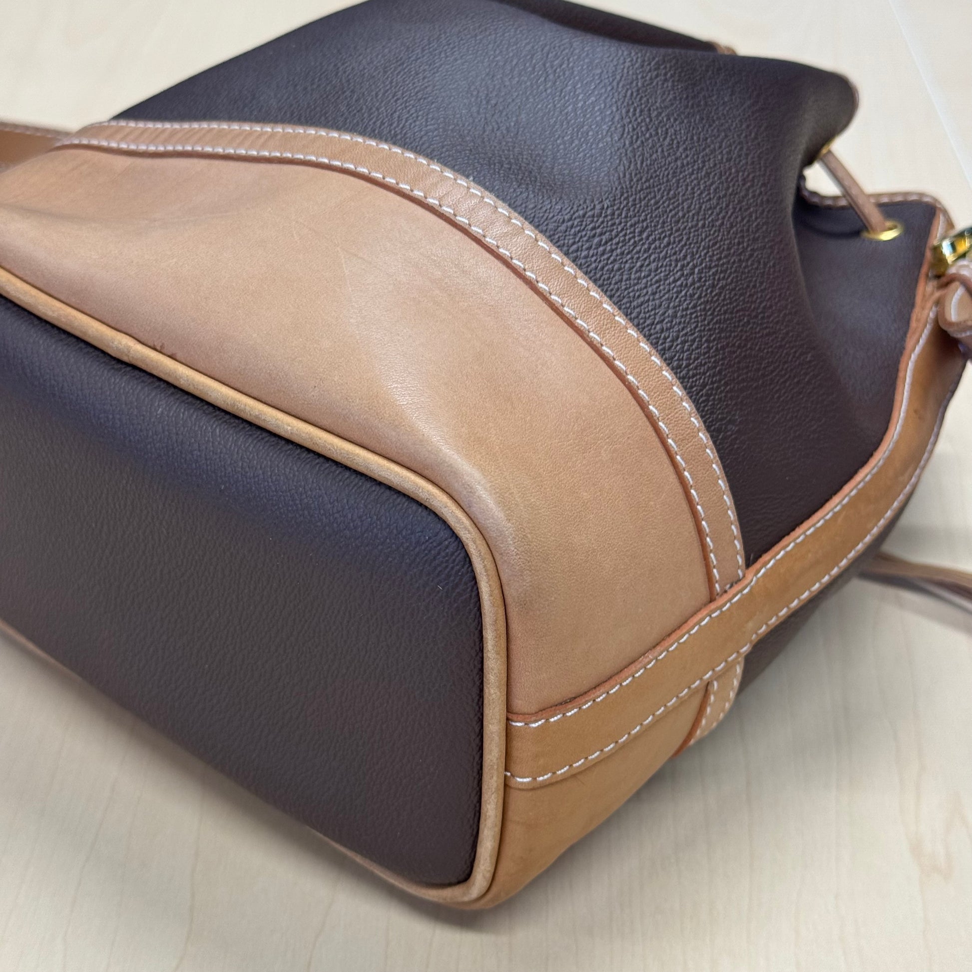 Sas seau en cuir de veau grainé bi matière, porté bandoulière