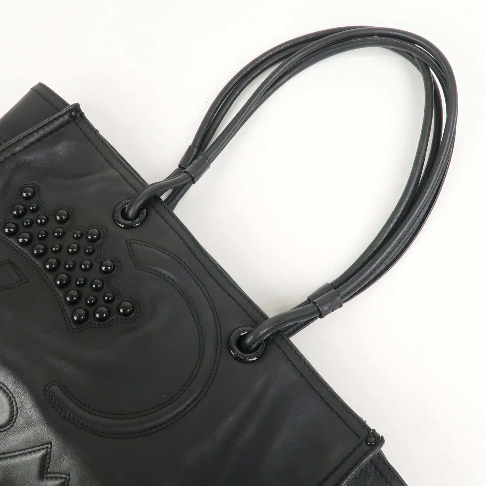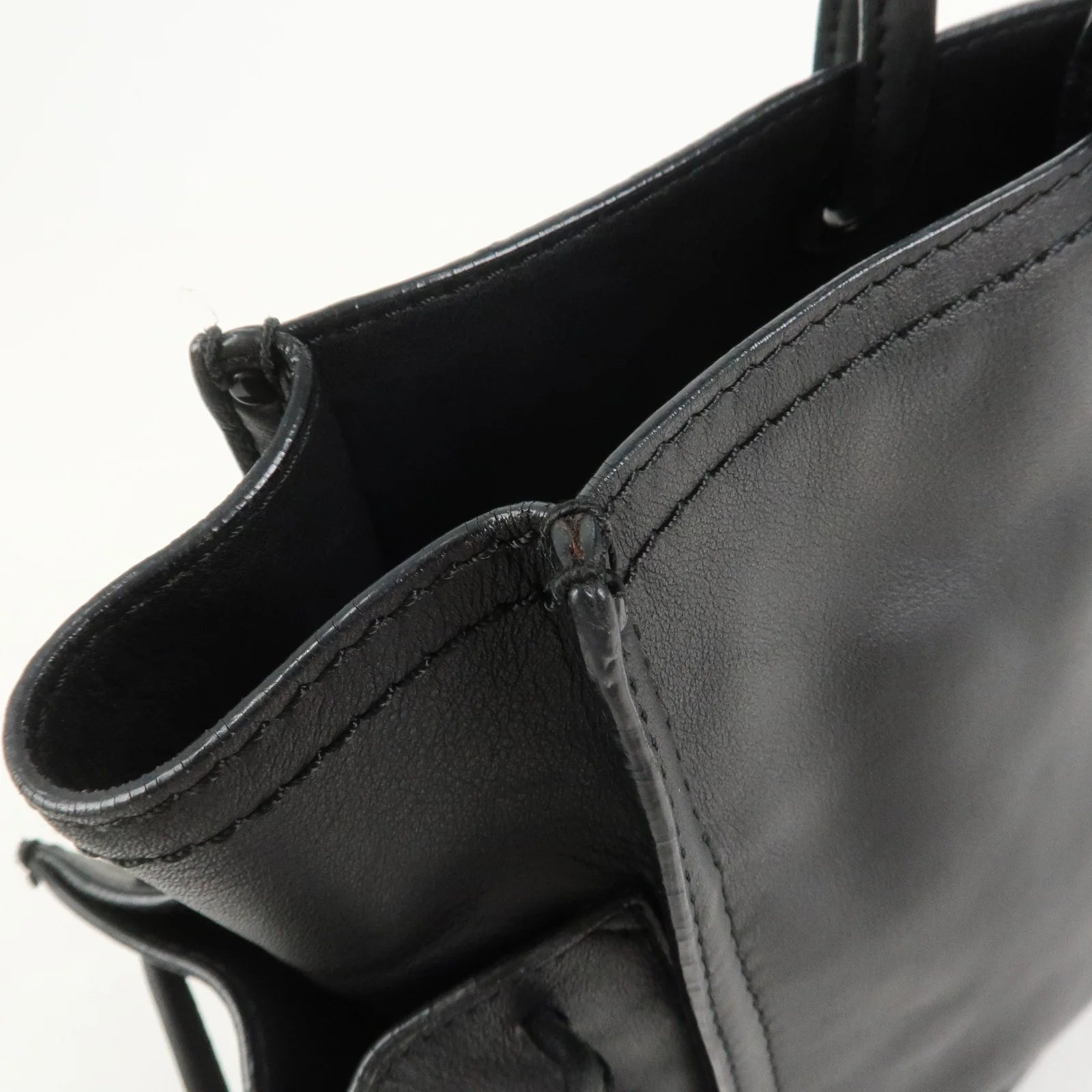 Sac shopping en cuir d’agneau noir , édition limitée, porté épaule .