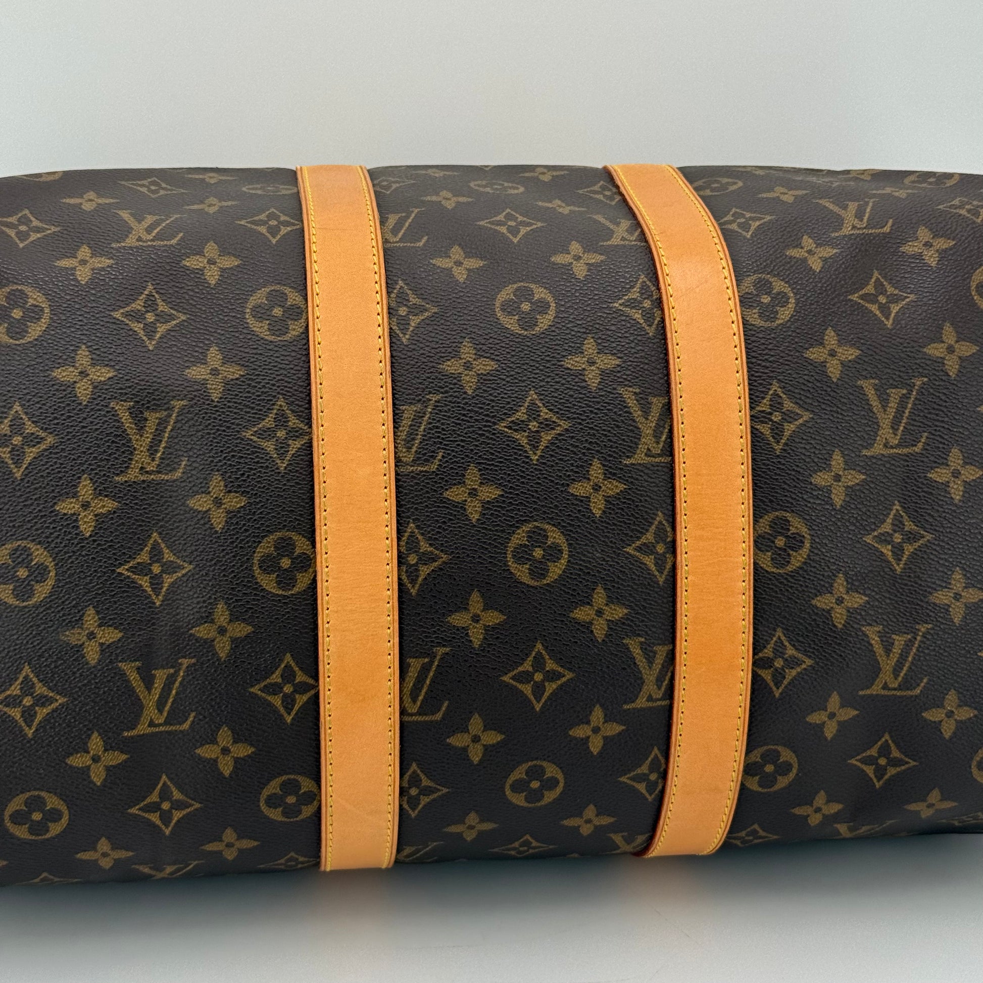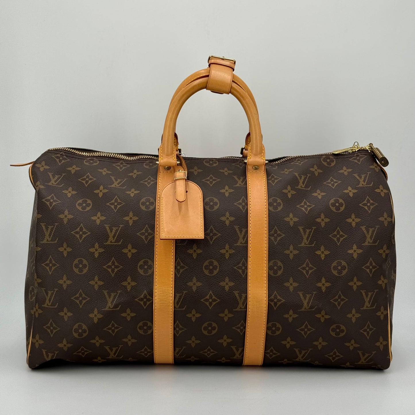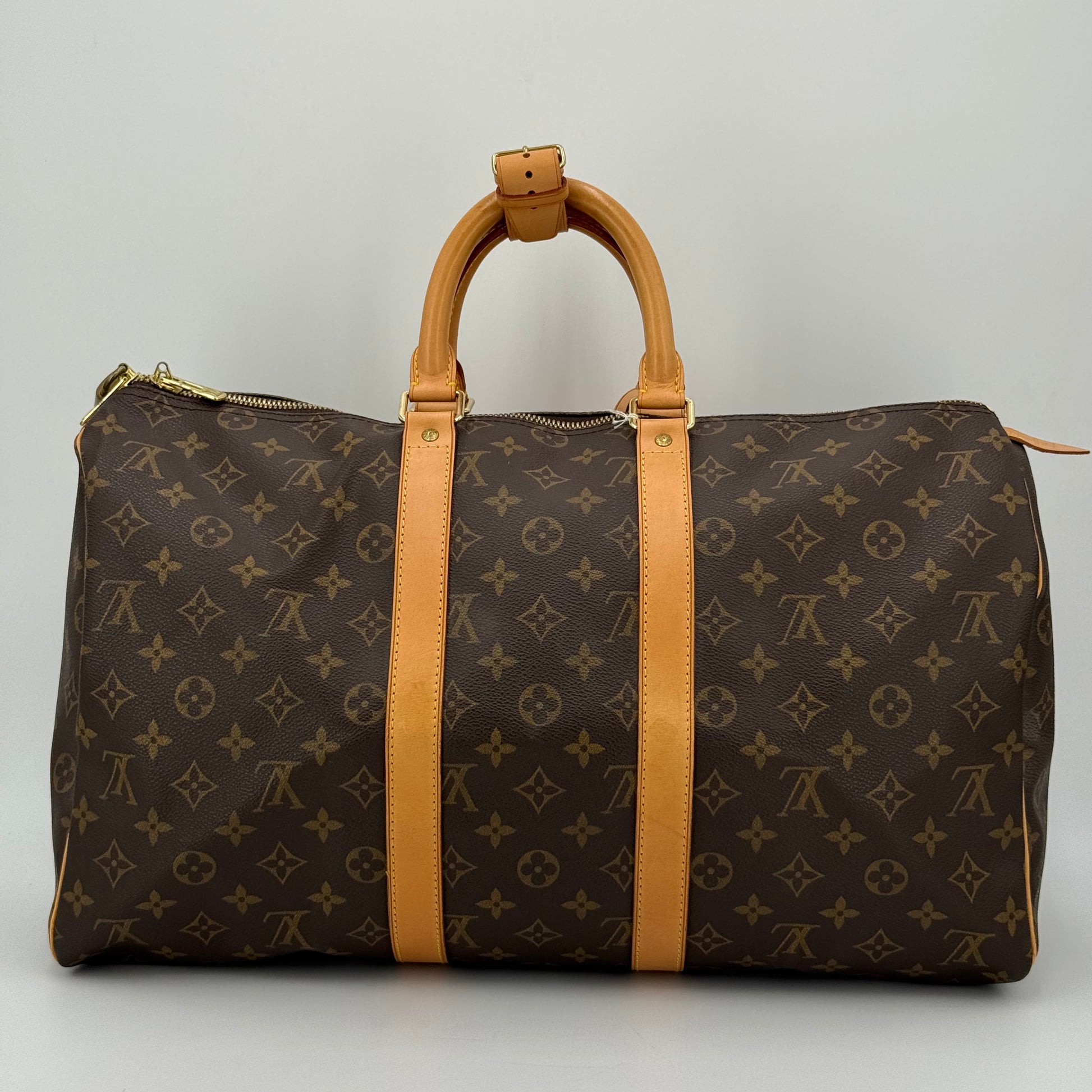 Sac Louis Vuitton Keepall 45 en toile enduite et cuir naturel.