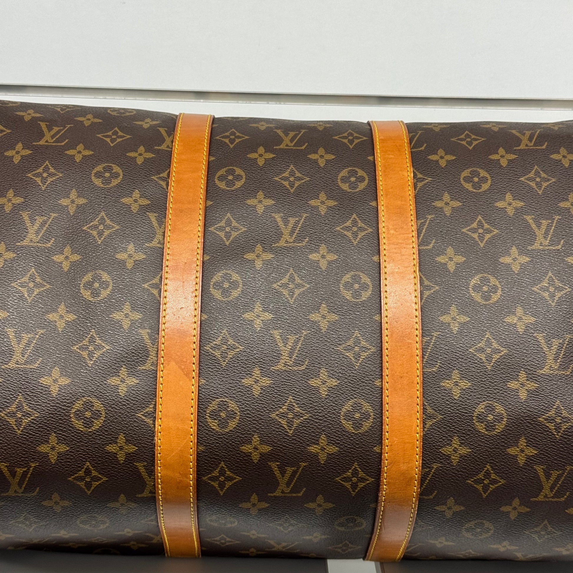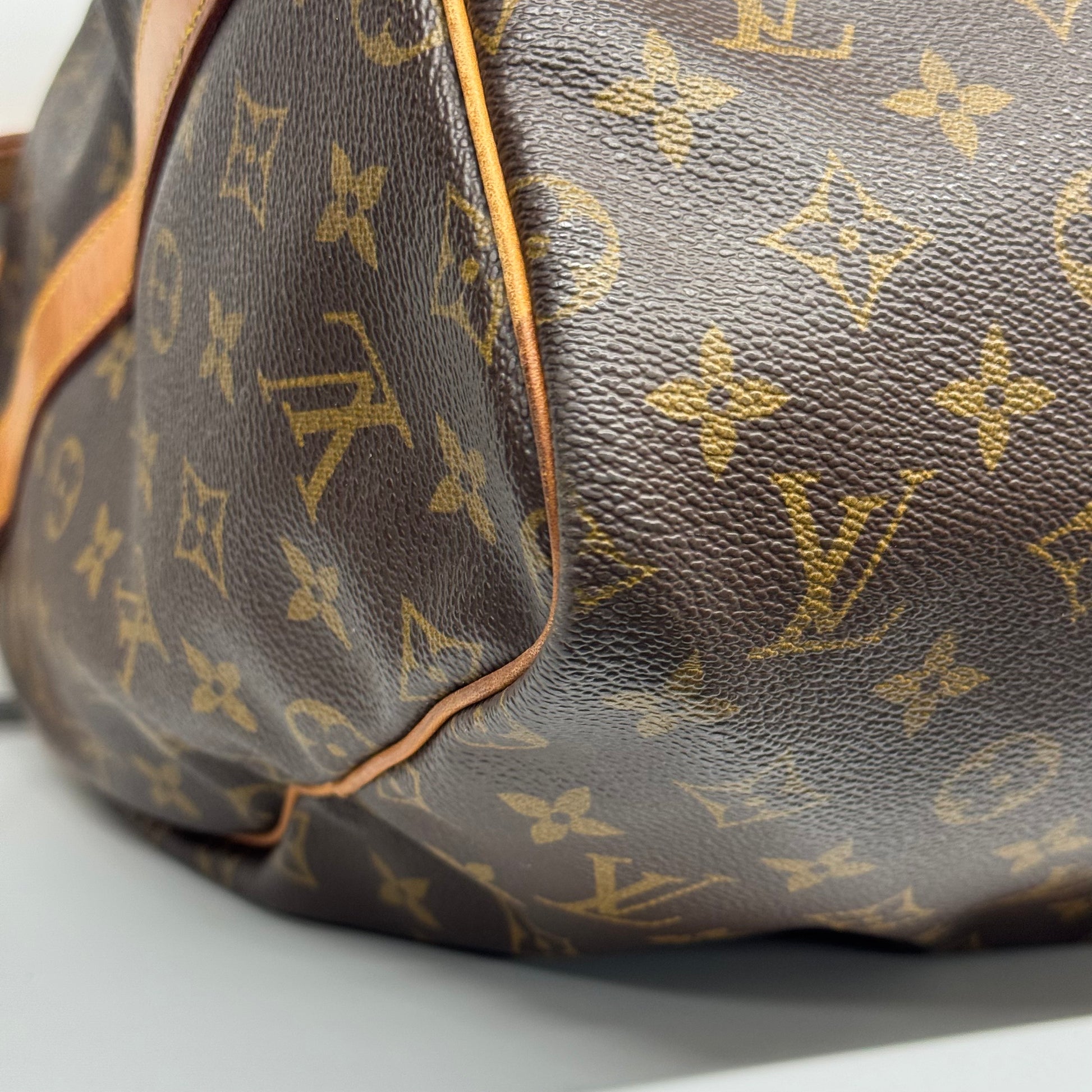 Sac de voyage Louis Vuitton Keepall 55 en toile enduite et cuir naturel.