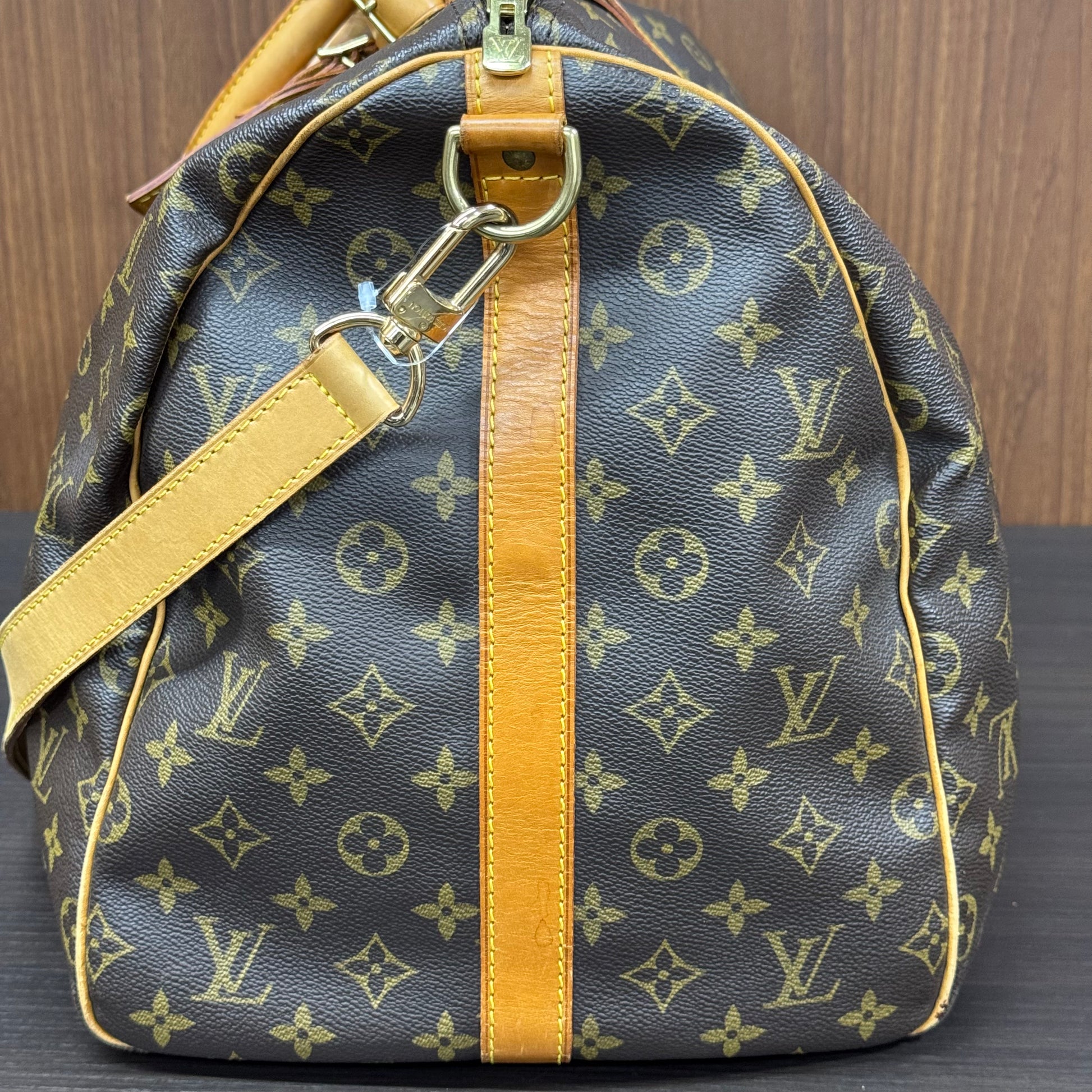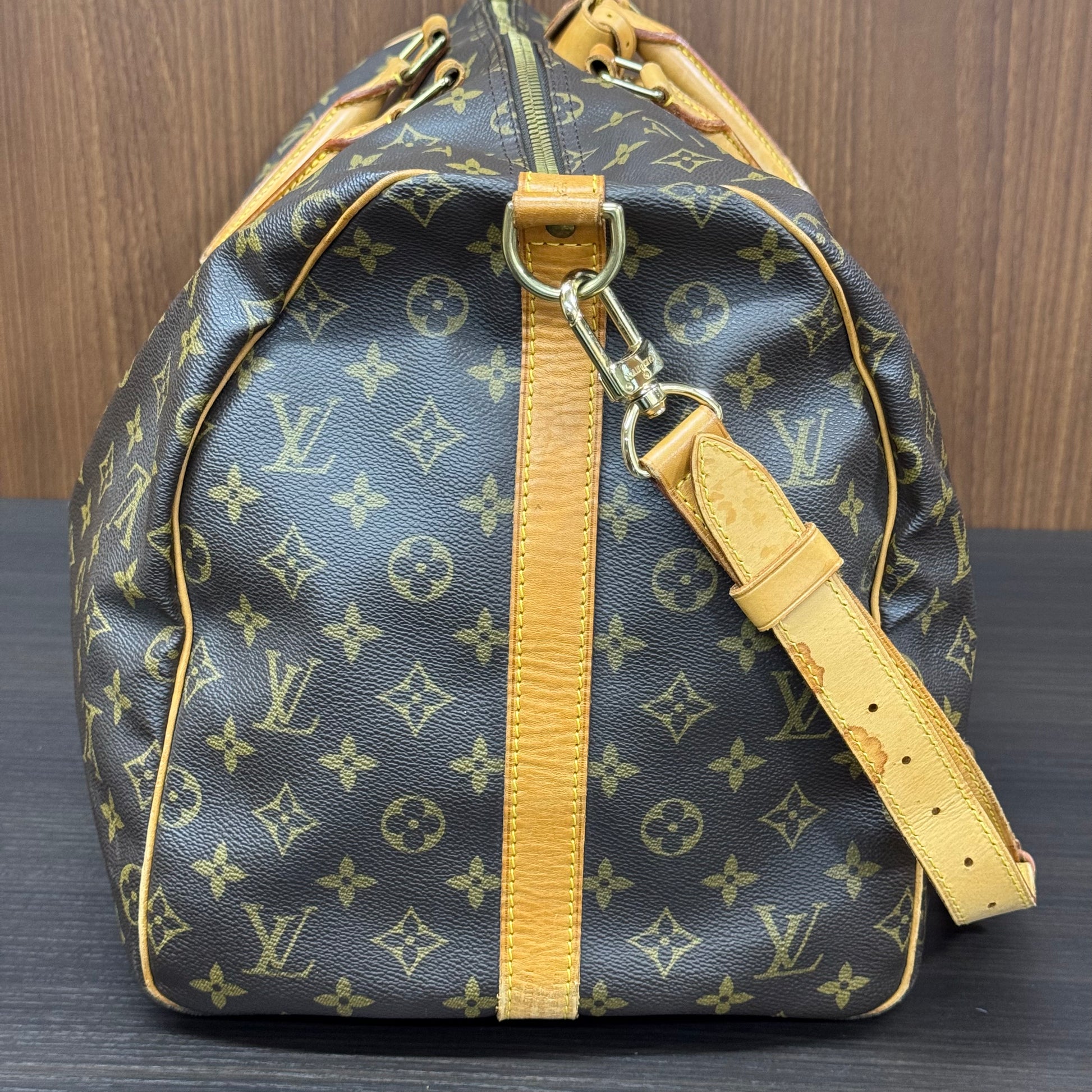 Sac Louis Vuitton Keepall 55 en toile enduite et cuir naturel.