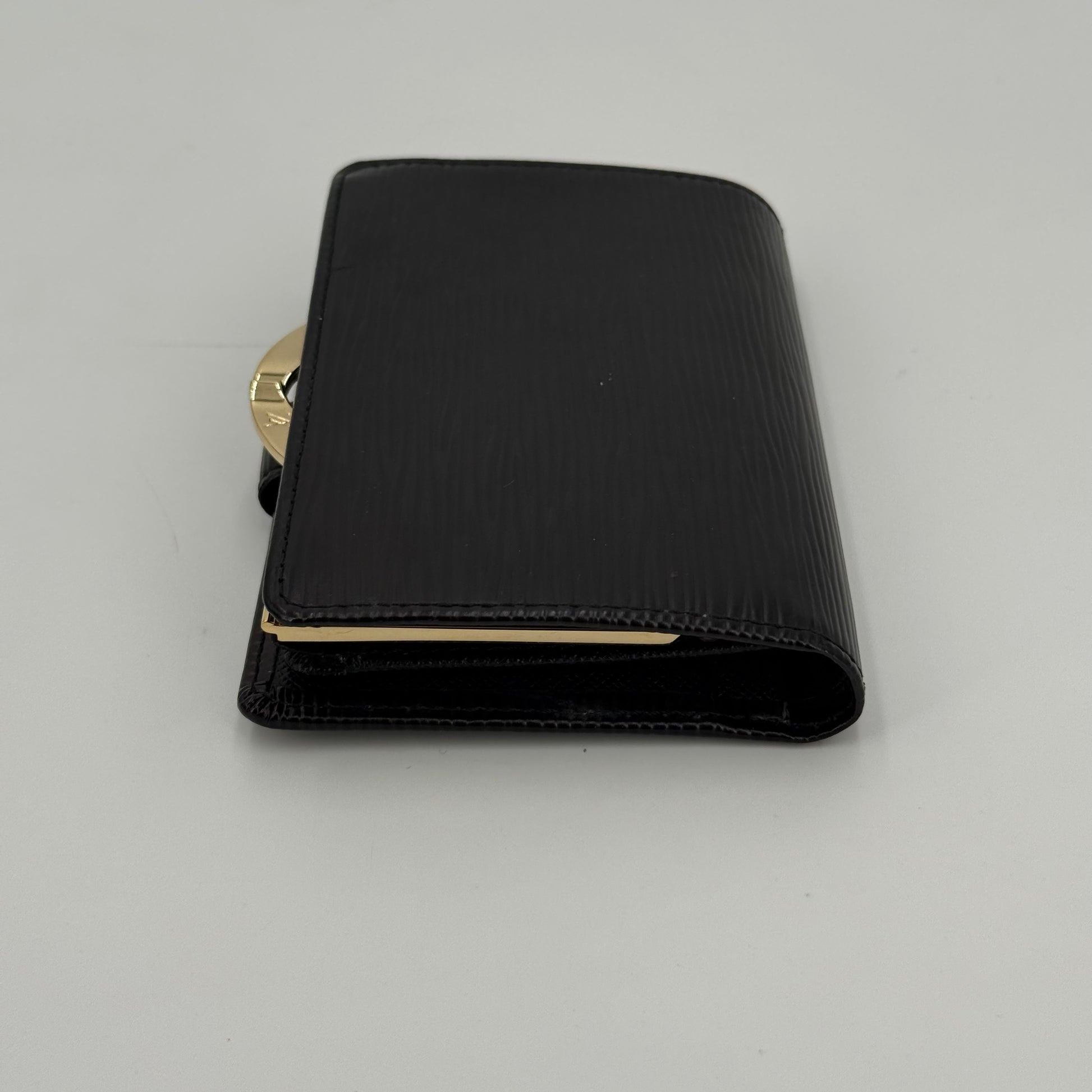 Portefeuille Louis Vuitton compact en cuir de veau épi noir , vendu avec sa boîte