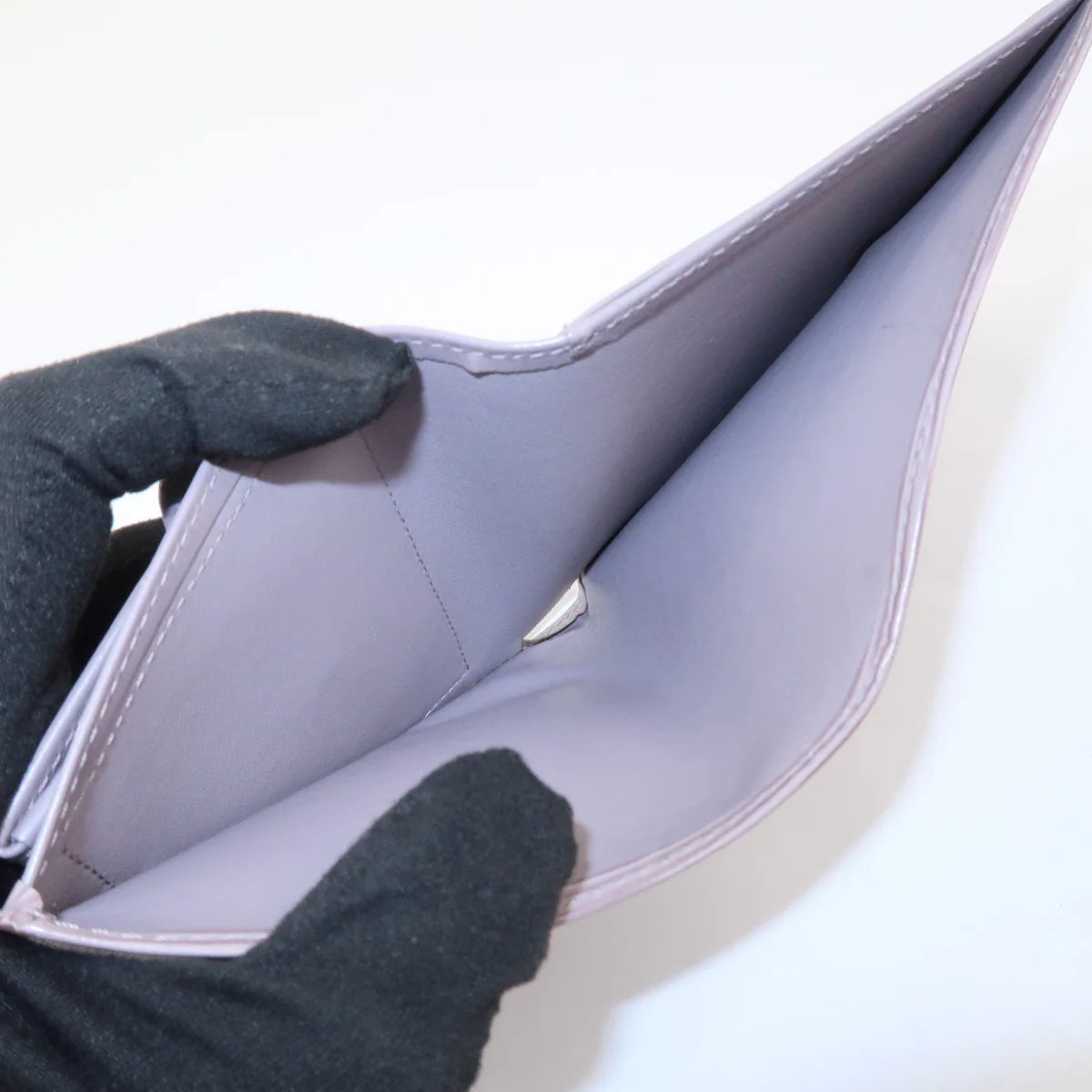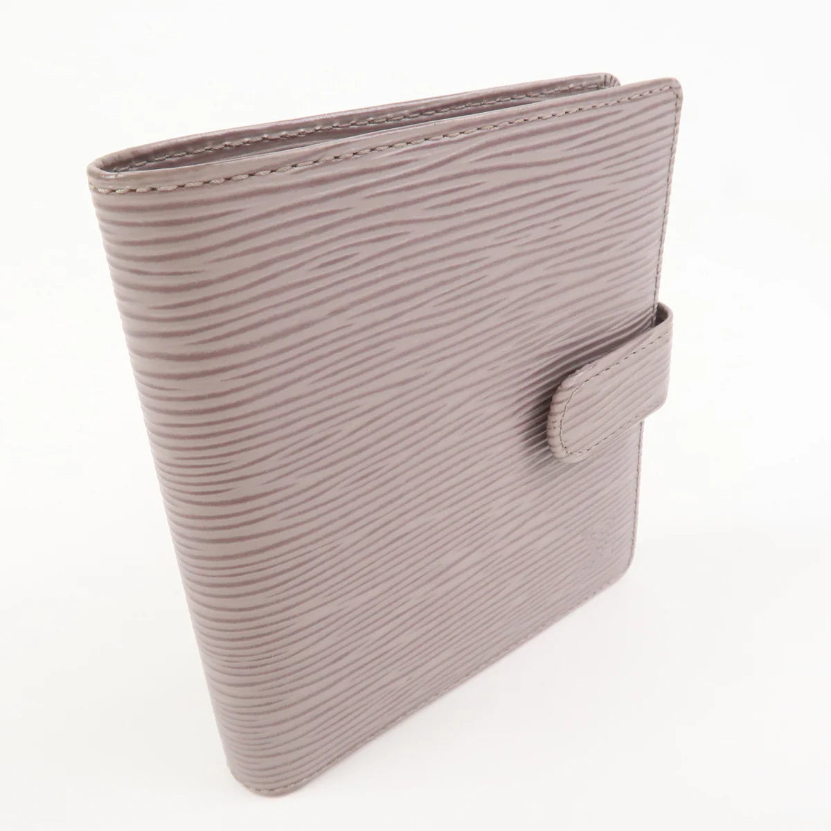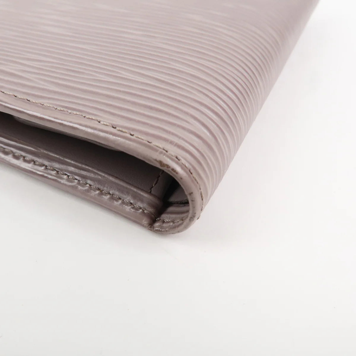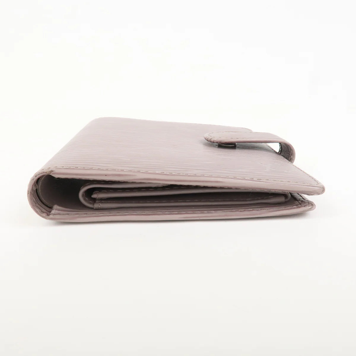 Portefeuille compact en cuir épi couleur lilas, avec boîte