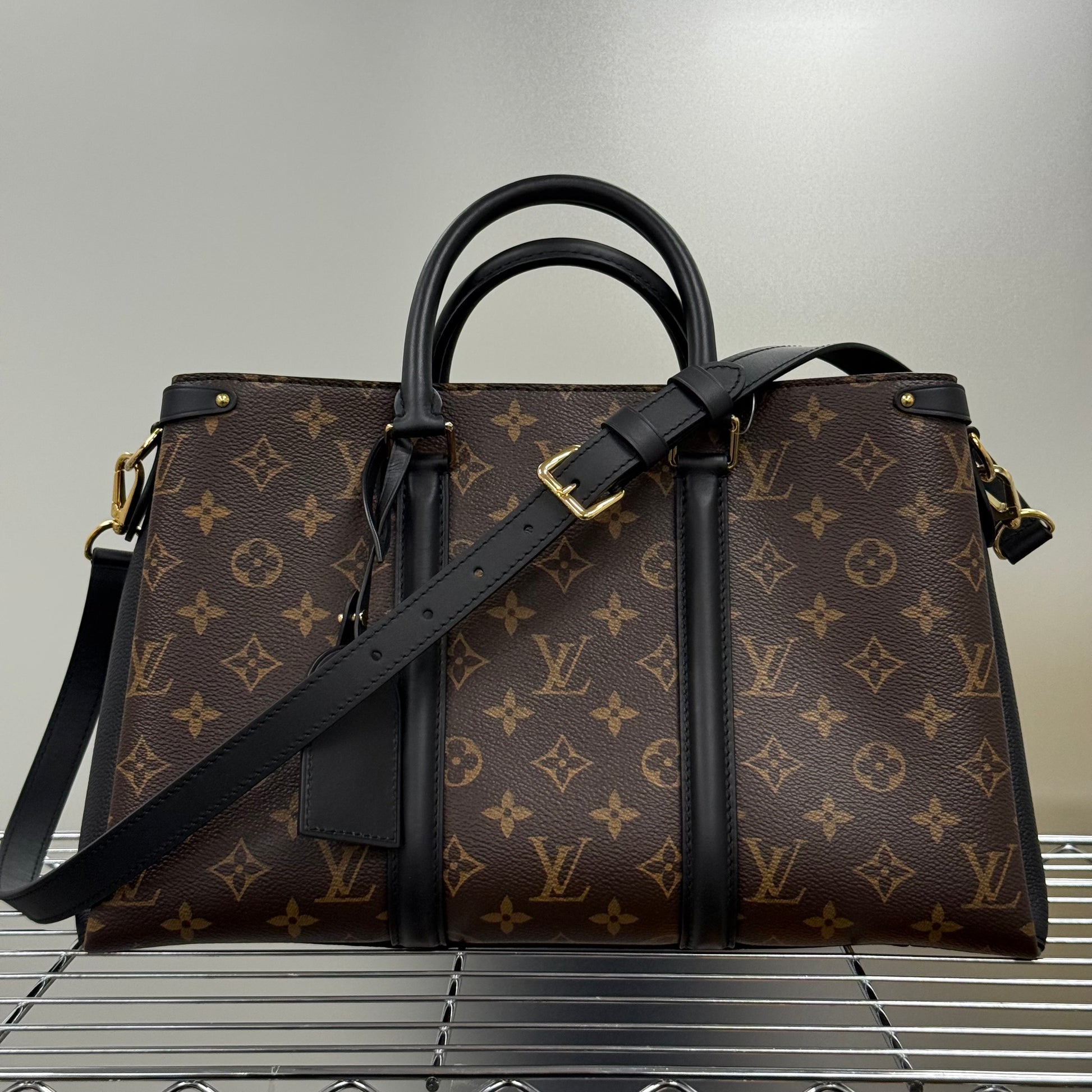 Sac Louis Vuitton Soufflot en toile enduite Monogram, partie en cuir de veau noir et bijouterie doré