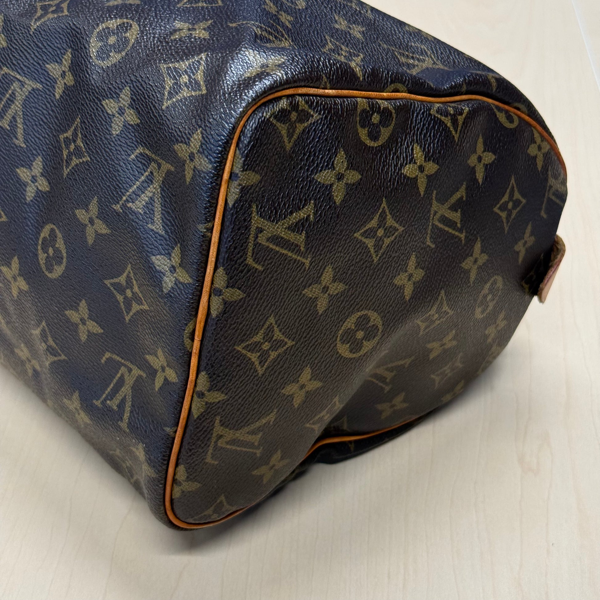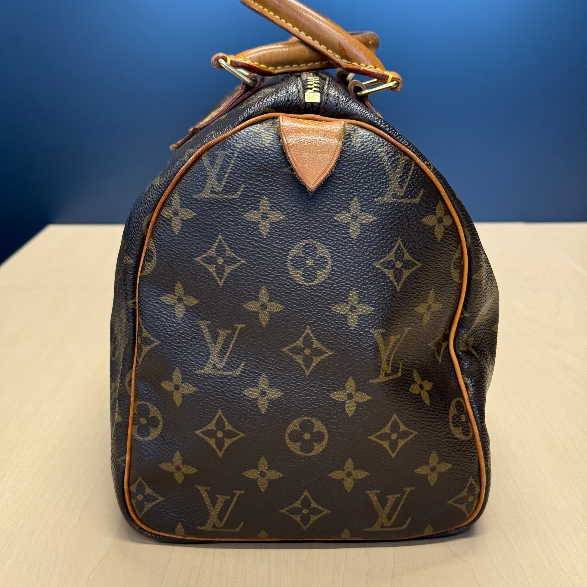 Sac Speedy 30 Louis Vuitton en toile enduite et cuir naturel.
