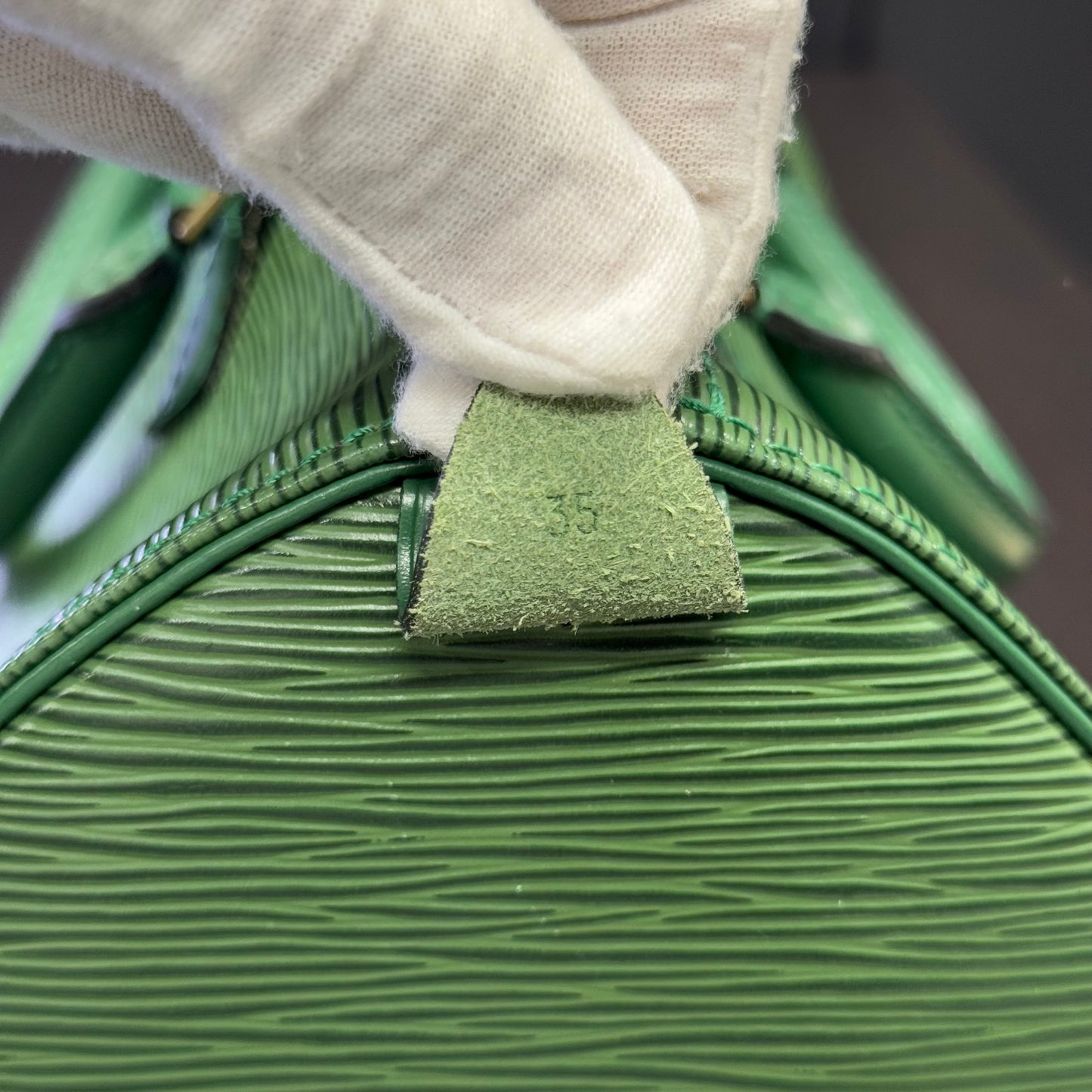 Sac Louis Vuitton Speedy 35 en cuir épi vert.