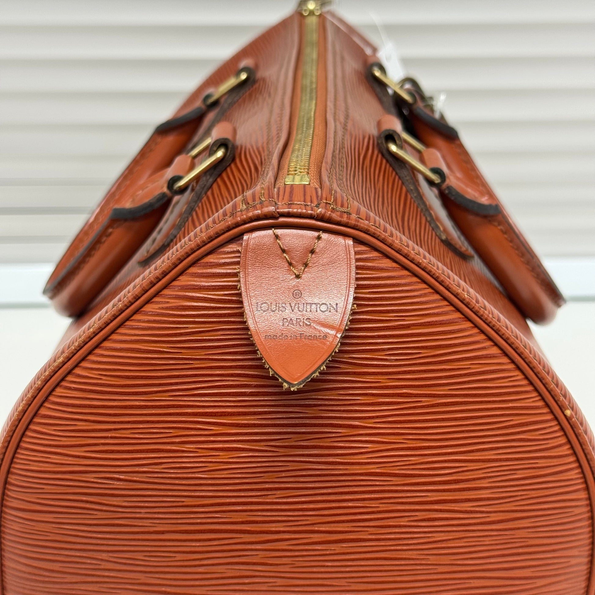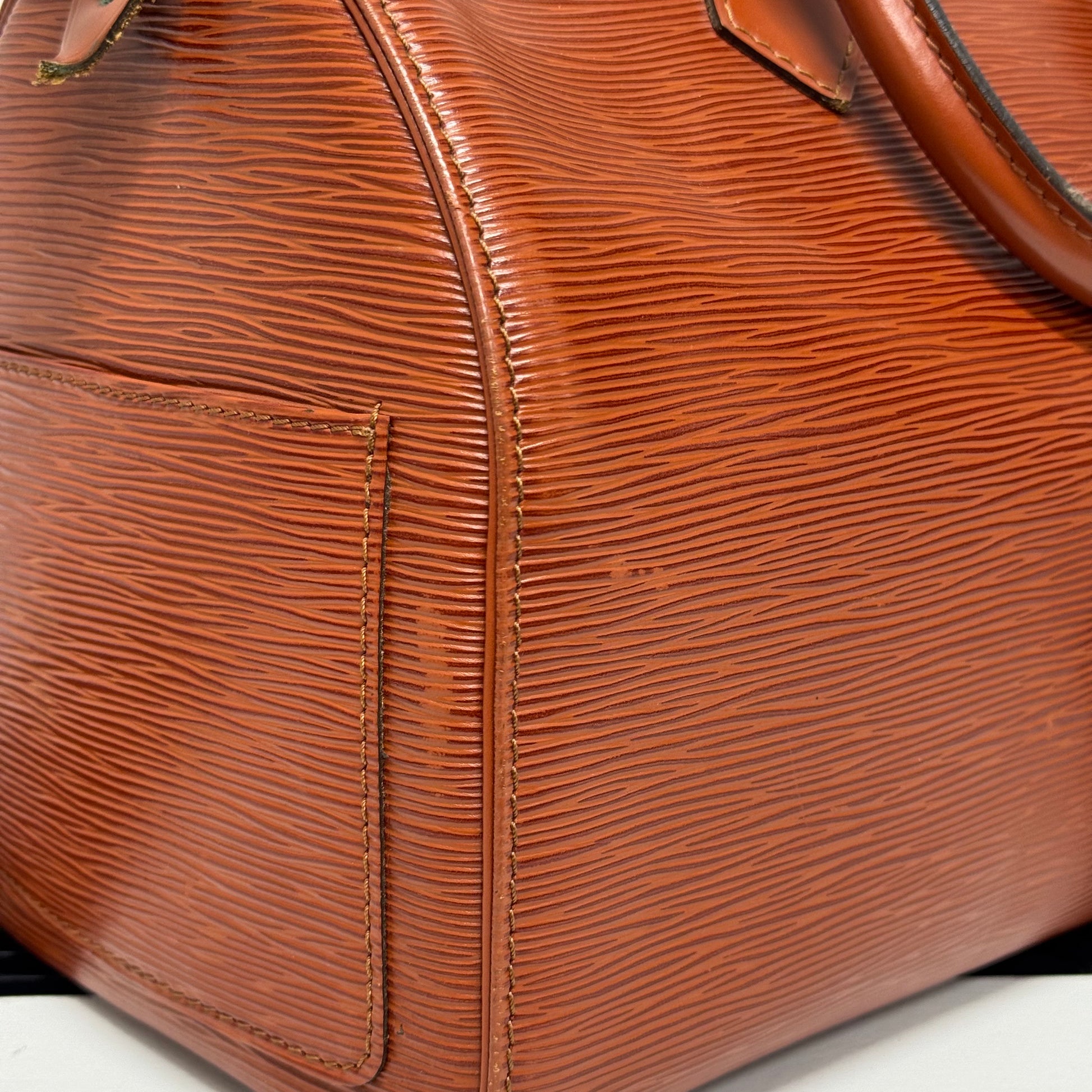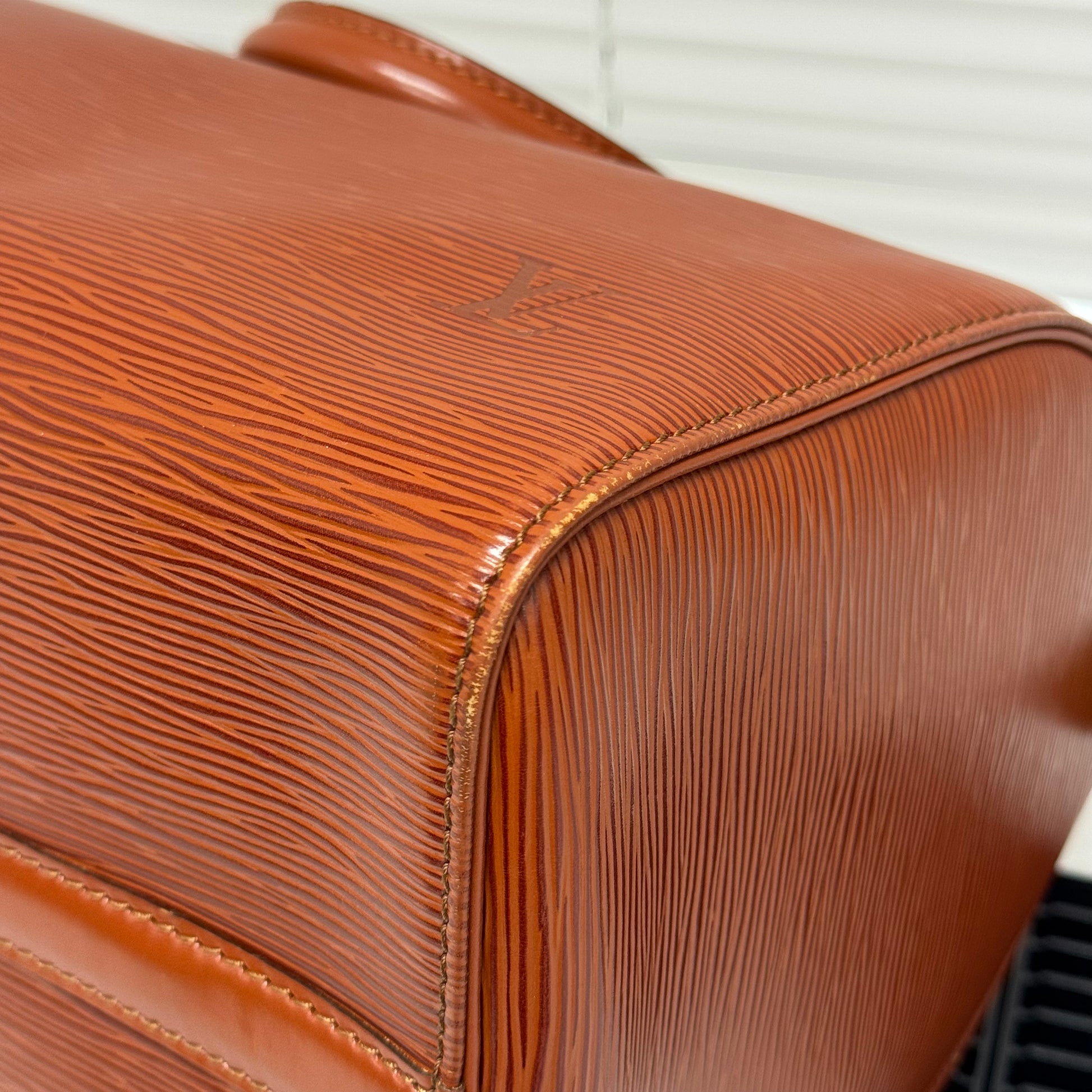 Sac Louis Vuitton Speedy 30 en cuir épi cognac.