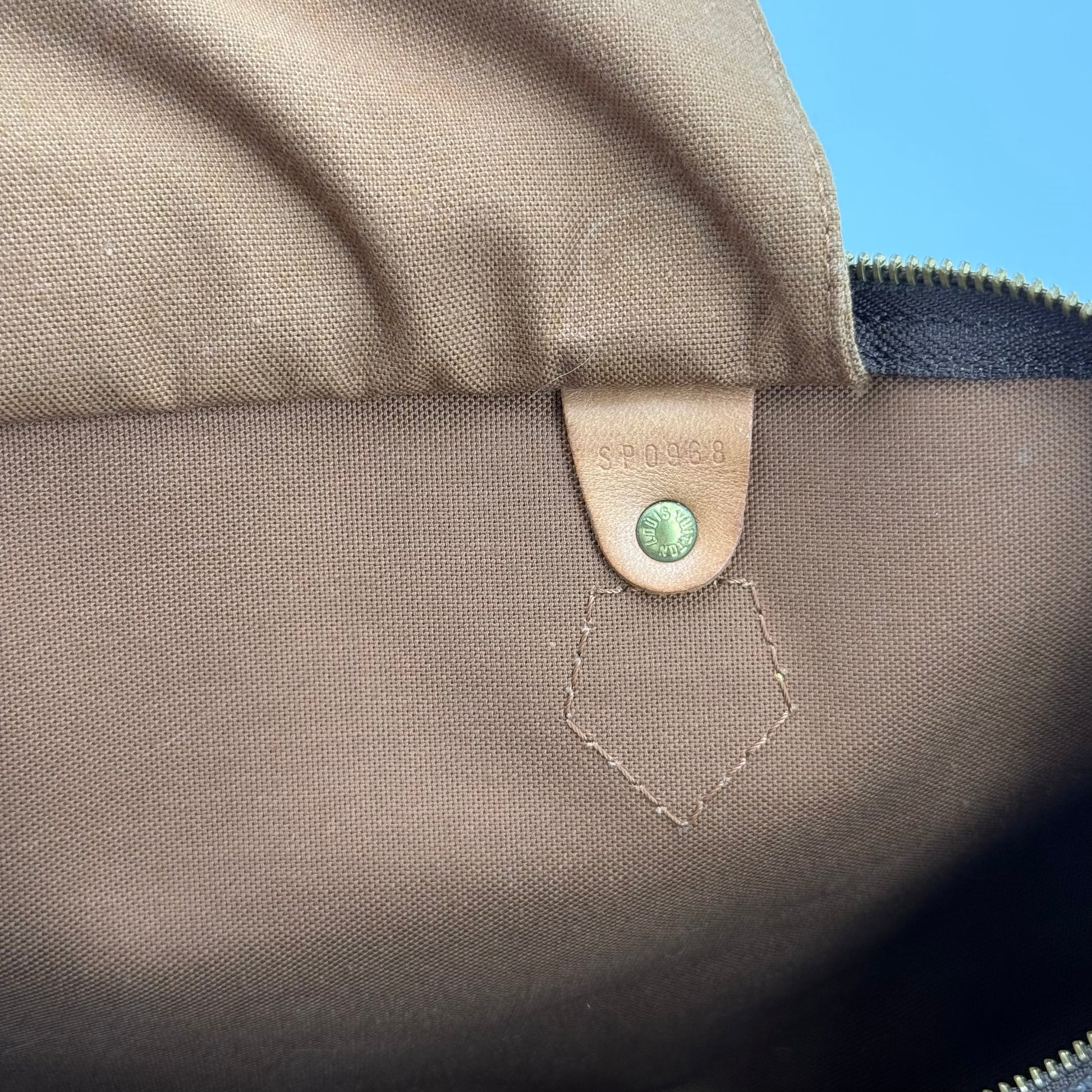Sac Louis Vuitton Speedy 35 en toile enduite et cuir naturel.