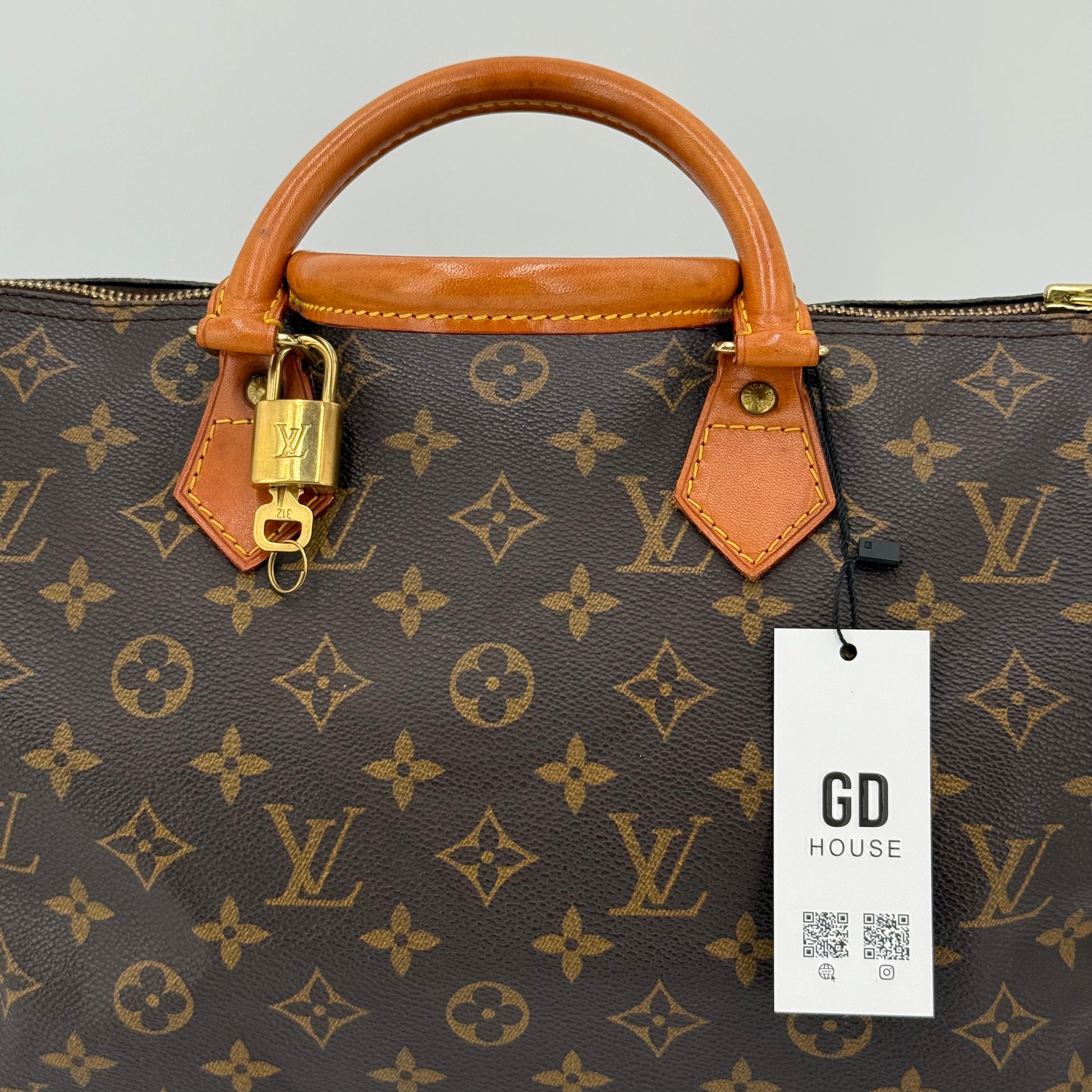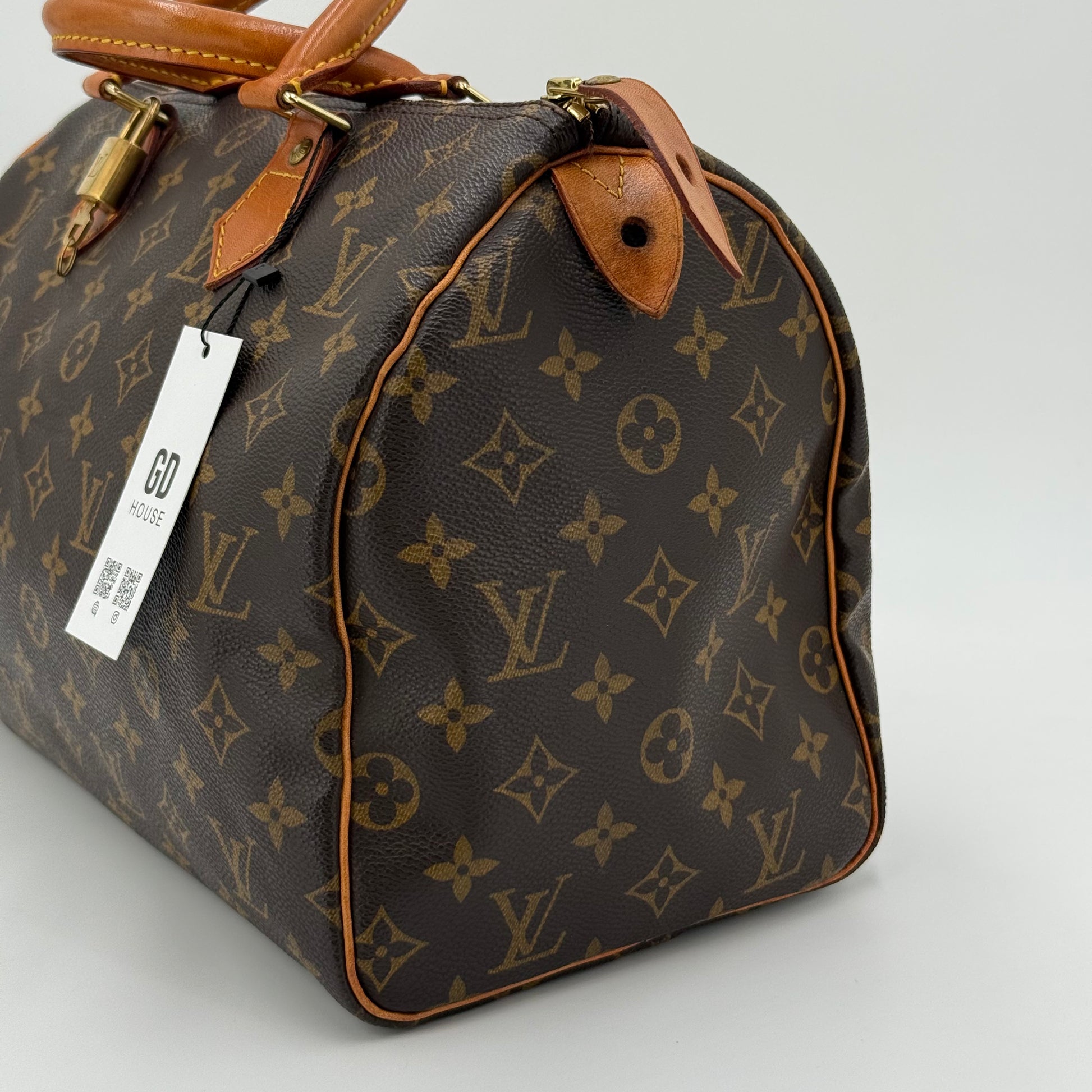 Sac Louis Vuitton Speedy 30 en toile enduite et cuir naturel.