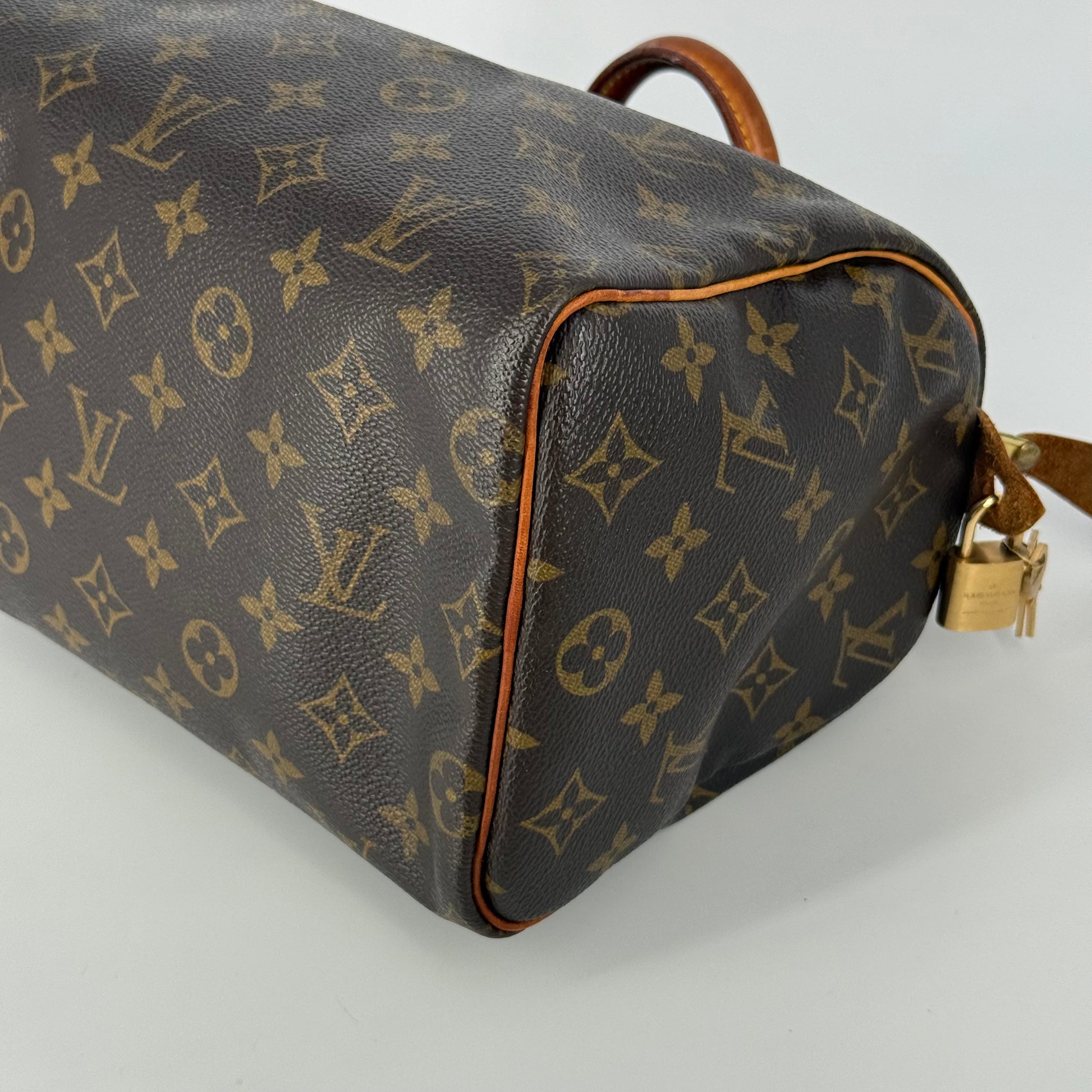 Sac Louis Vuitton Speedy 25 en toile enduite et cuir naturel.