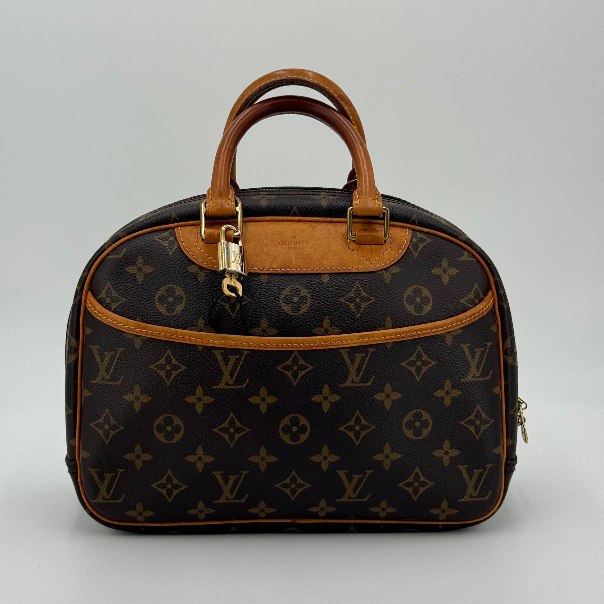 Sac Louis Vuitton Trouville en toile enduite et cuir naturel.