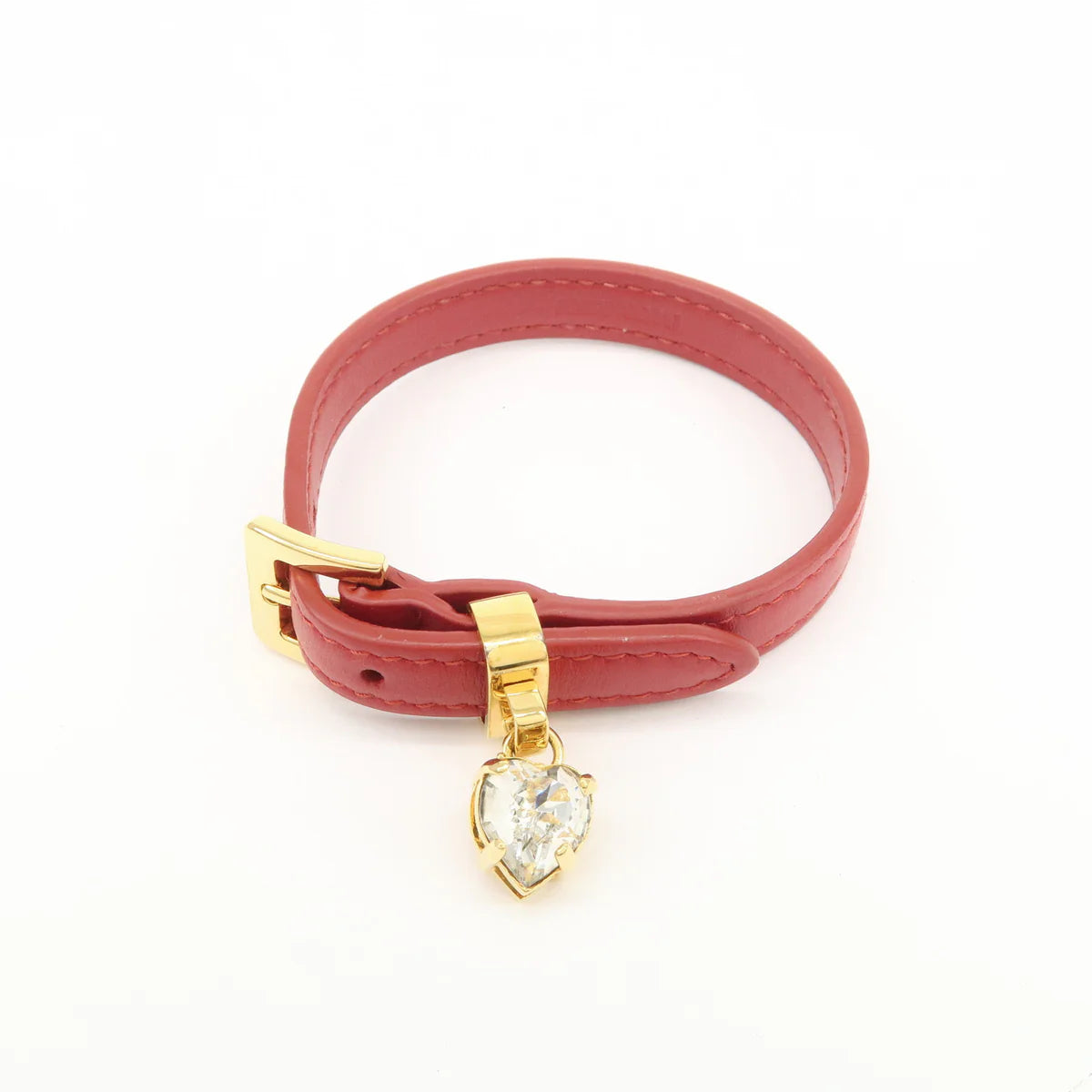 Bracelet en cuir avec pendentif cœur en cristal , full set .