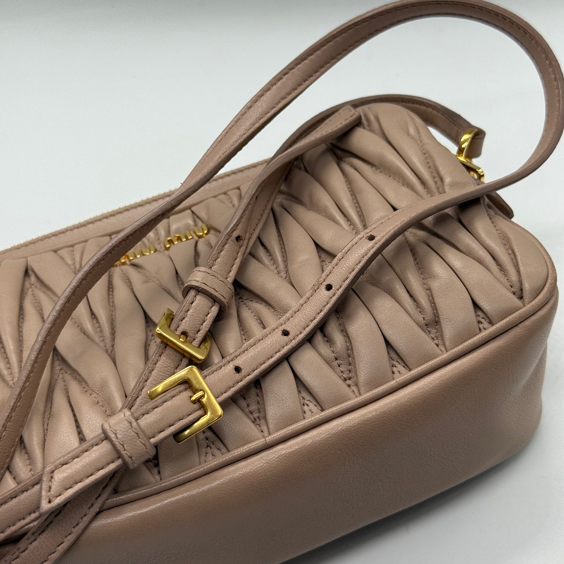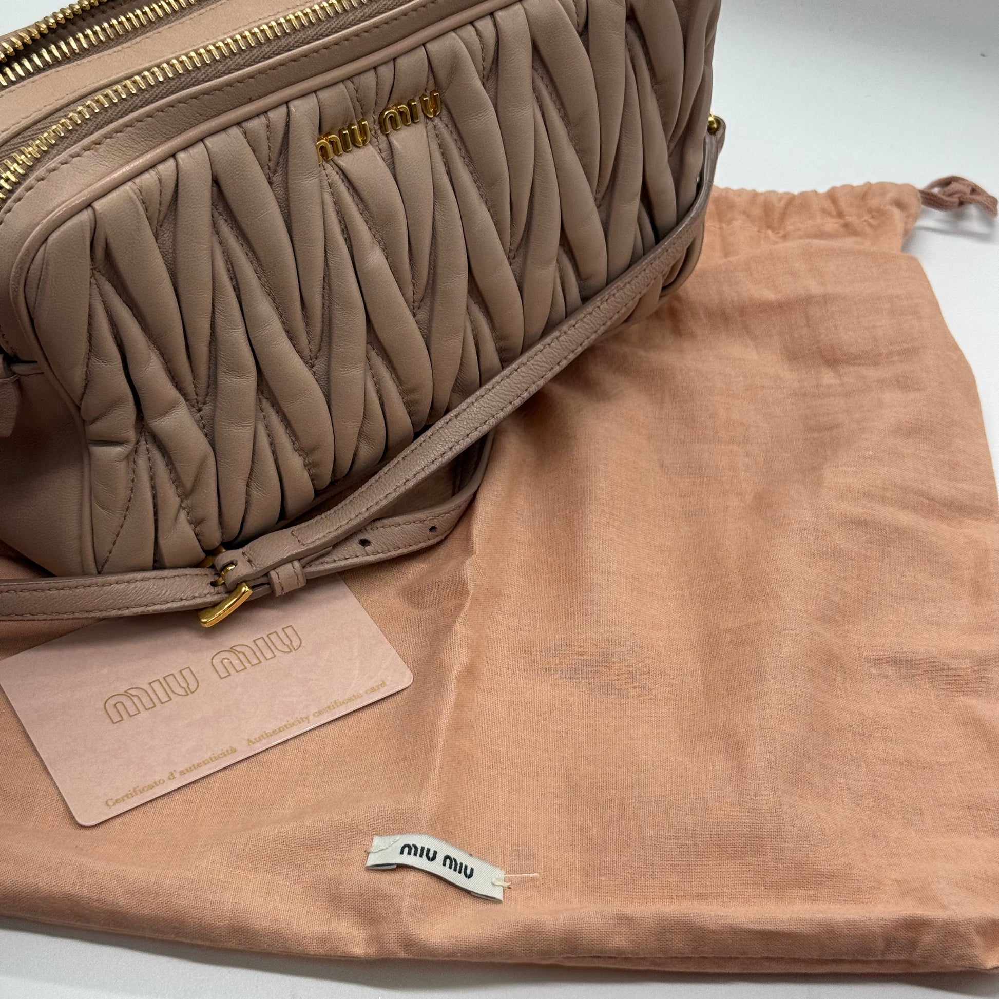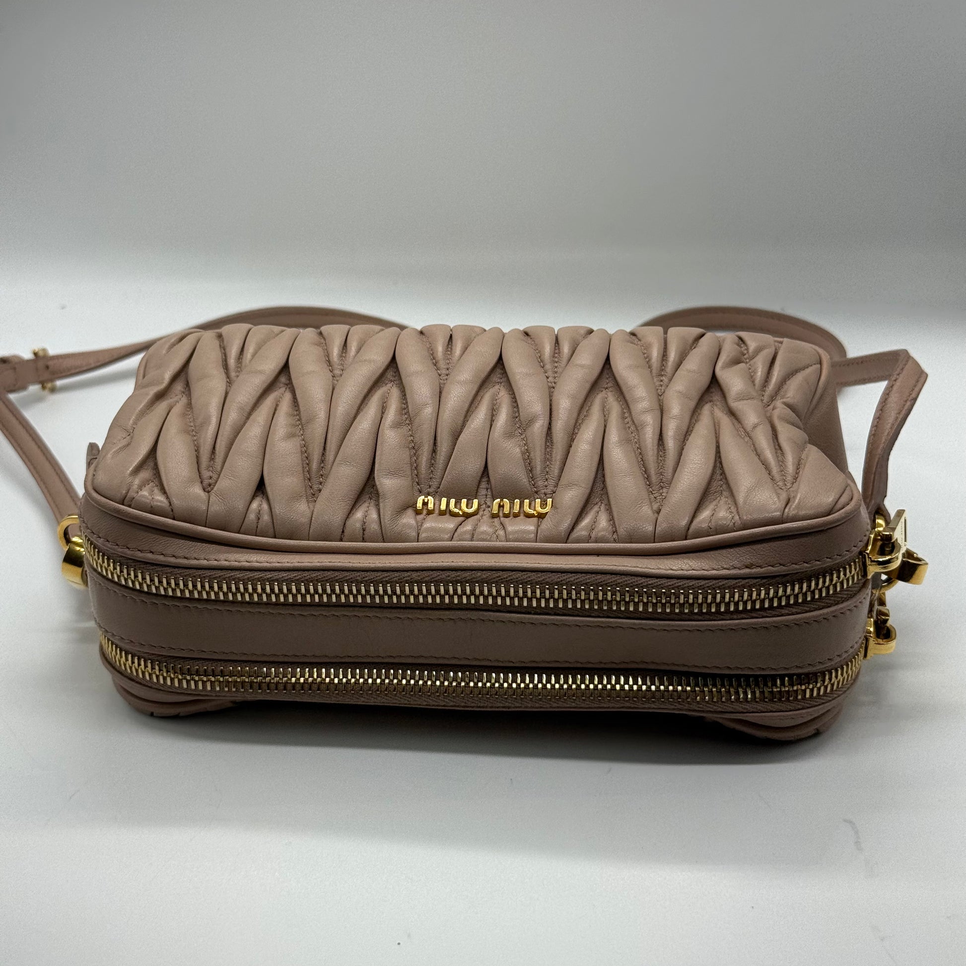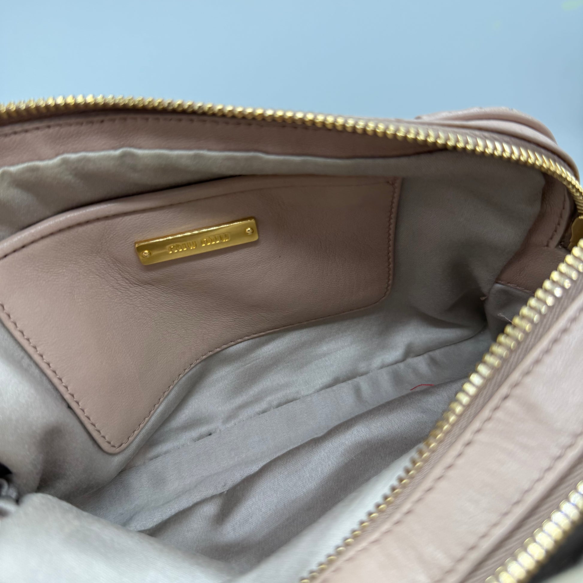 Petit sac Miu Miu en cuir de veau plissé rose.
