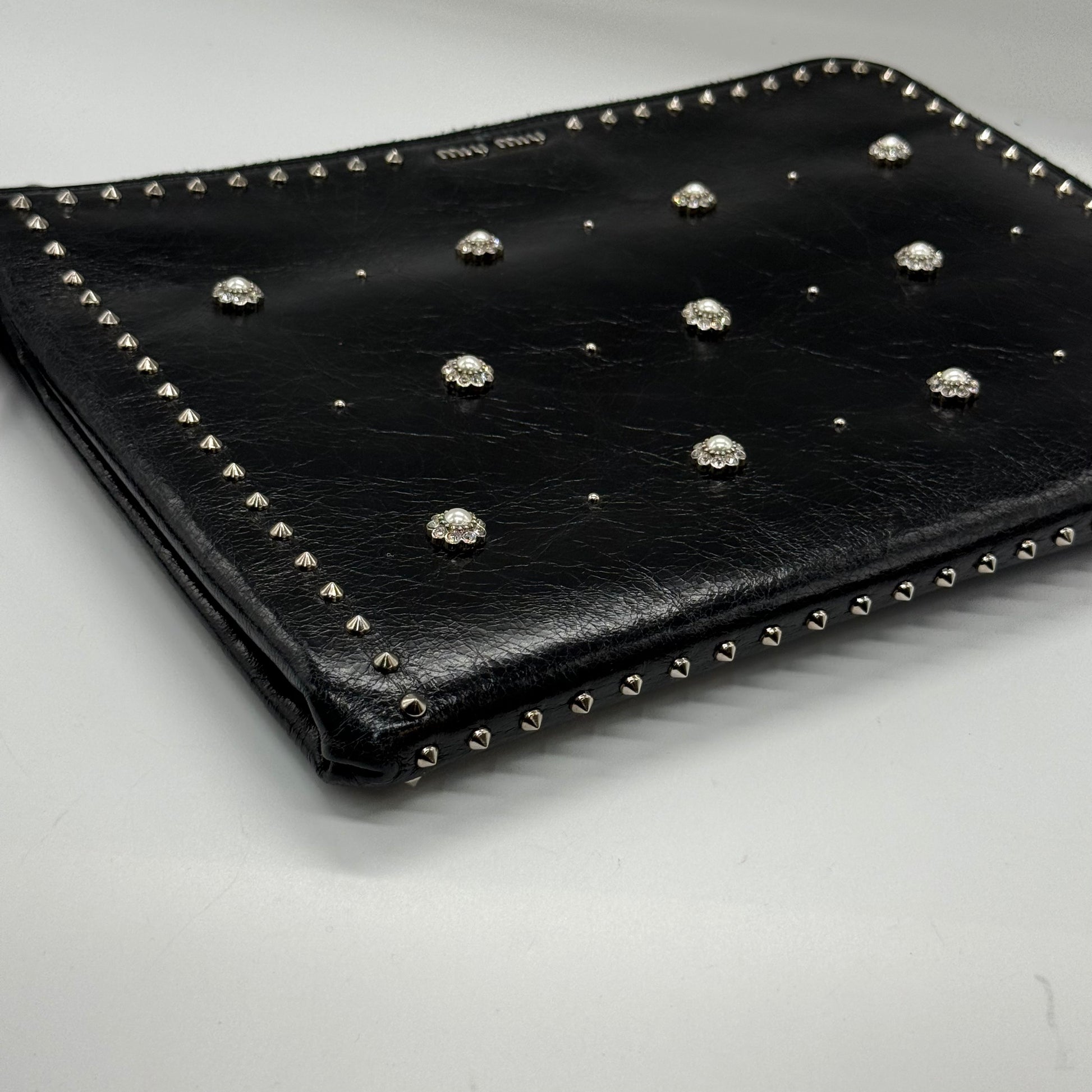 Pochette Miu Miu en cuir de veau vieilli , bijouterie argent .