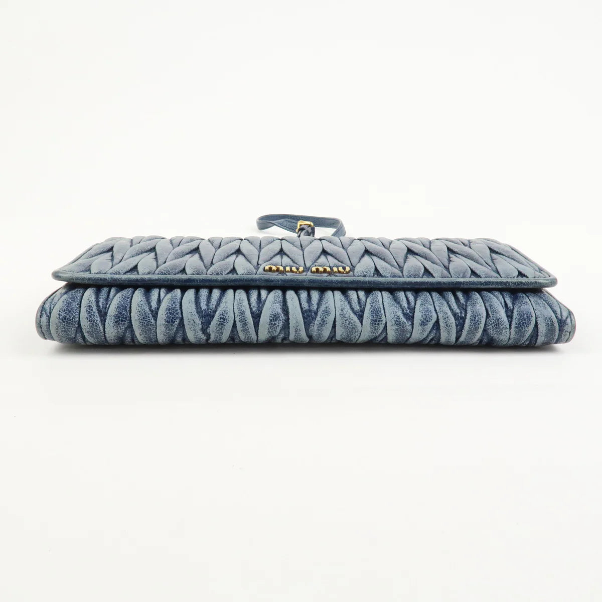 Wallet on Chain Miu Miu en cuir de veau vieilli  plissé , bijouterie dorée