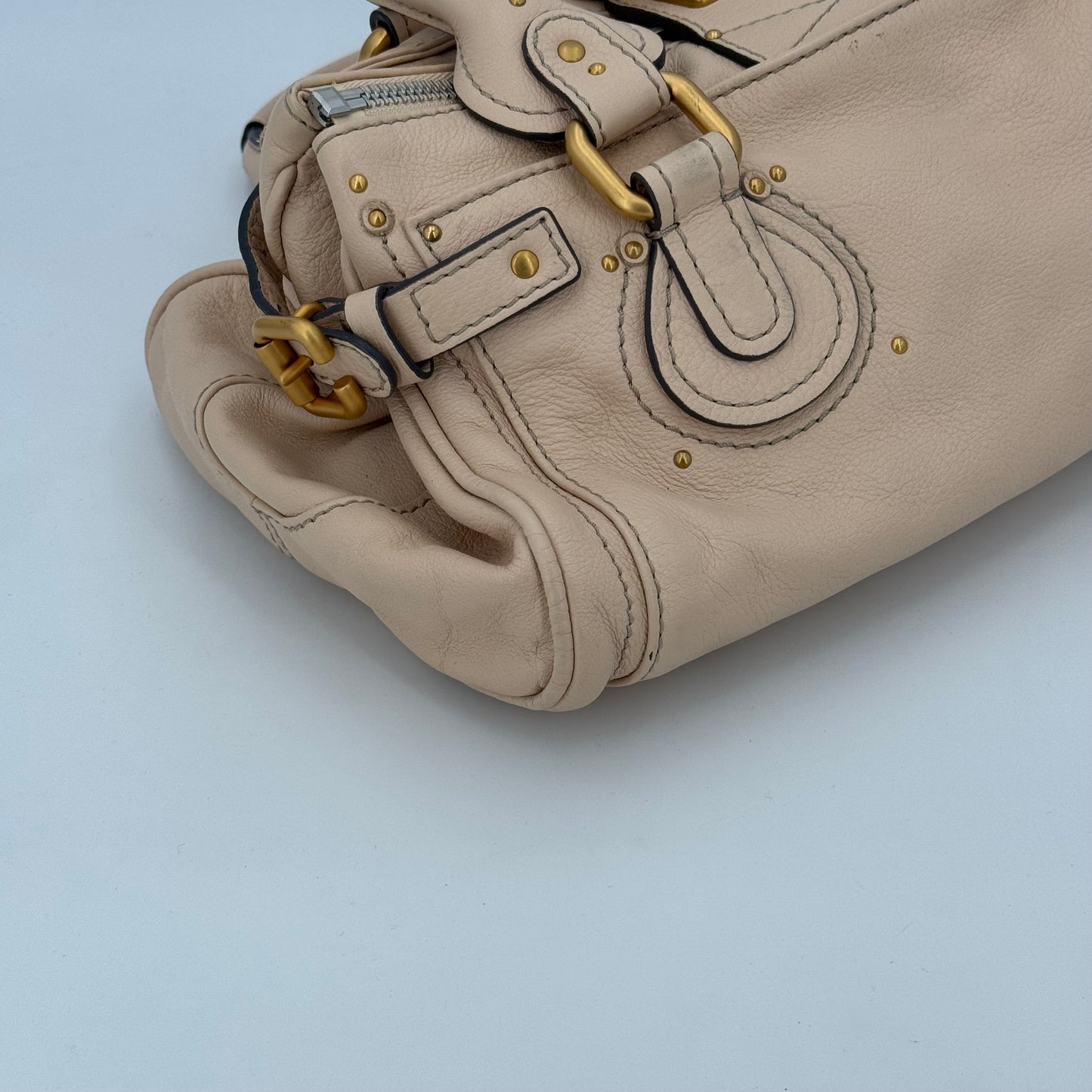 L’iconique sac Paddington GM en cuir de veau grainé beige et bijouterie dorée mat.