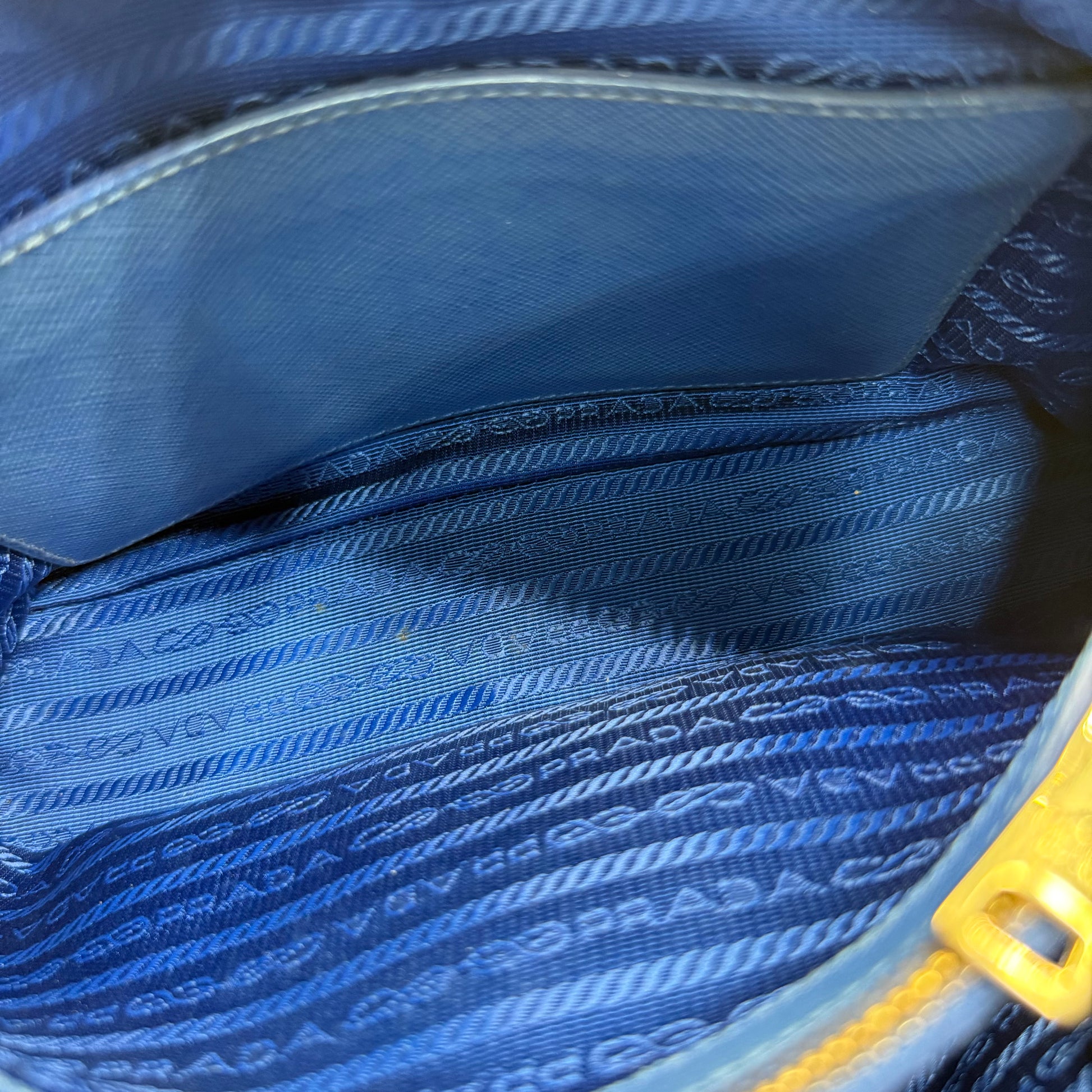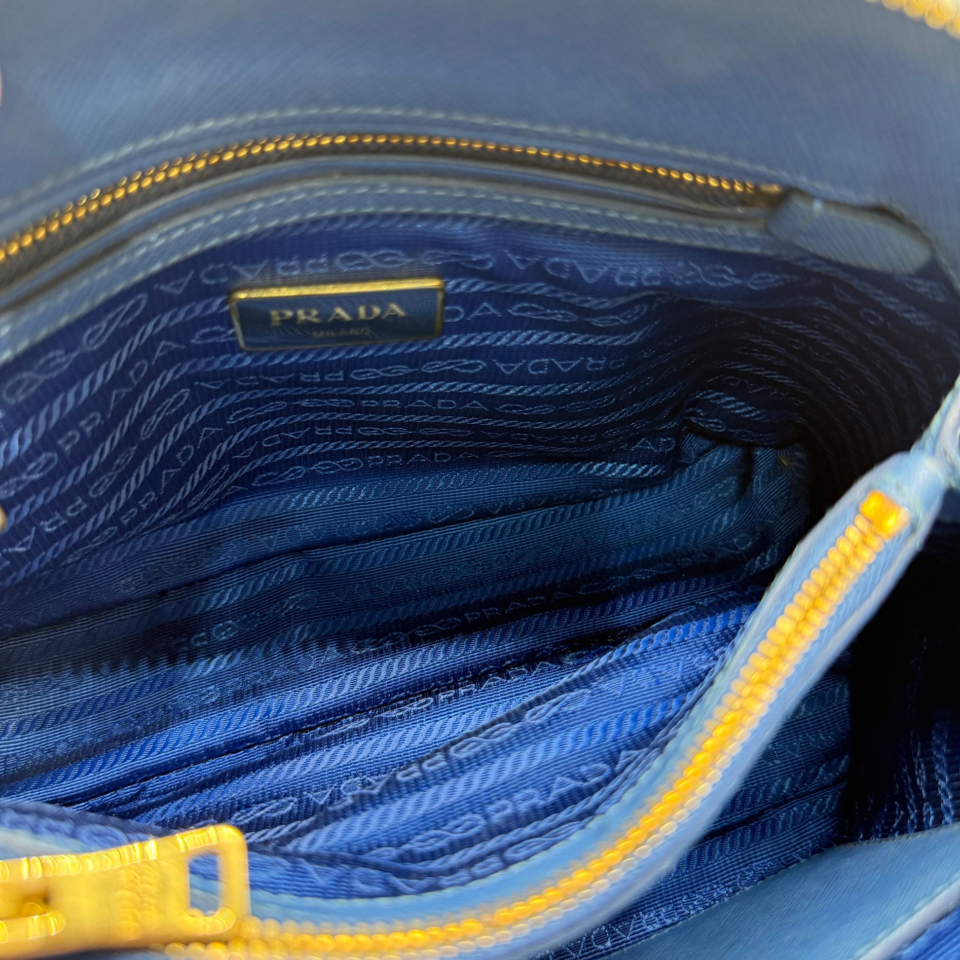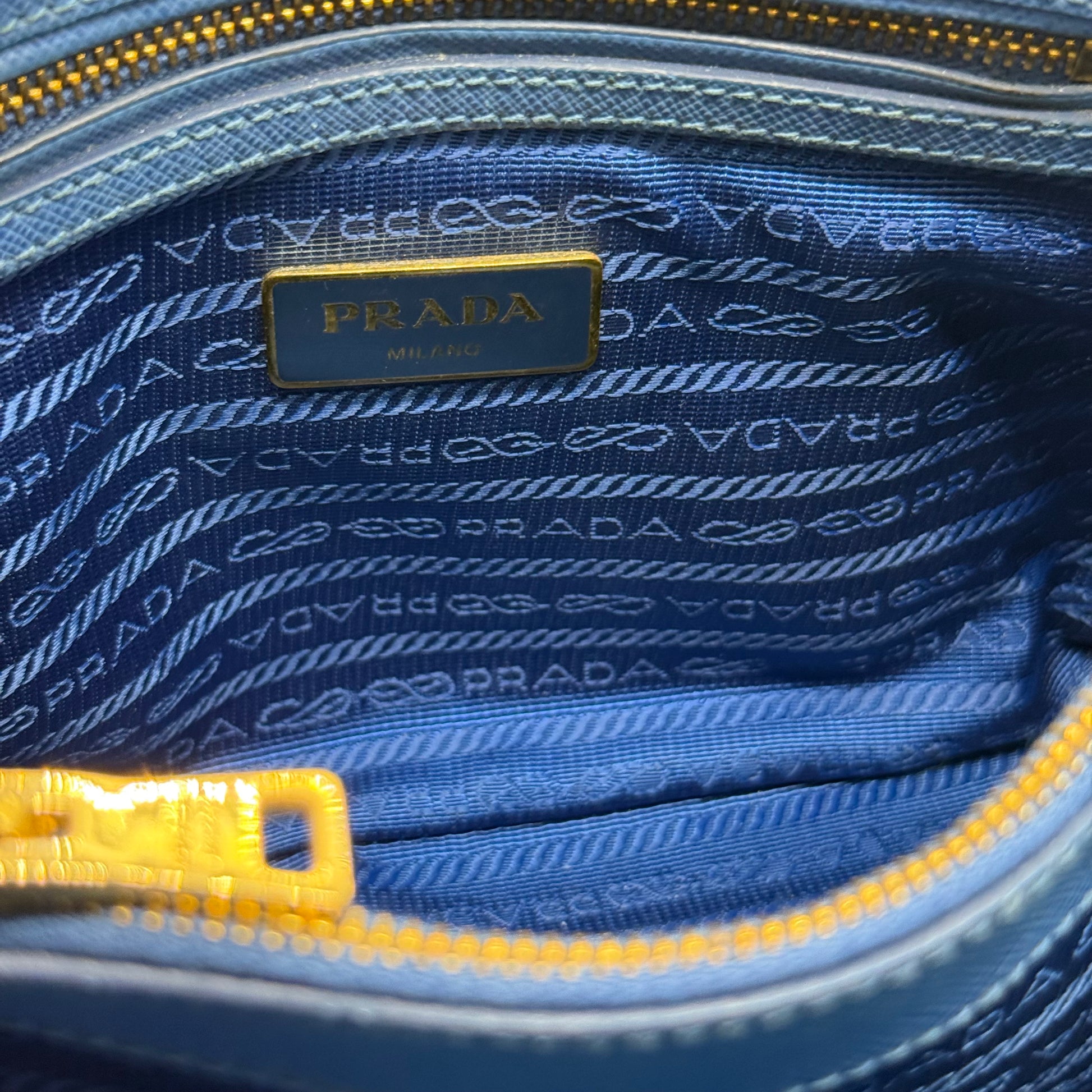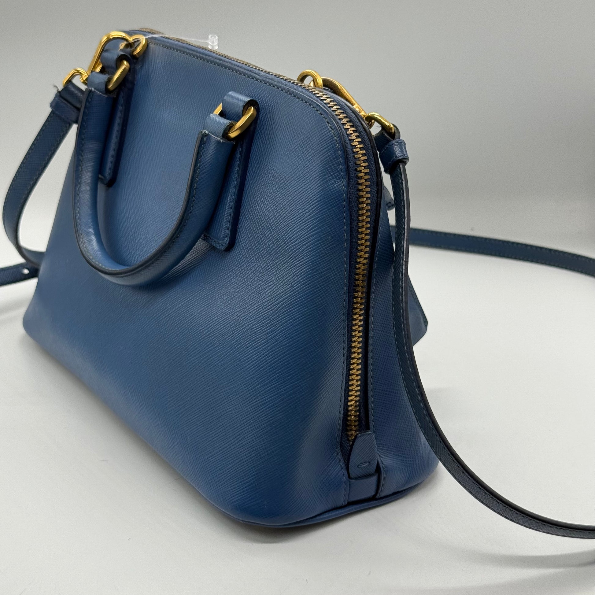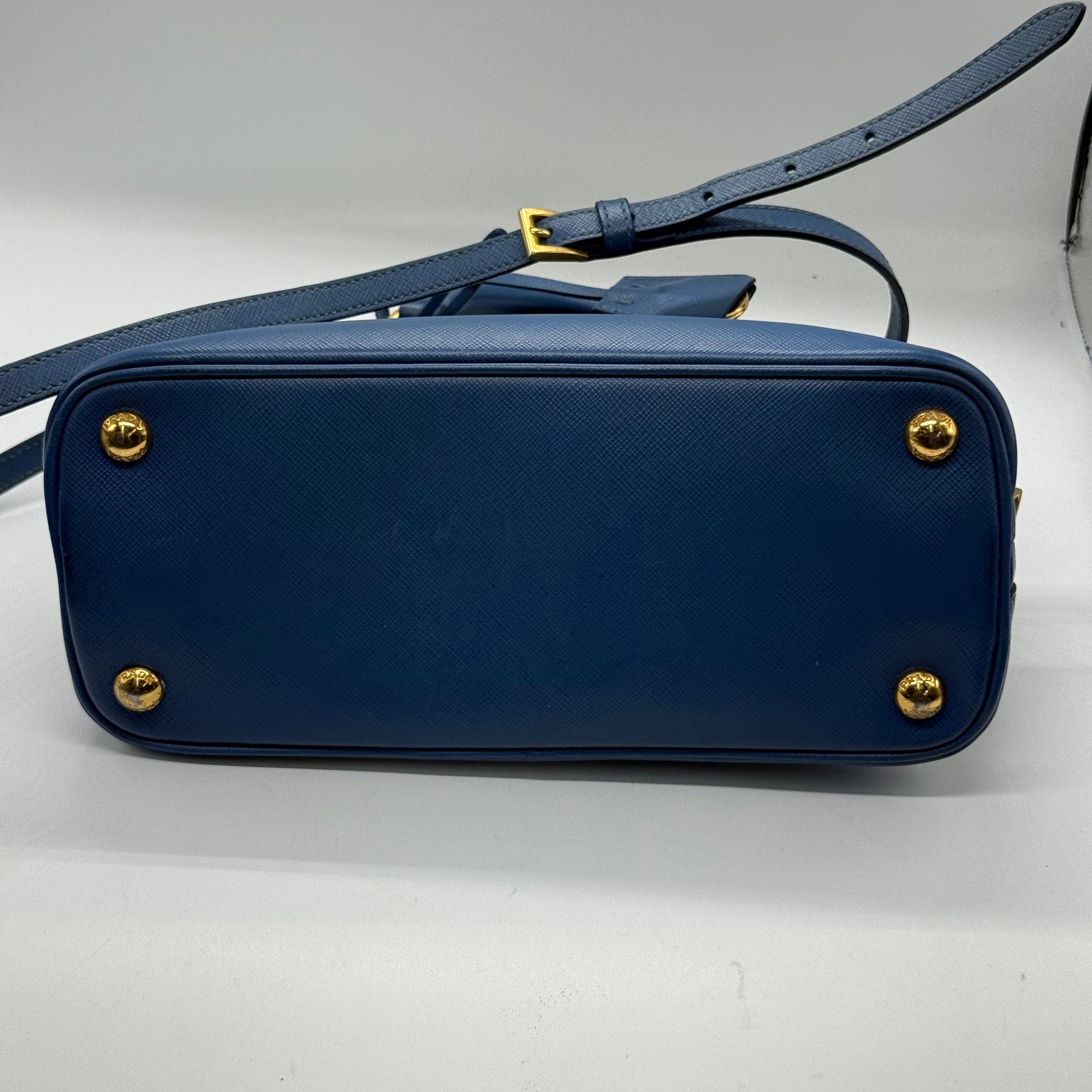Sac Prada Promenade en cuir Saffiano bleu.