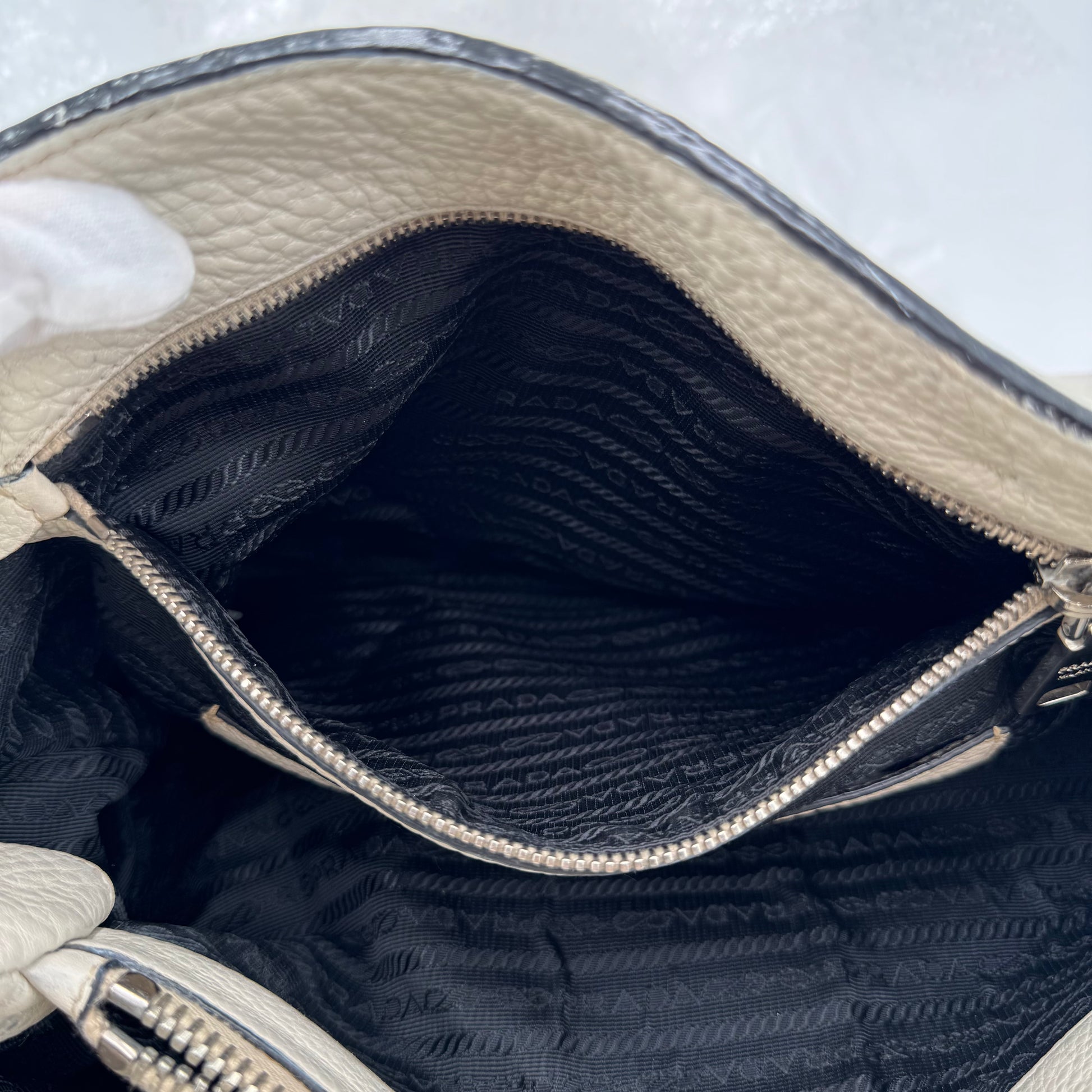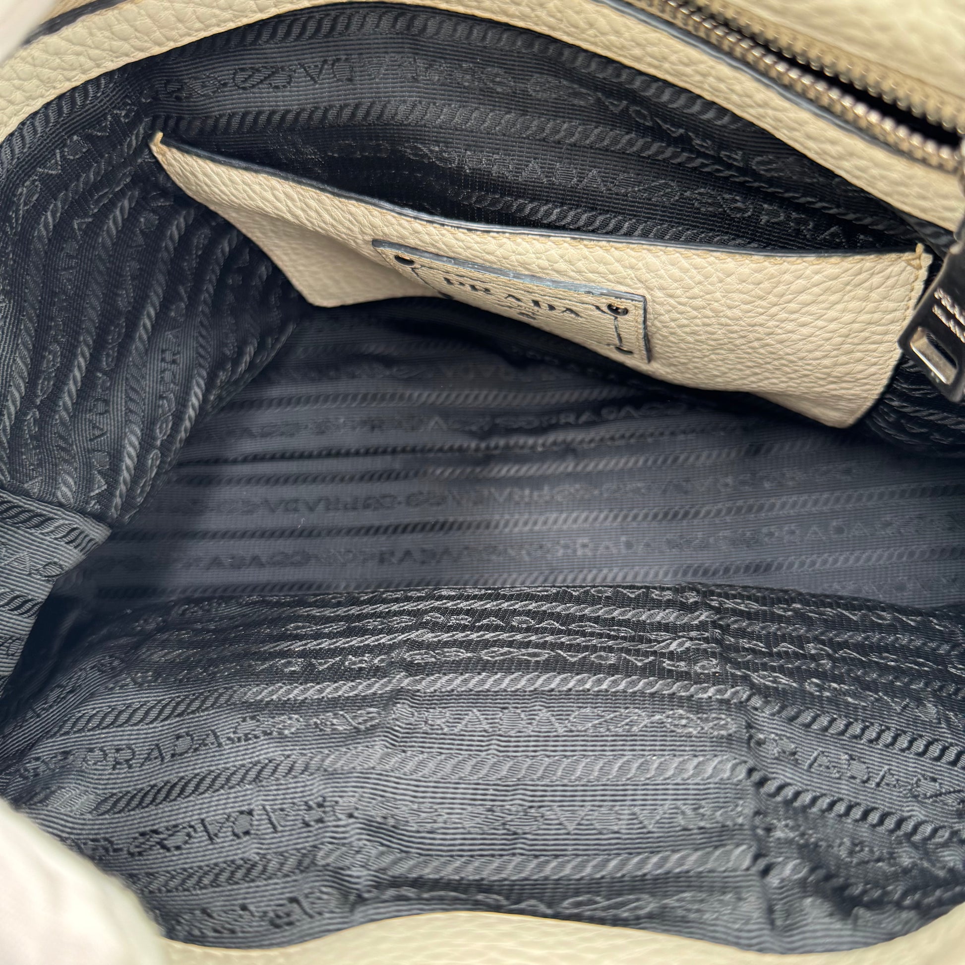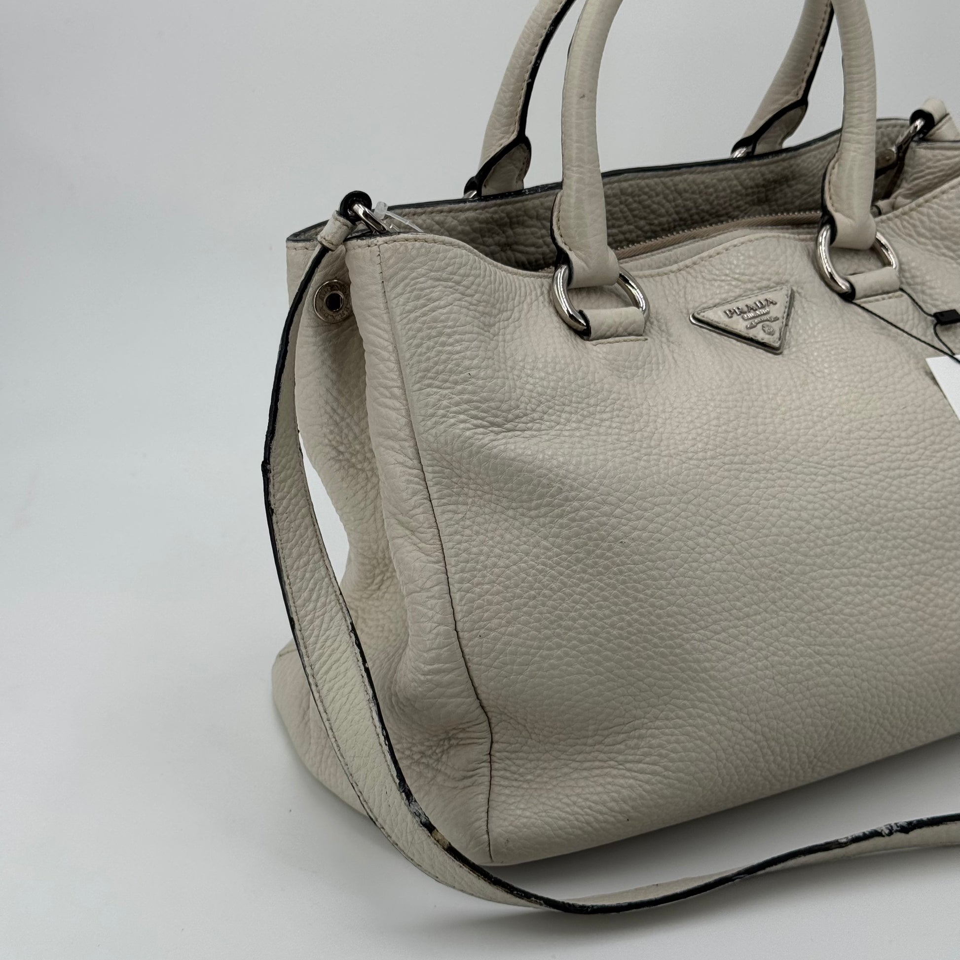 Sac Prada Shopping en cuir de veau grainé blanc.