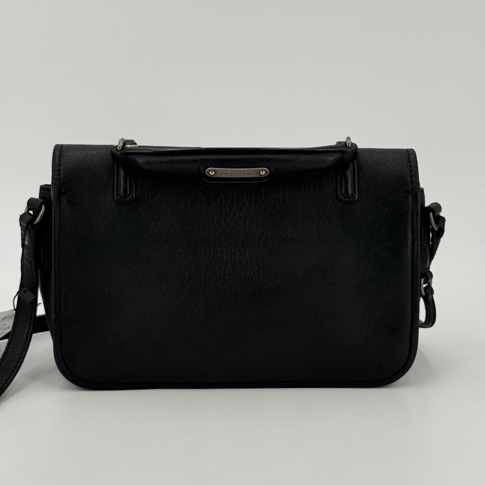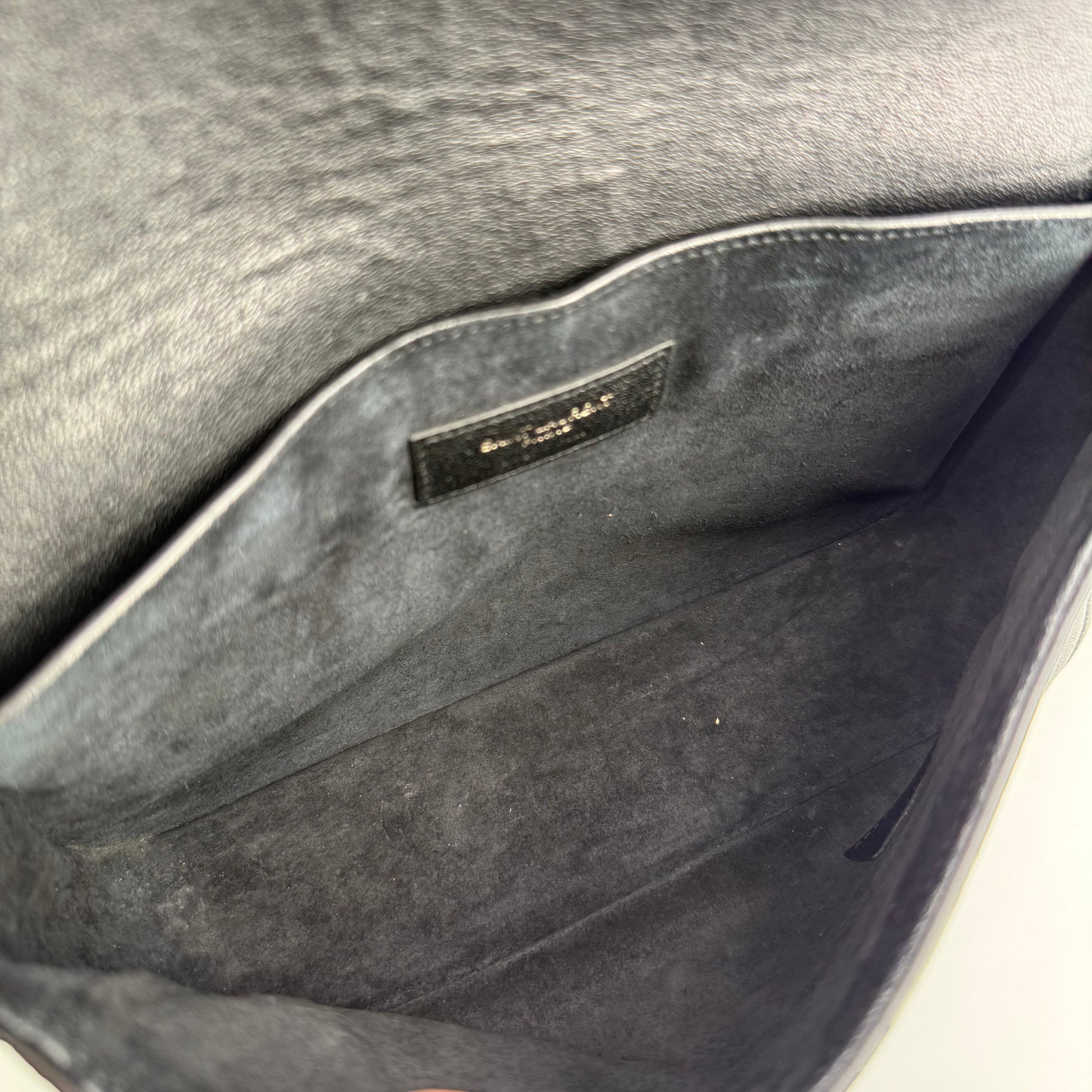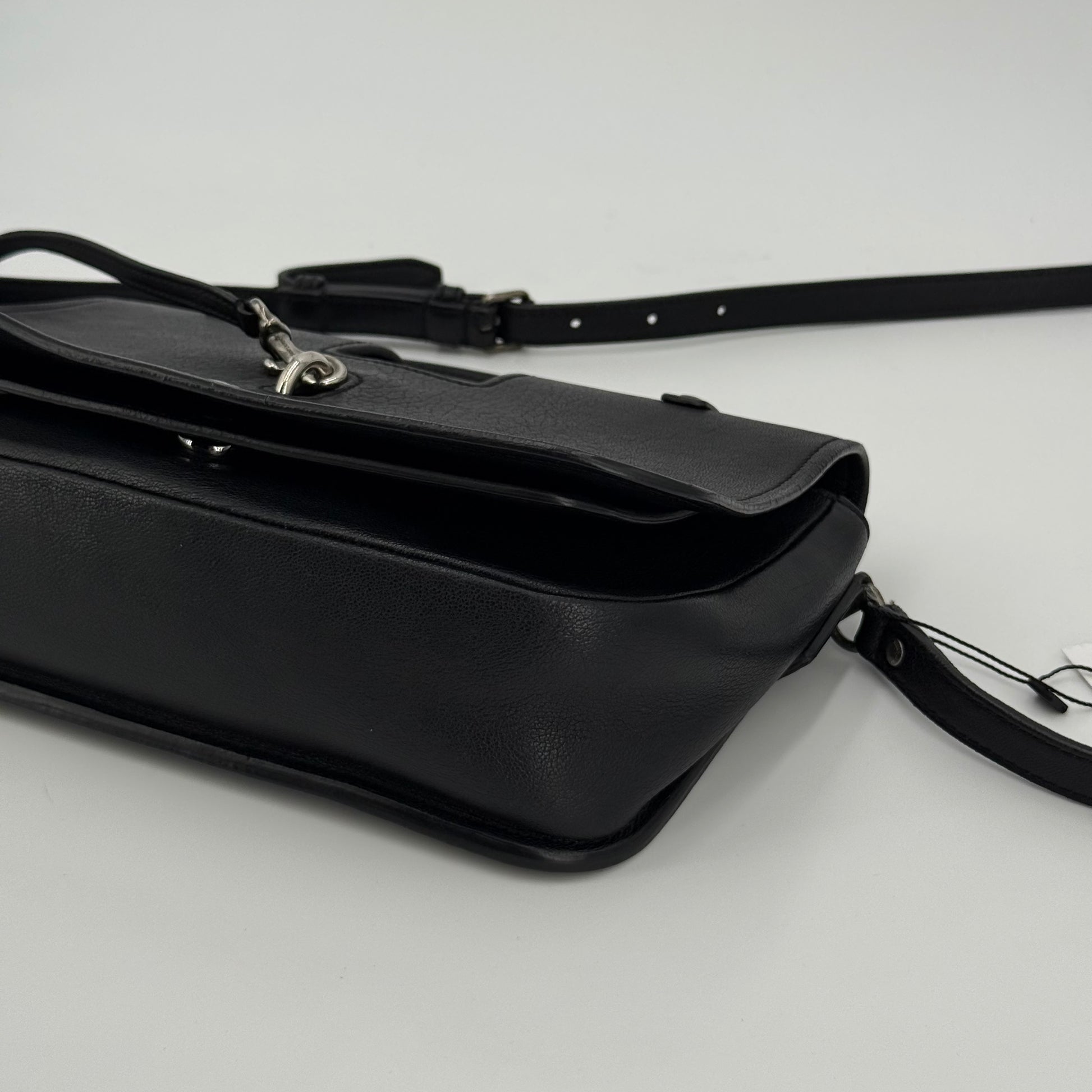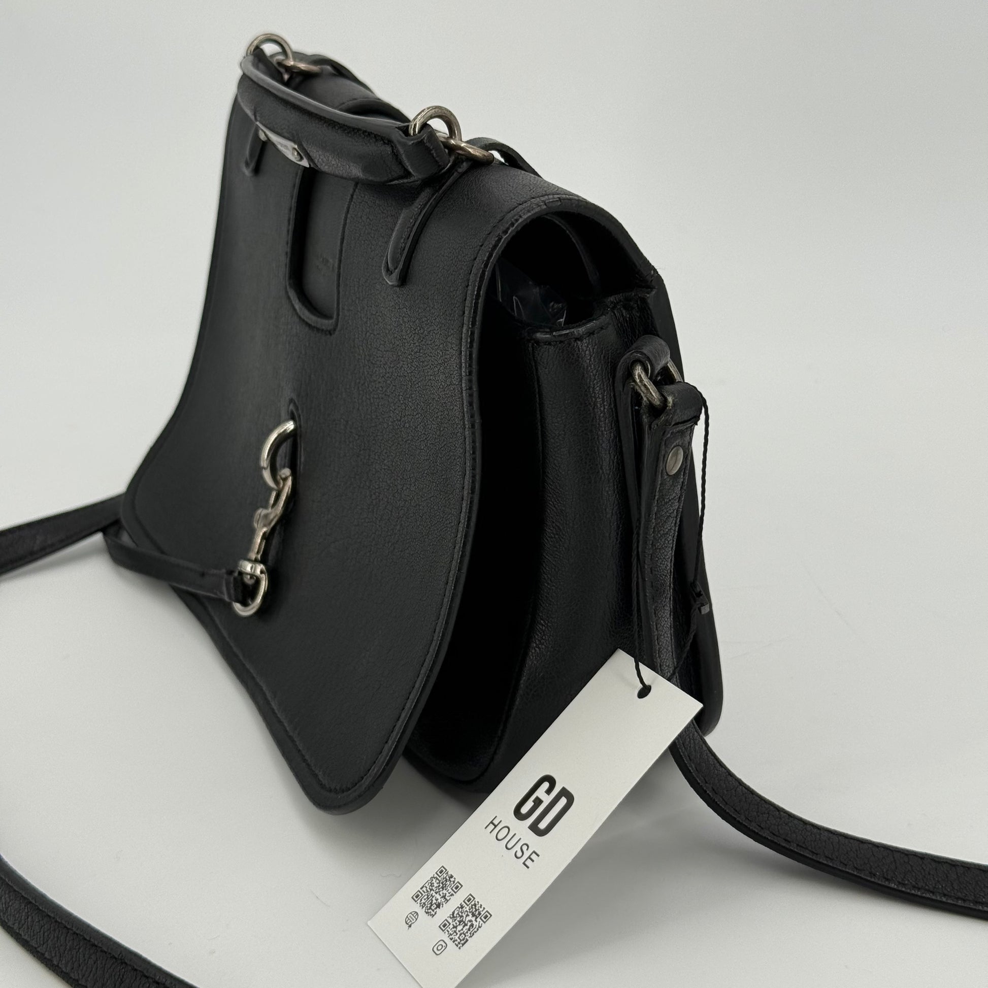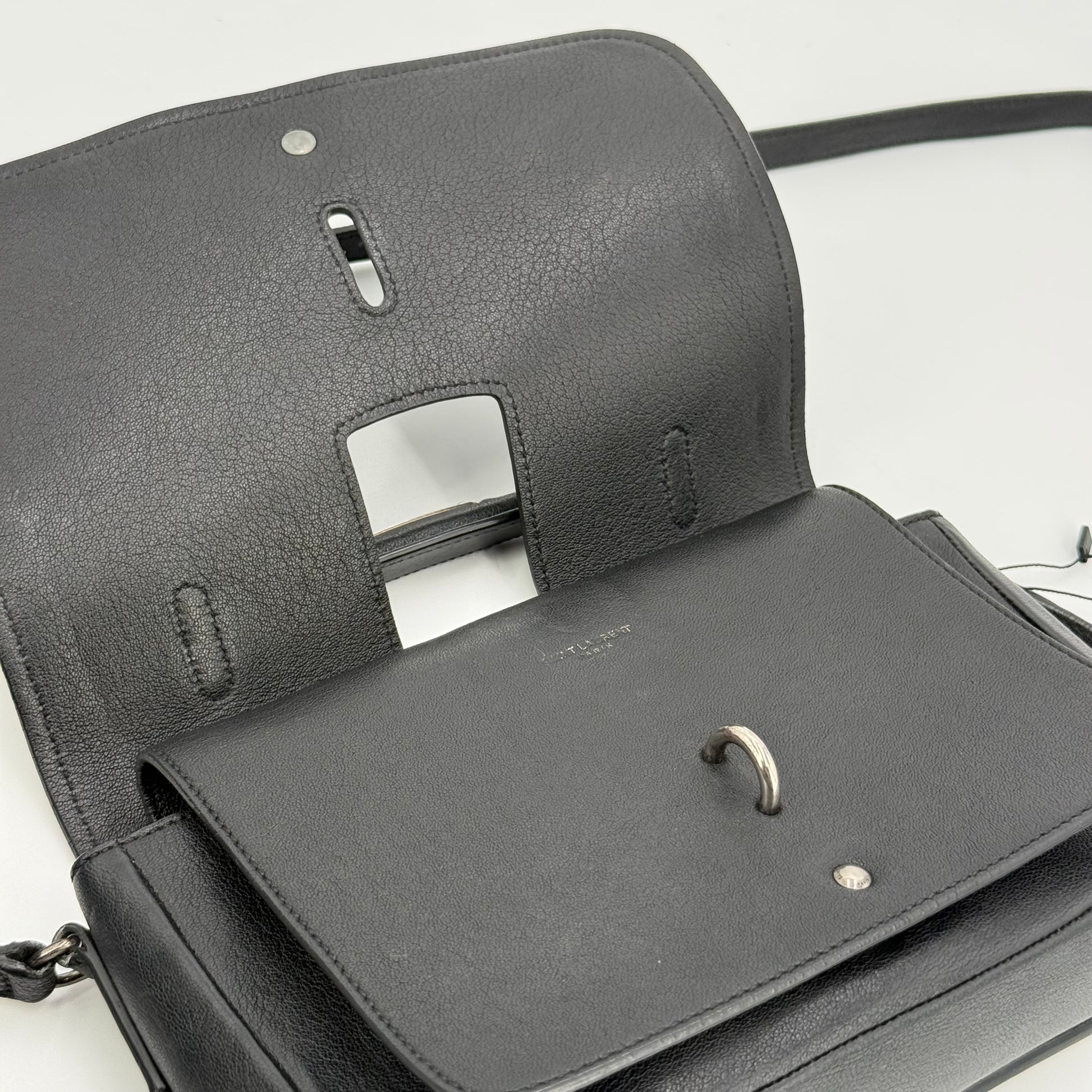 Sac messenger Charlotte en cuir de veau noir et bijouterie argent, le sac se porte bandoulière