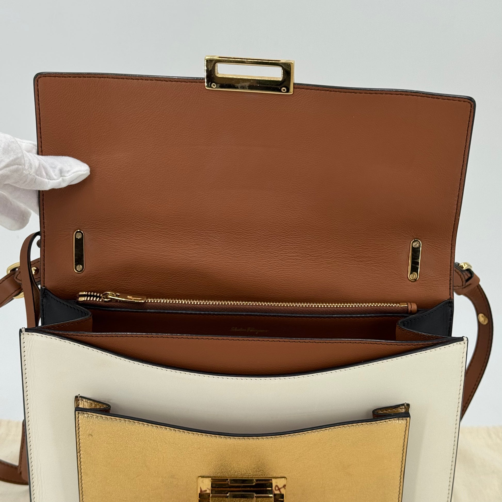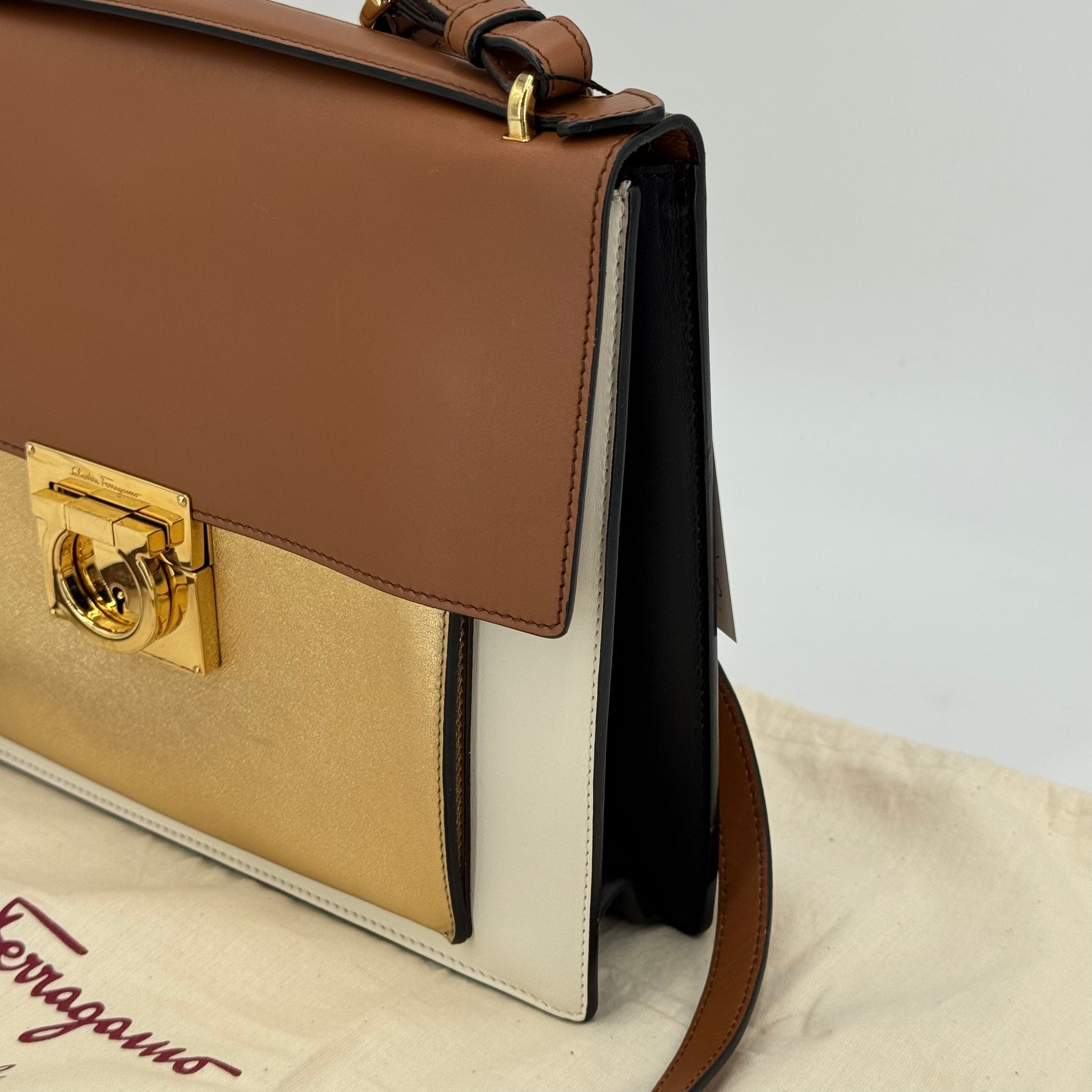 Besace style cartable Salvatore Ferragamo en cuir de veau.
