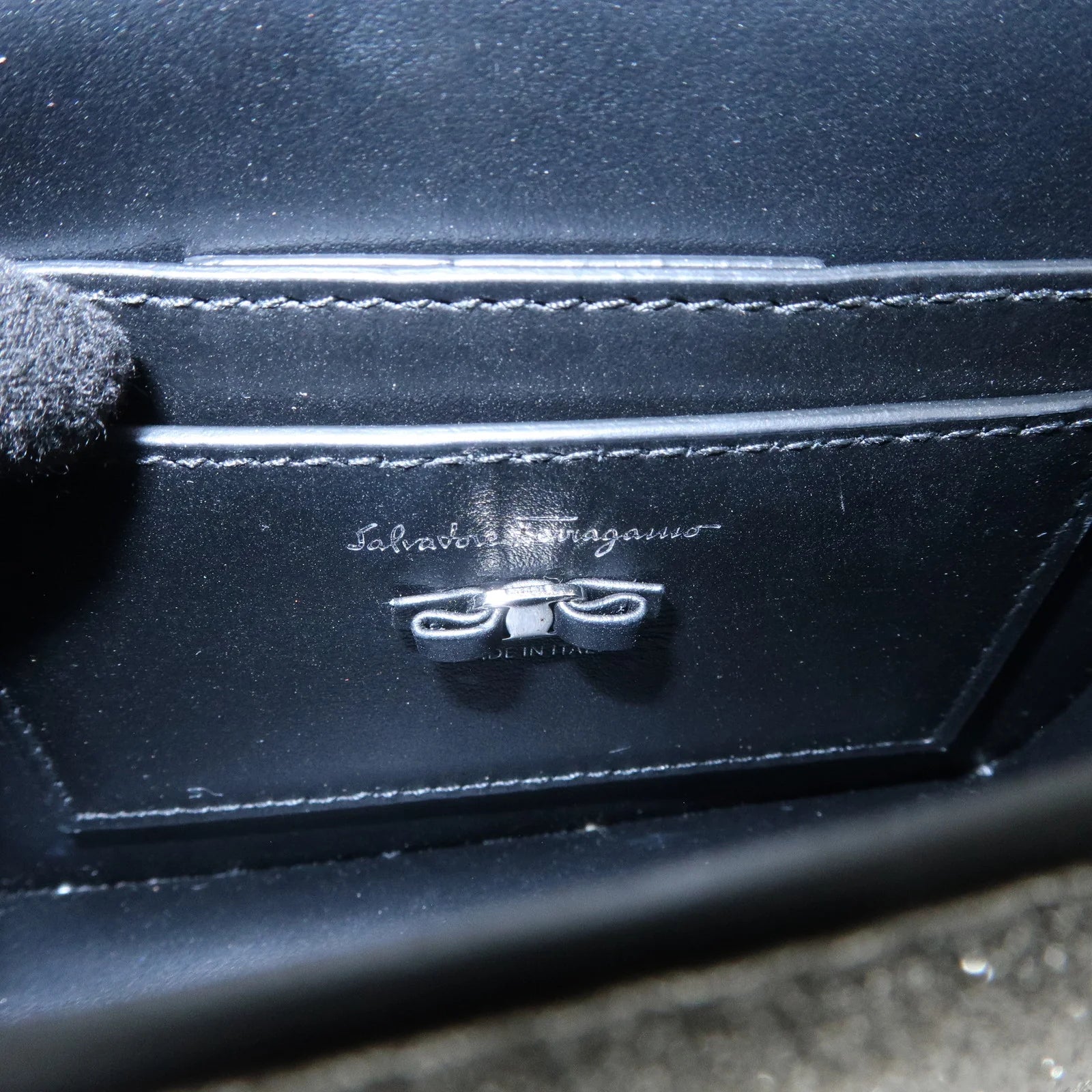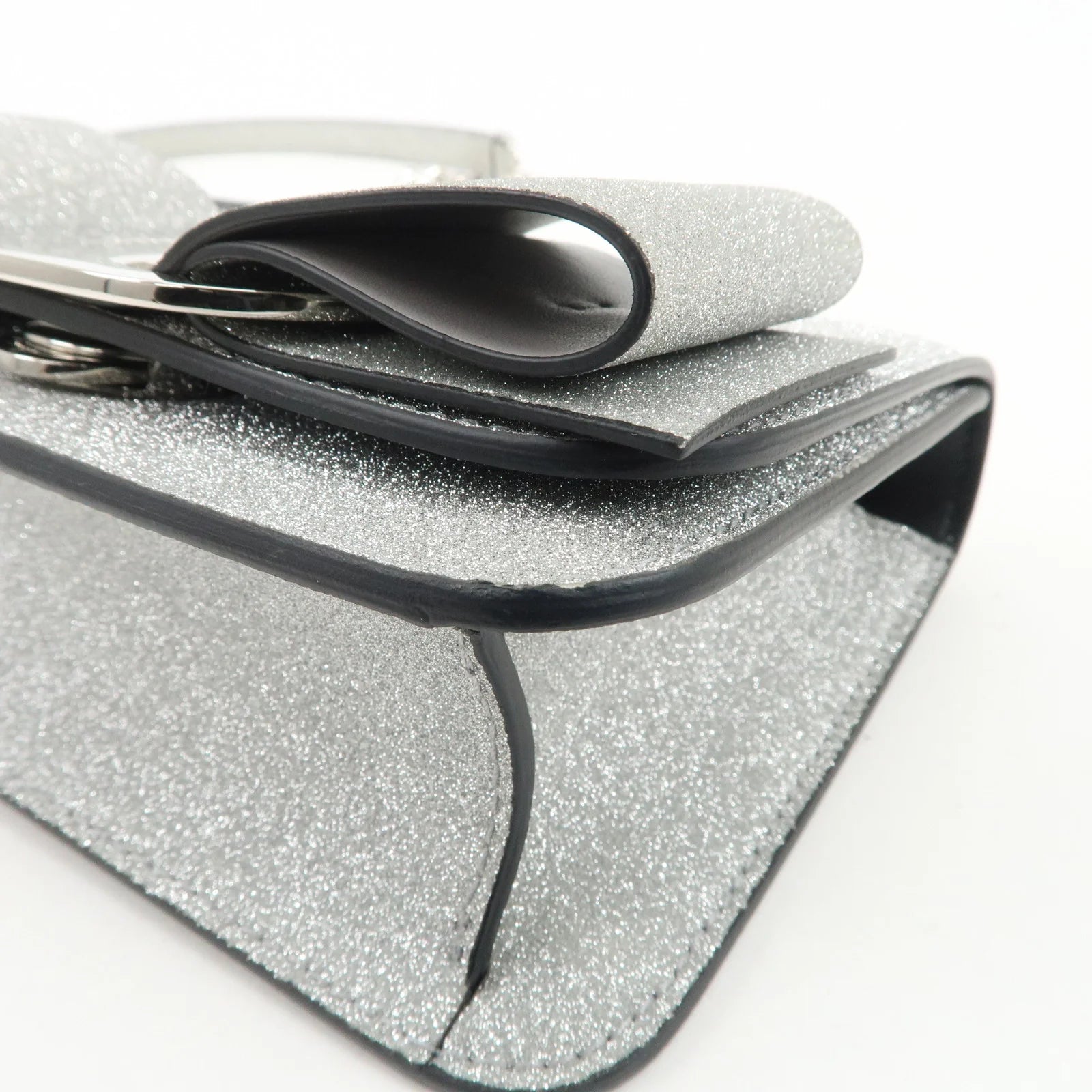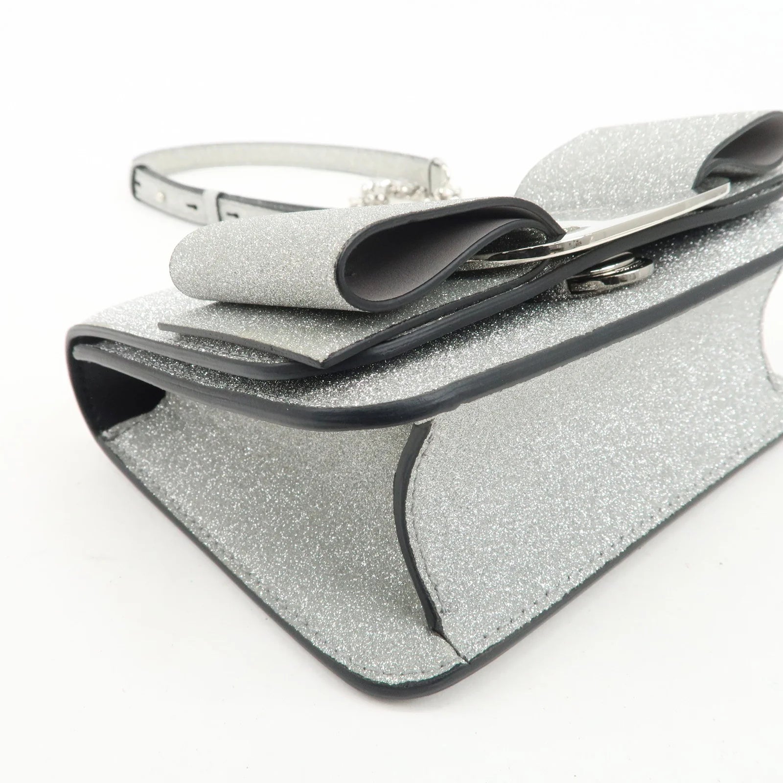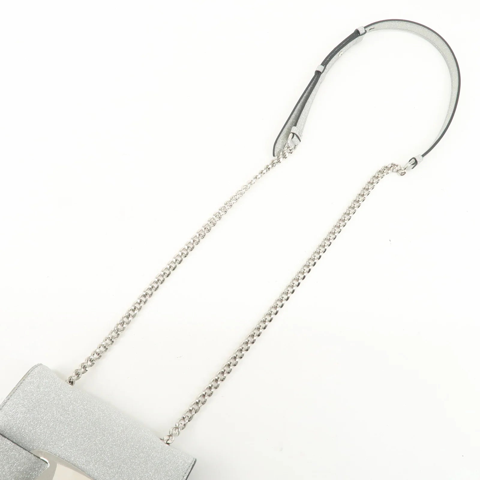 Mini sac Ferragamo avec son noeud vara en cuir argenté avec paillettes.