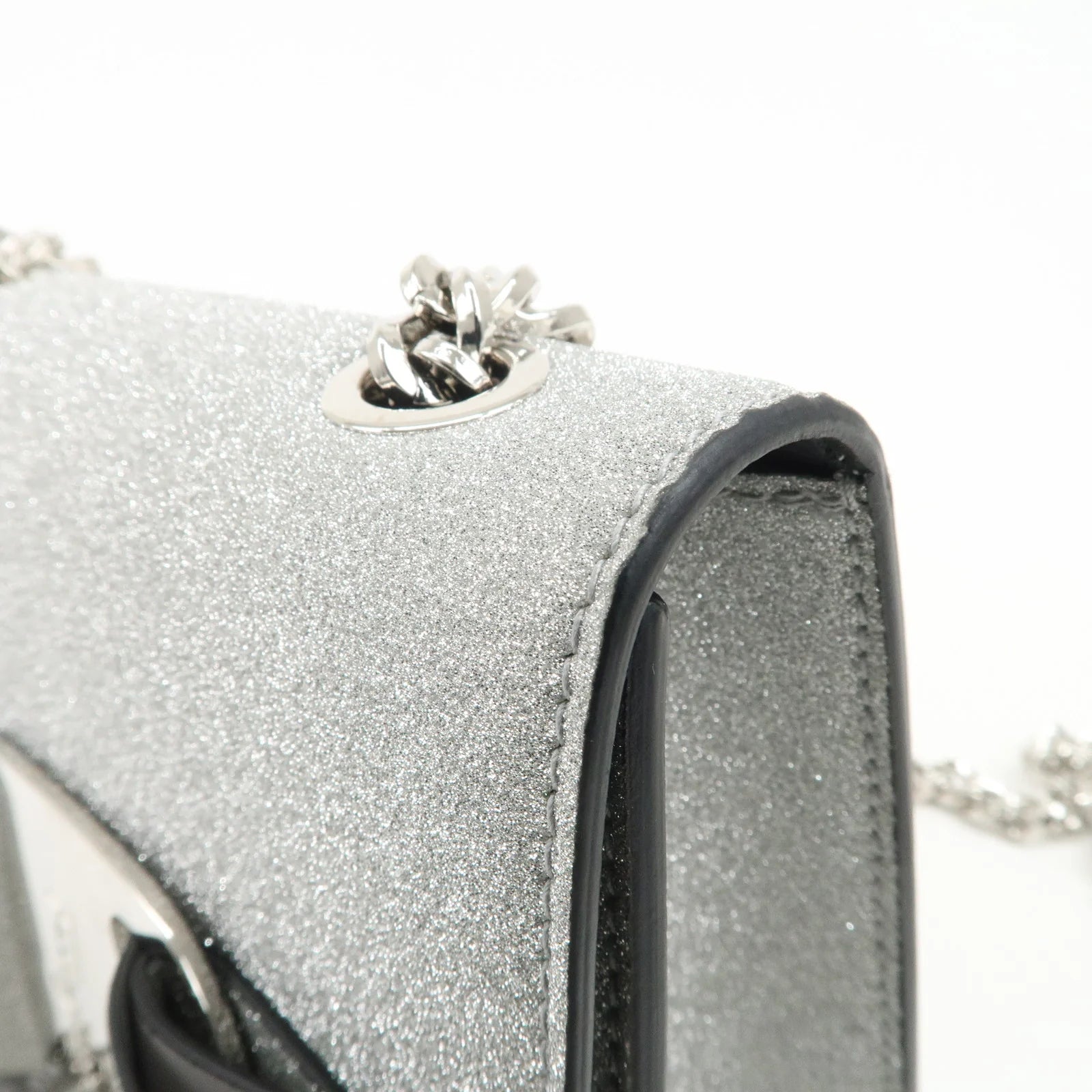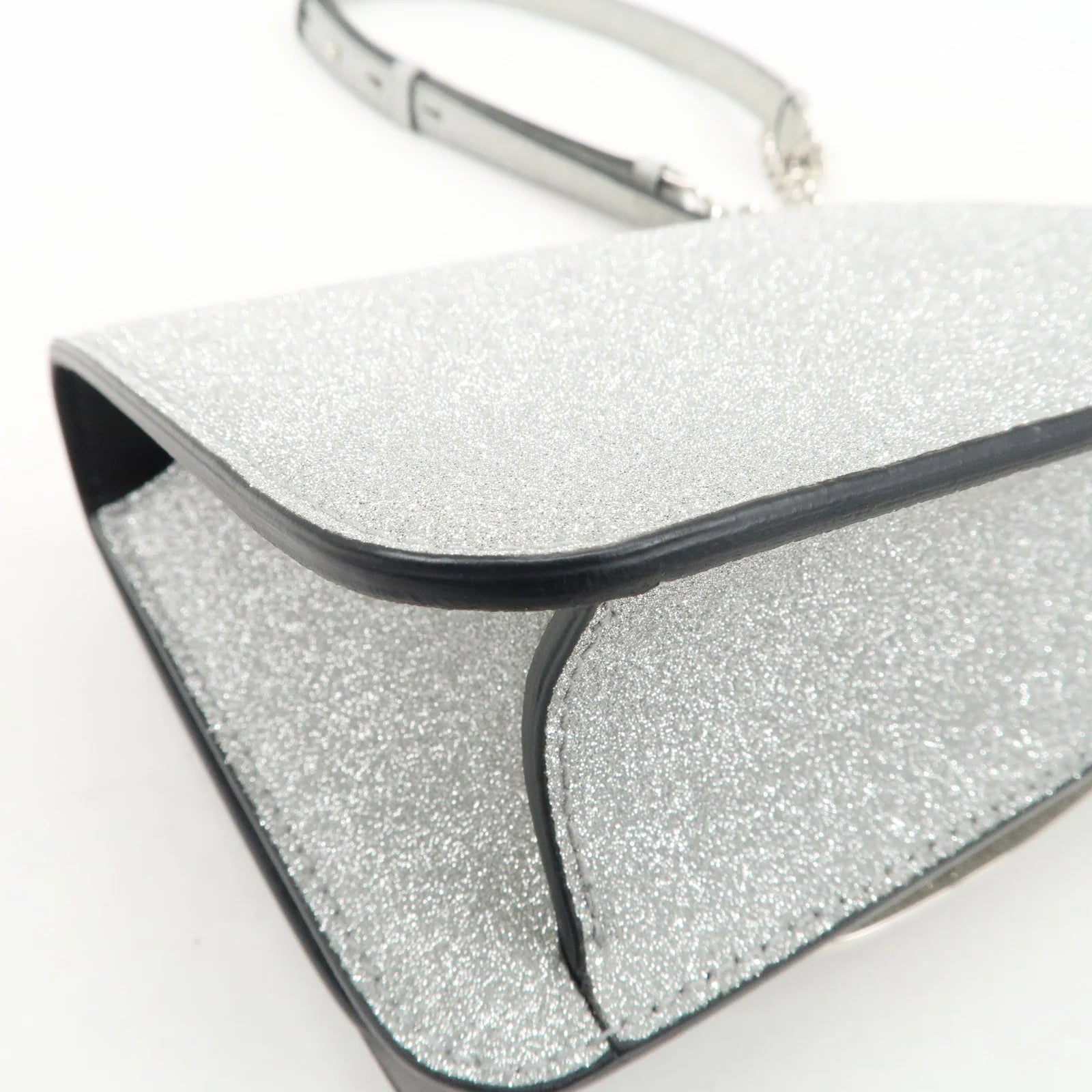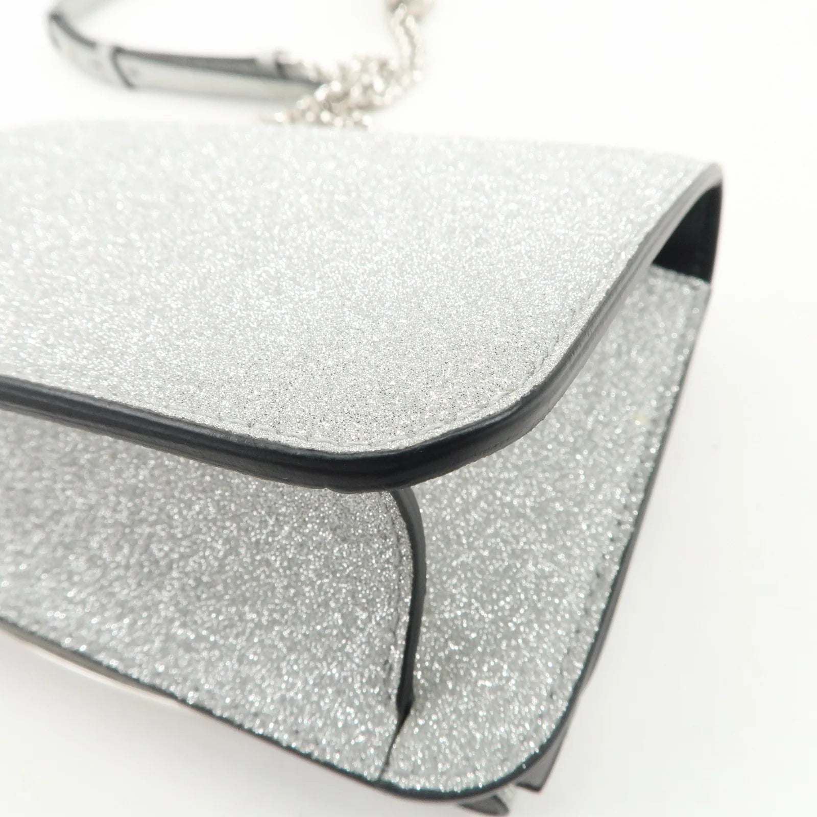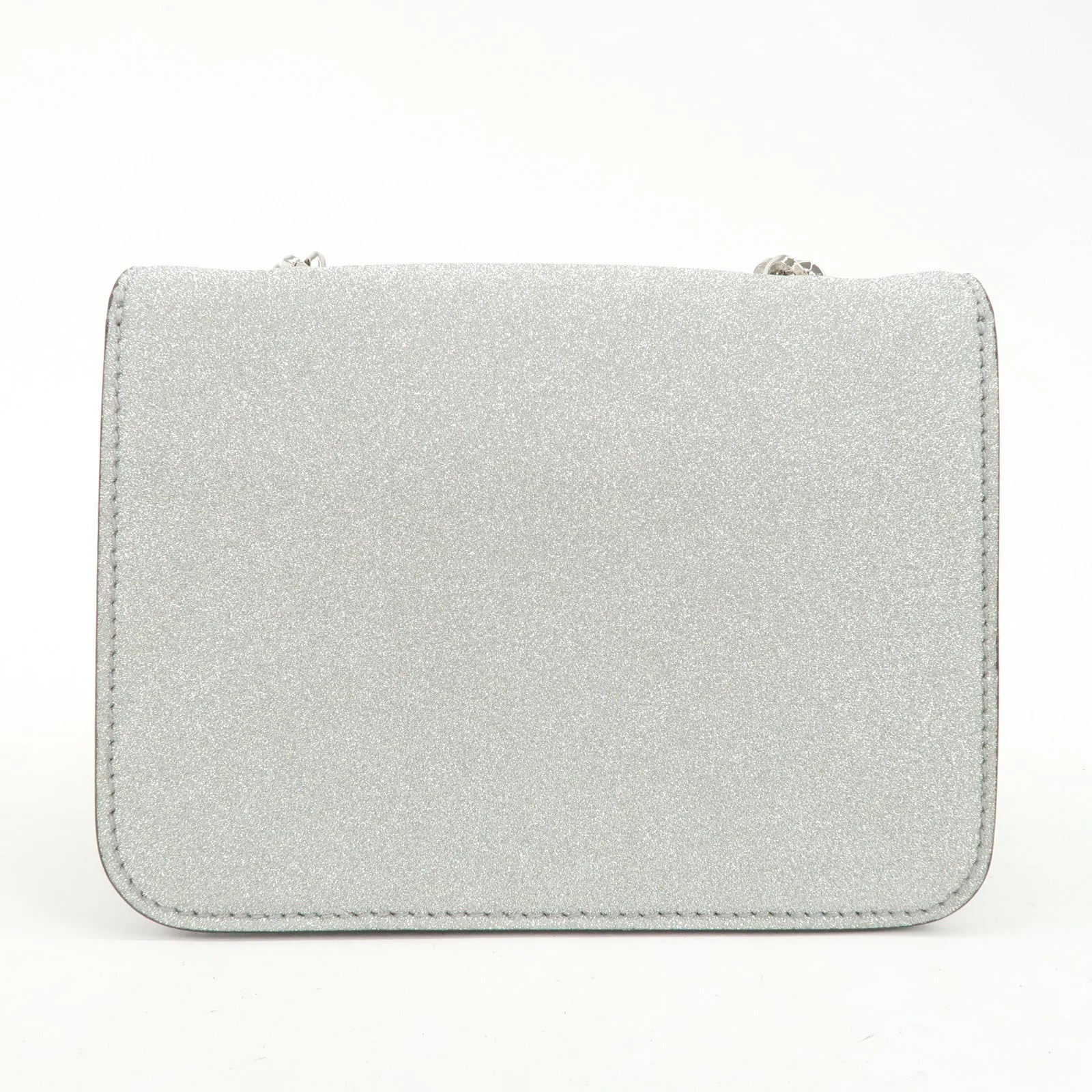 Mini sac Ferragamo avec son noeud vara en cuir argenté avec paillettes.