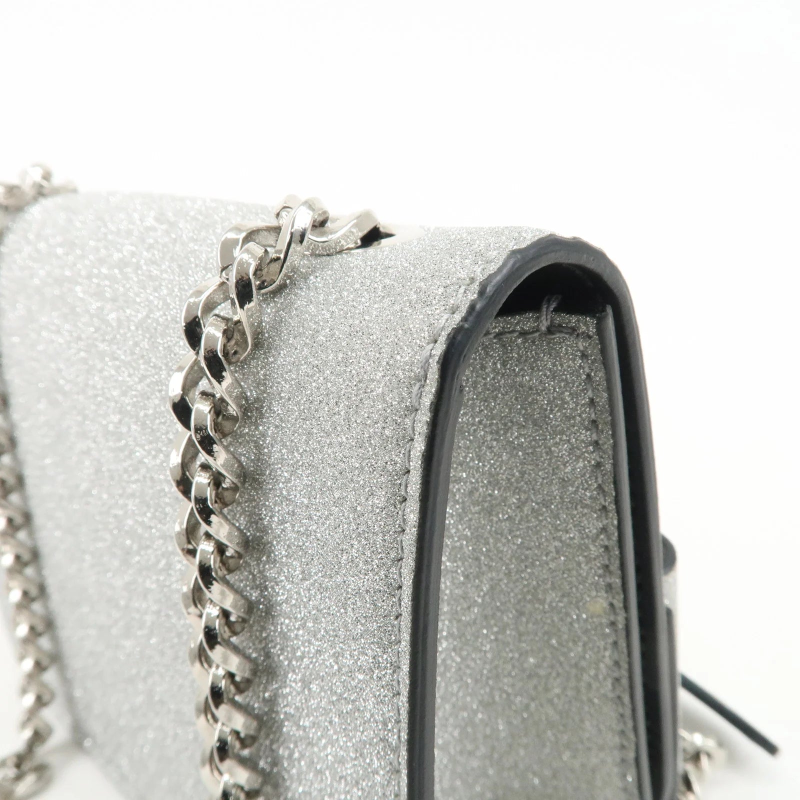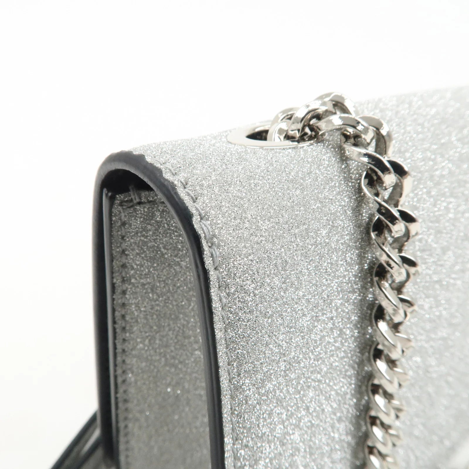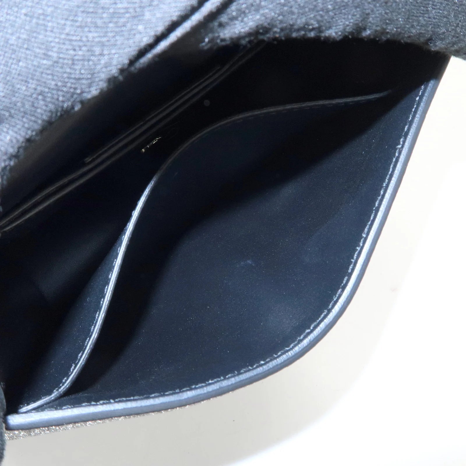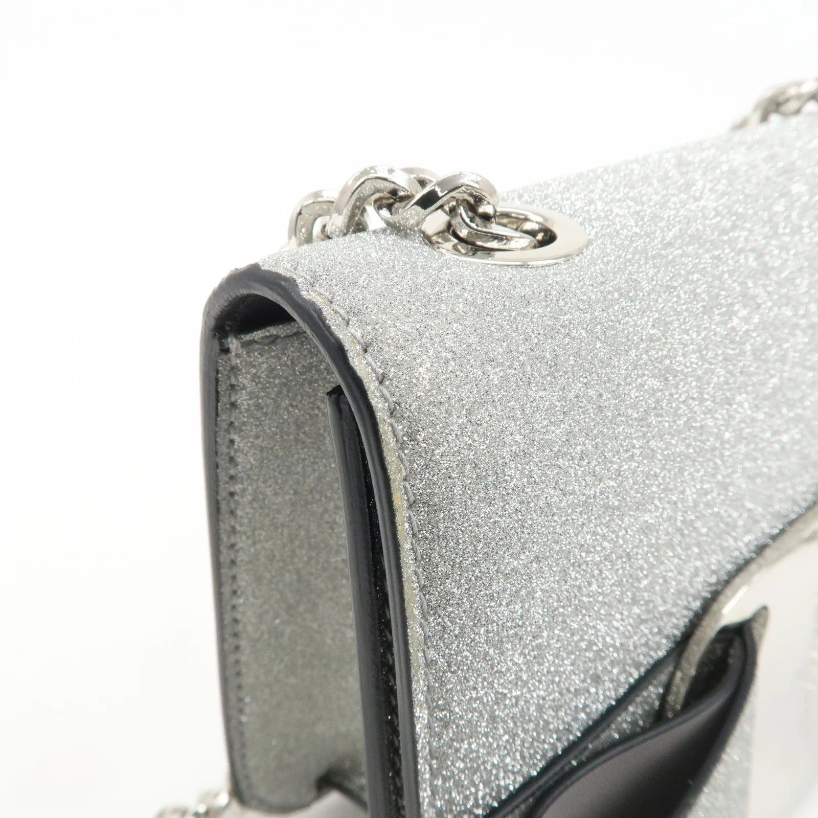Mini sac Ferragamo avec son noeud vara en cuir argenté avec paillettes.