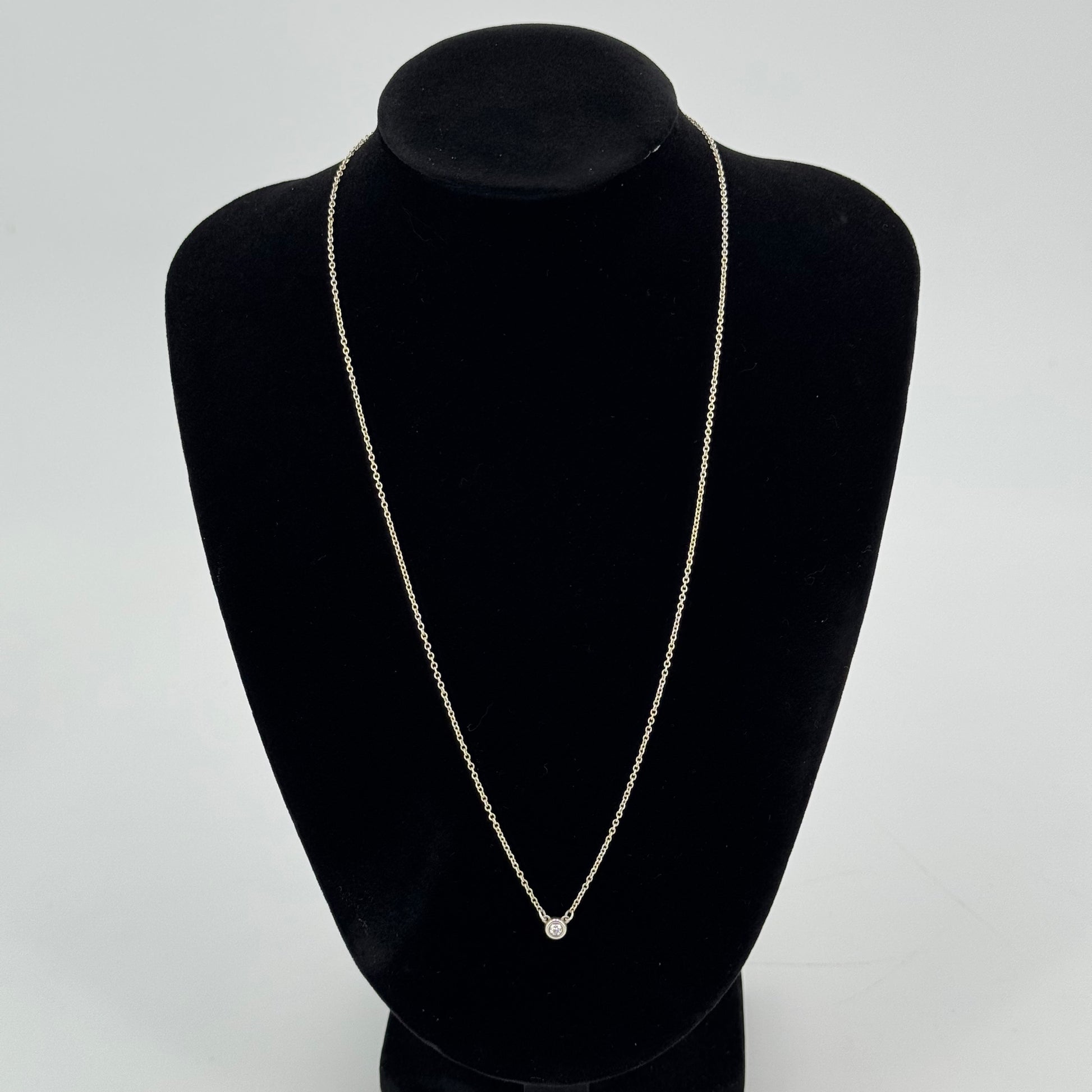 Un diamant unique de 0,1 carat poli à la main brille au centre de ce délicat pendentif en argent 925 millièmes. La collection révolutionnaire Diamonds by the Yard® signée Elsa Peretti® met en scène une subtile combinaison de chaînes et de pierres montées en serti clos, qui a changé à jamais le rôle des diamants. L’éclat du diamant sublime la peau d’une touche de lumière étincelante. Créez votre style unique en associant cette création à d’autres pendentifs et colliers Diamonds by the Yard® de longueurs variées.